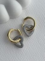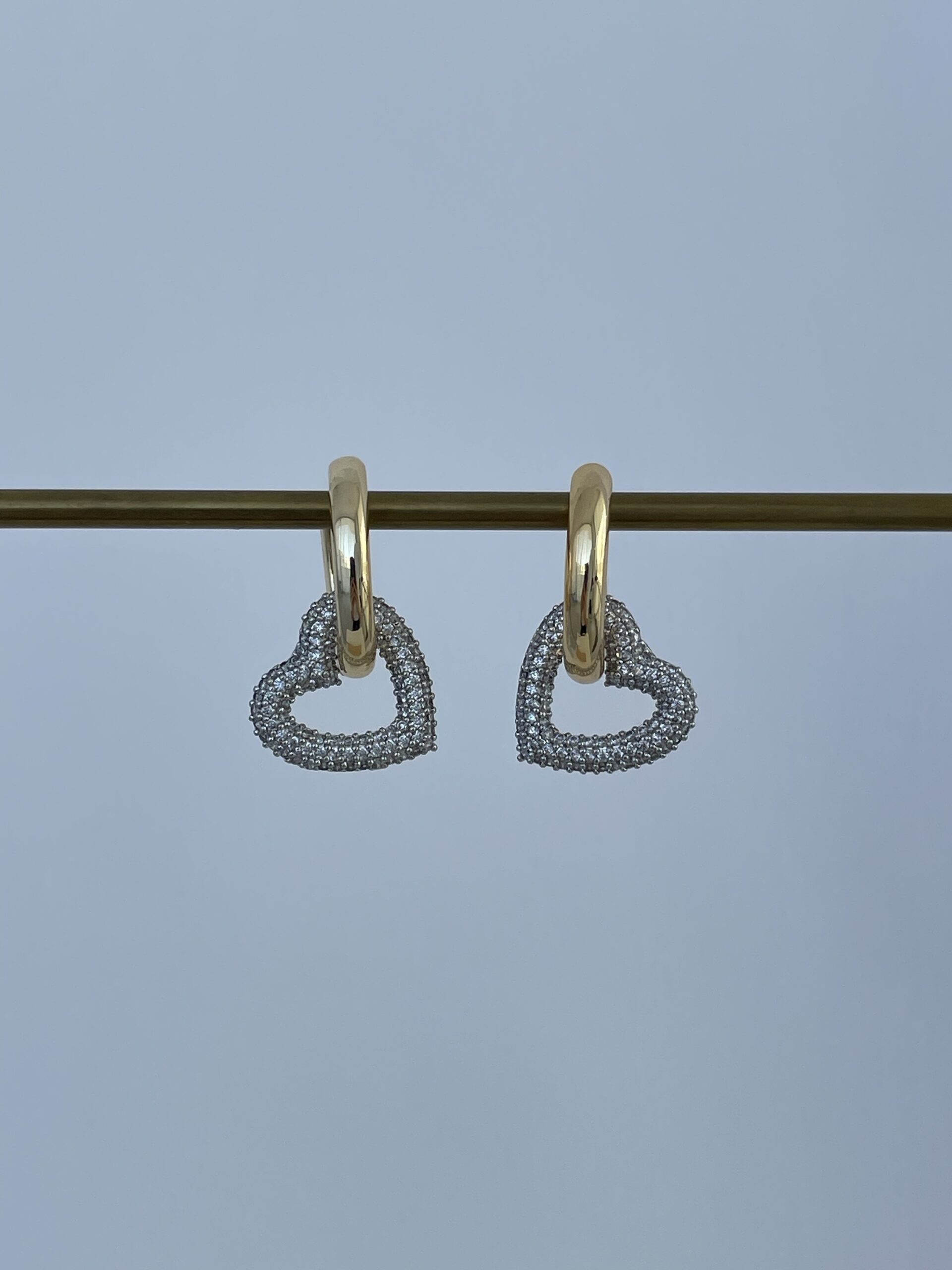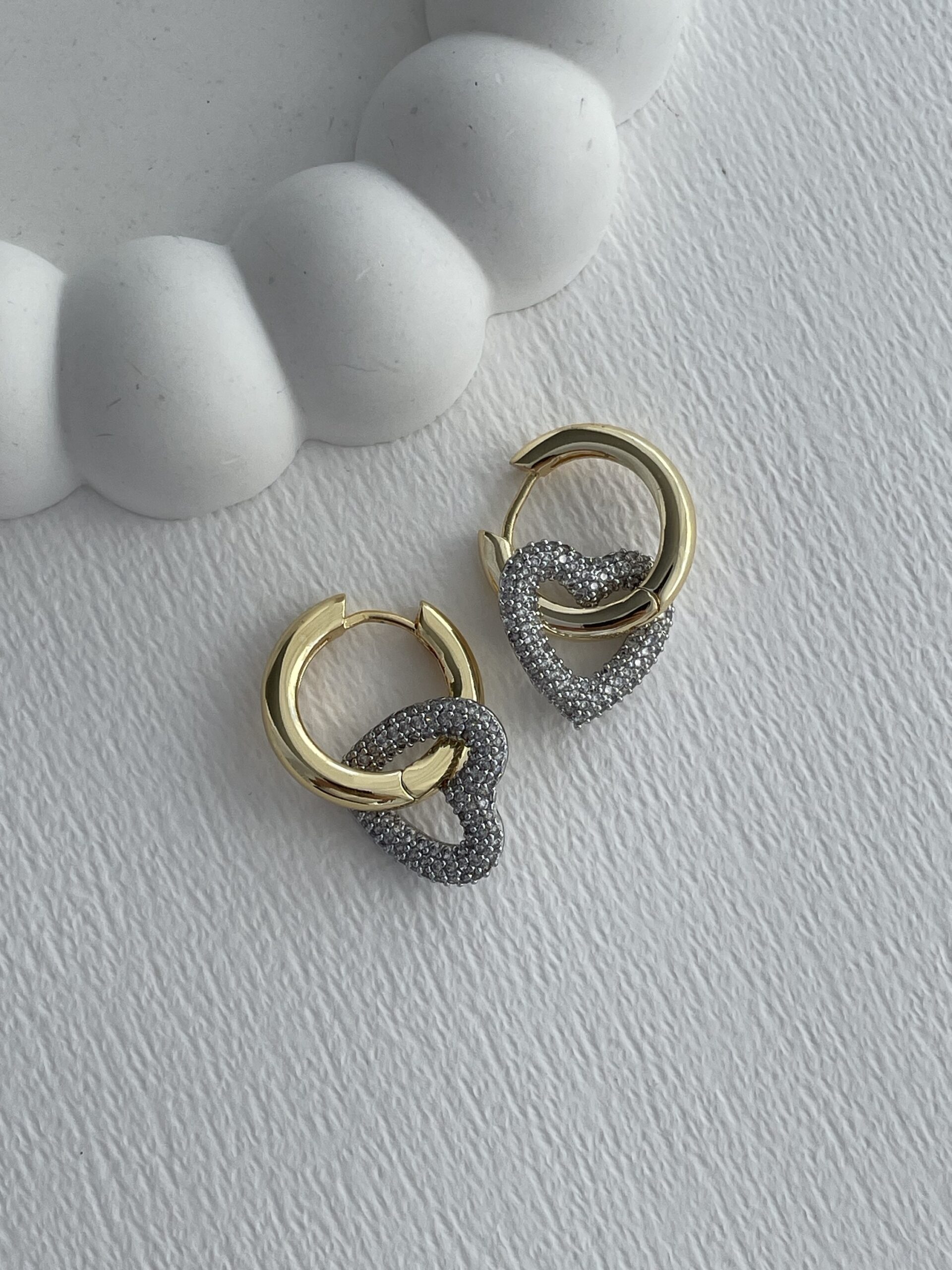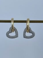 Özel Seri Zirkon Taşlı Kalp Tasarım Gold Küpe