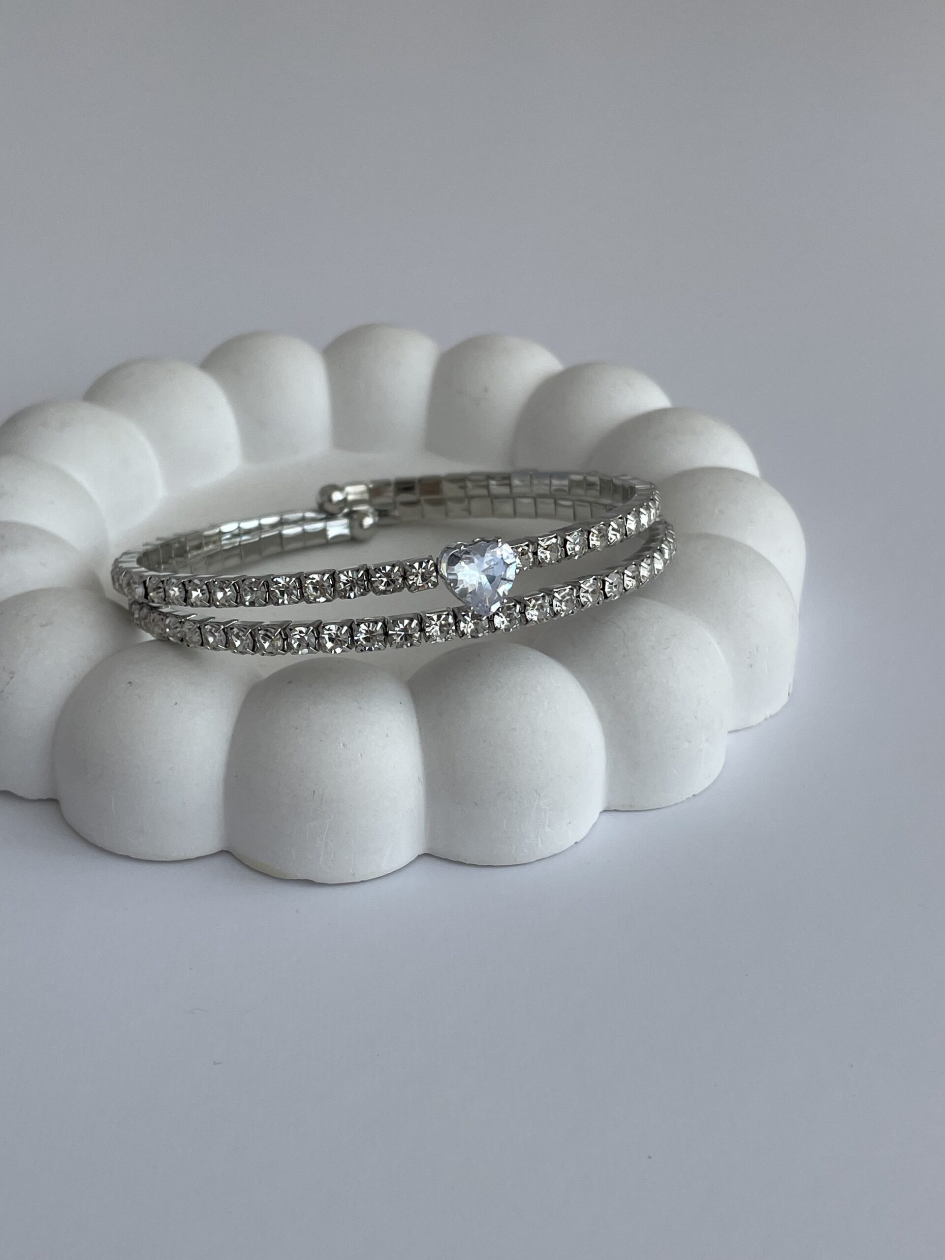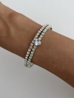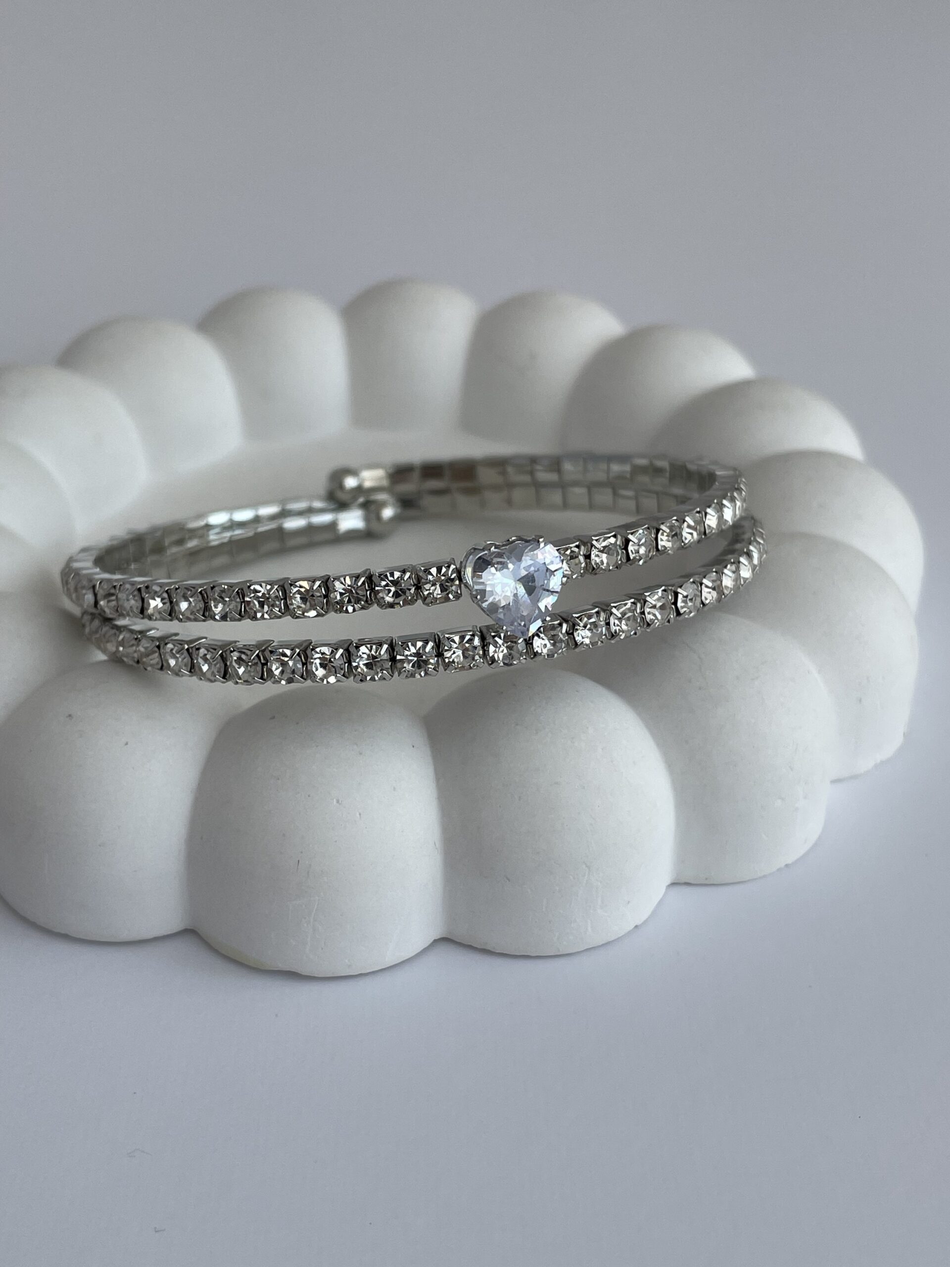 Özel Seri Zirkon Taşlı Kalp Tasarım Gümüş Sarmal Bileklik