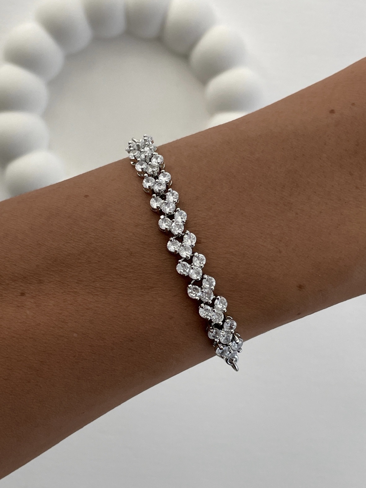 Özel Seri Zirkon Taşlı Kalp Tasarım Gümüş Shiny Bileklik