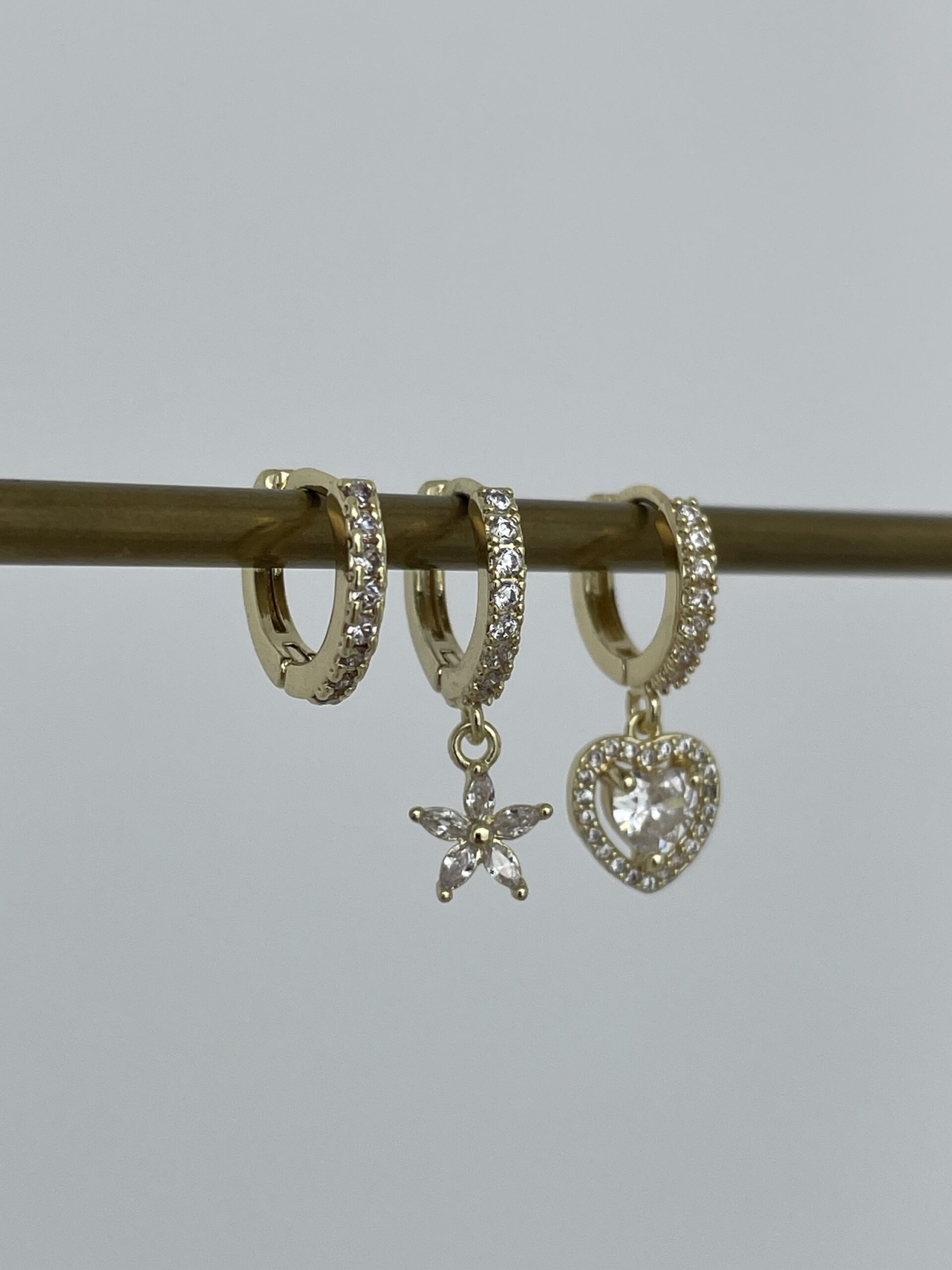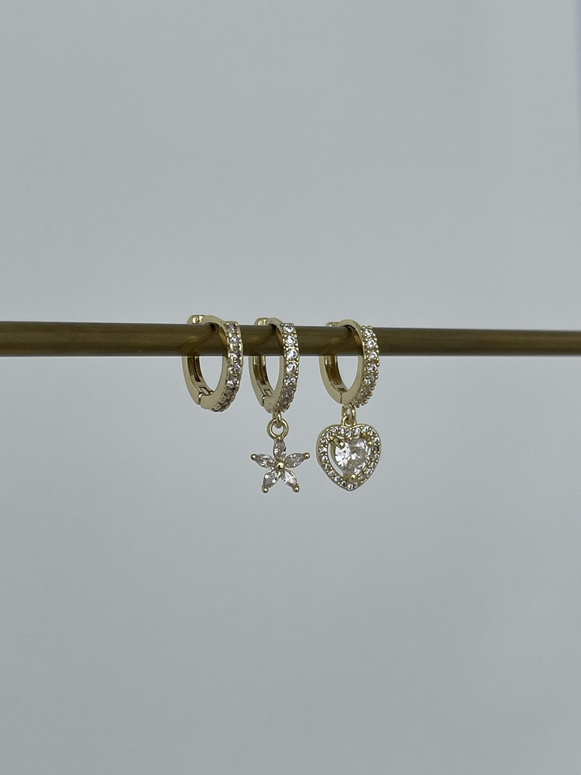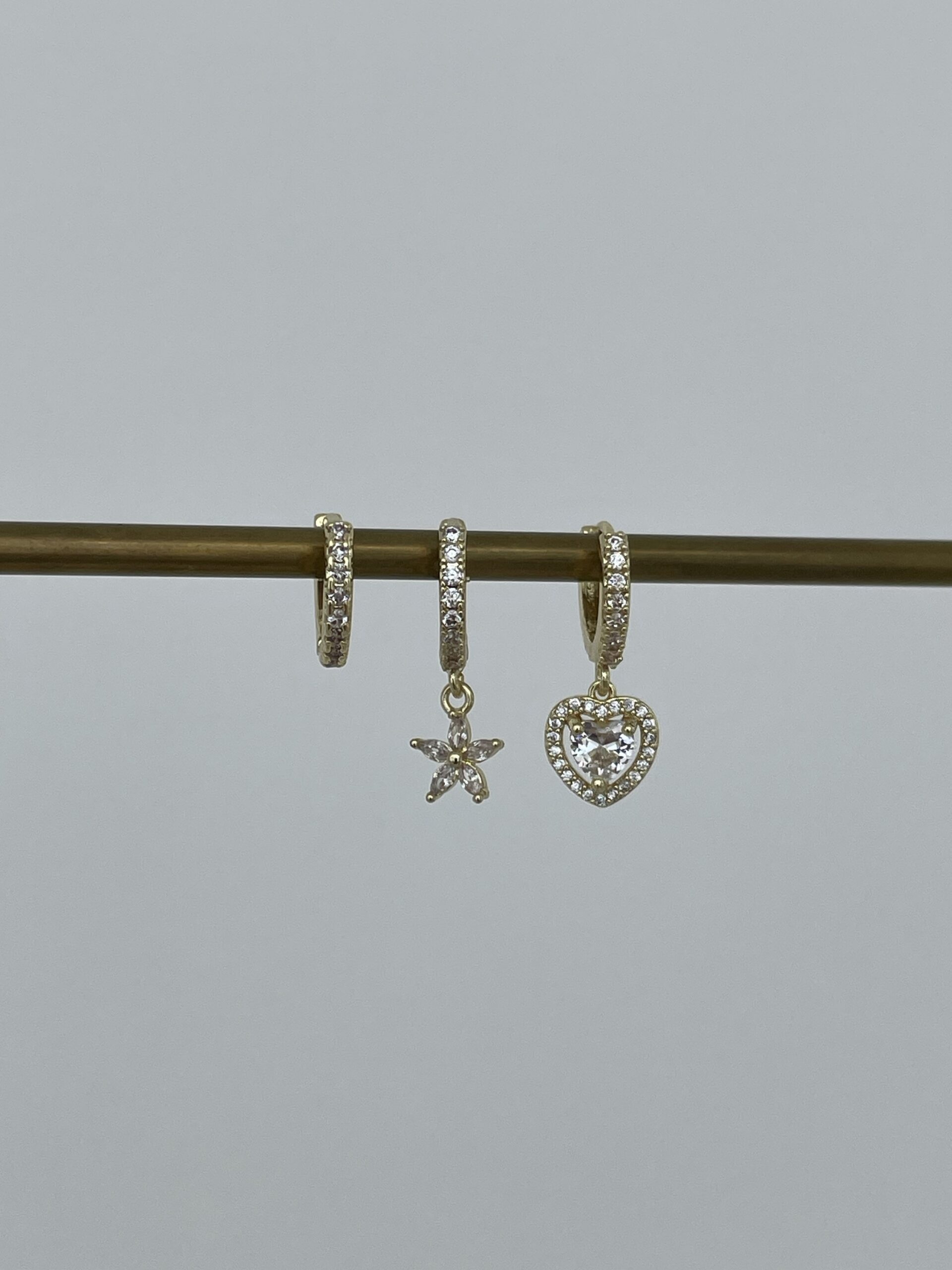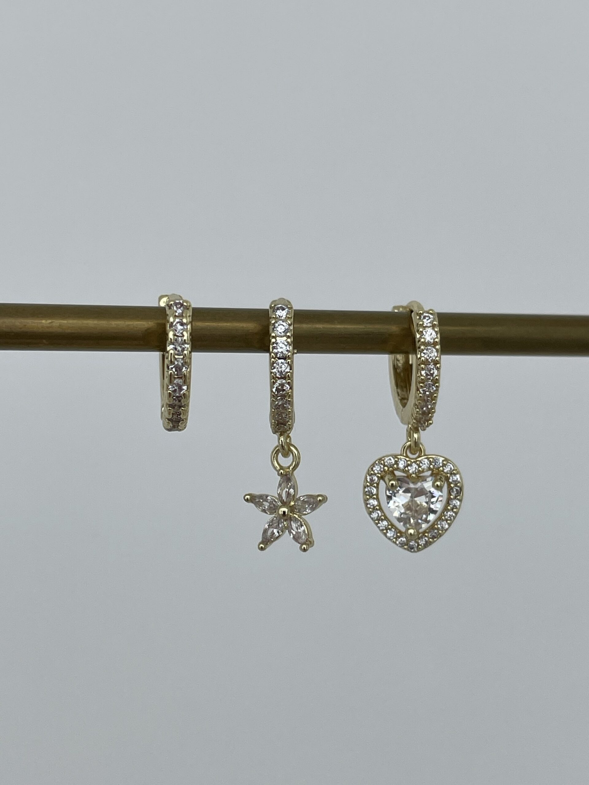 Özel Seri Zirkon Taşlı Kalp & Yıldız Tasarım Gold Üçlü Küpe Set