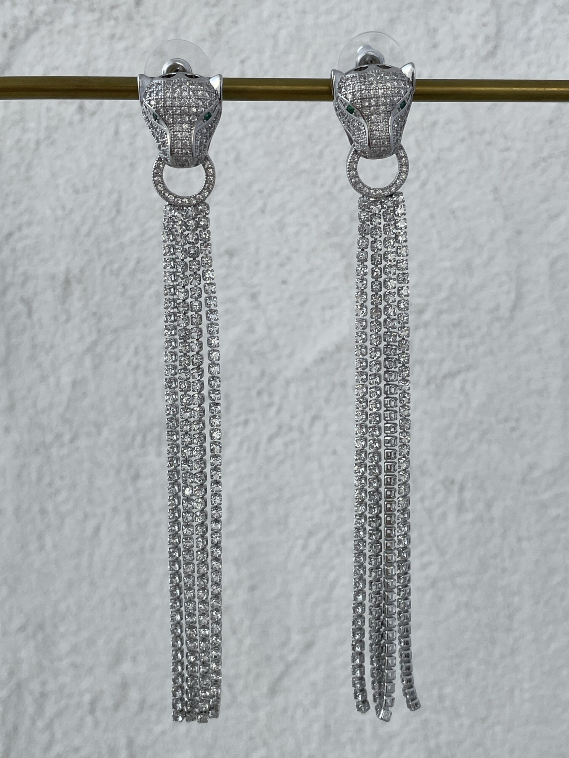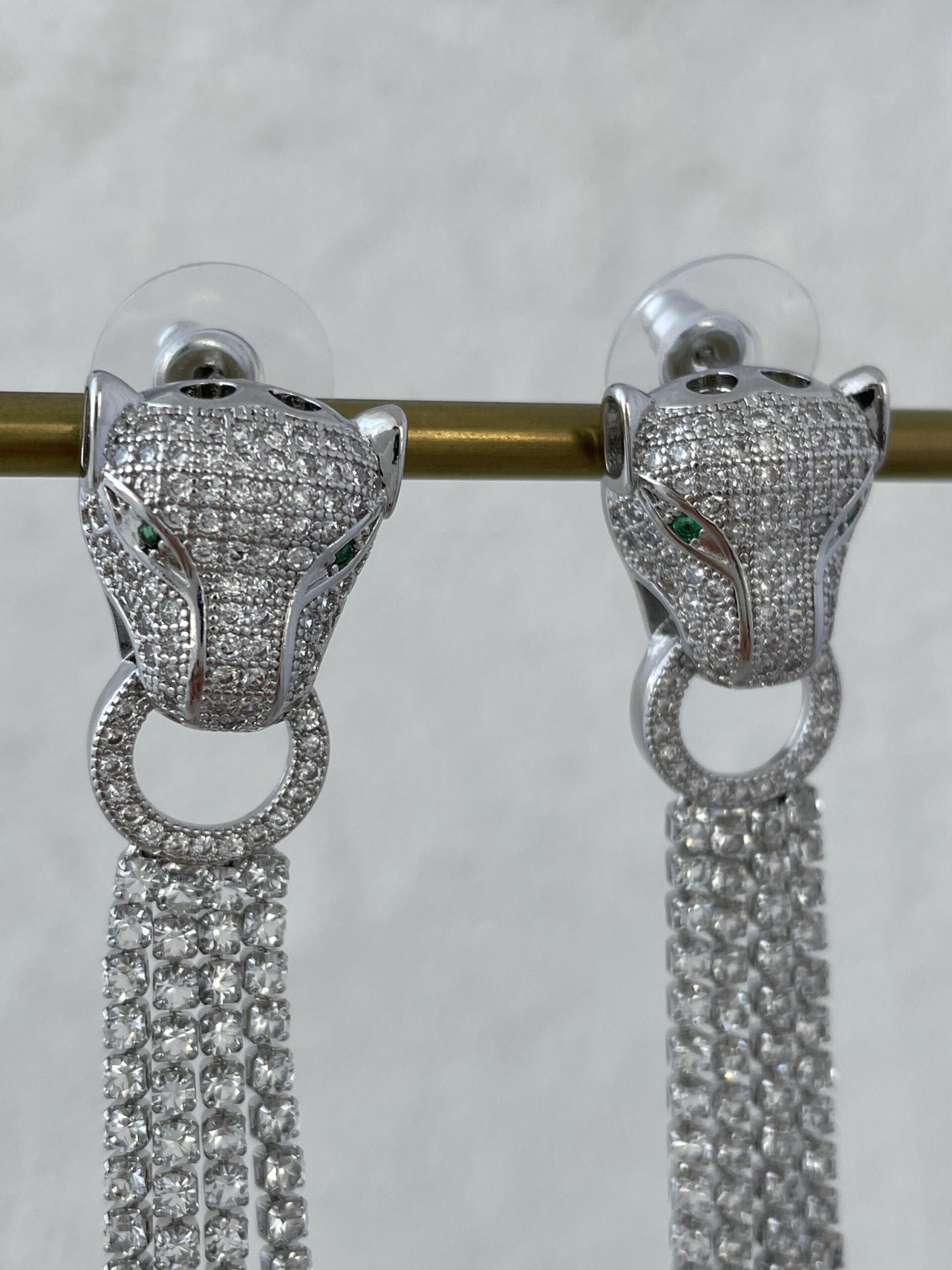 Özel Seri Zirkon Taşlı Kaplan Tasarım Gümüş Küpe