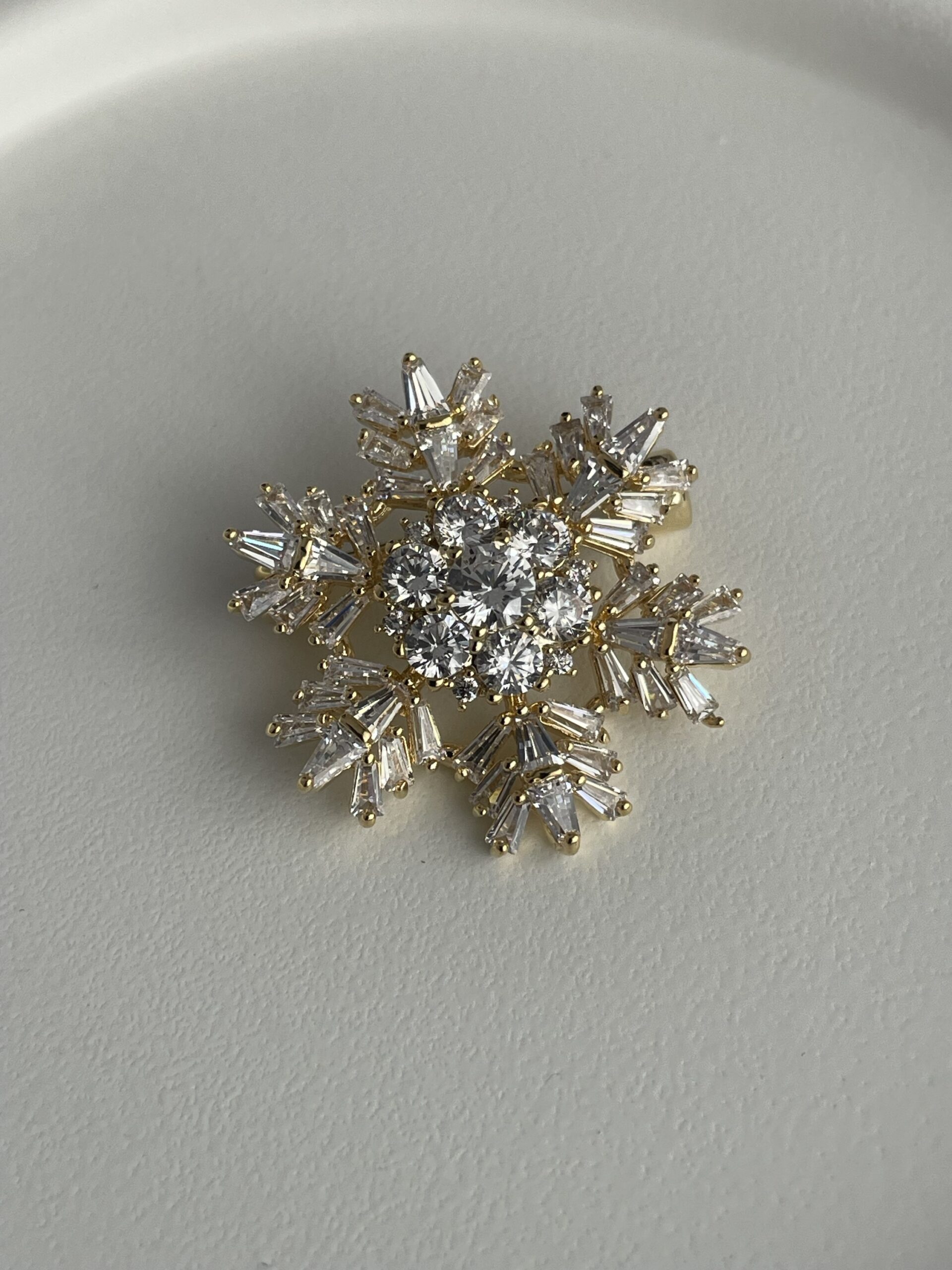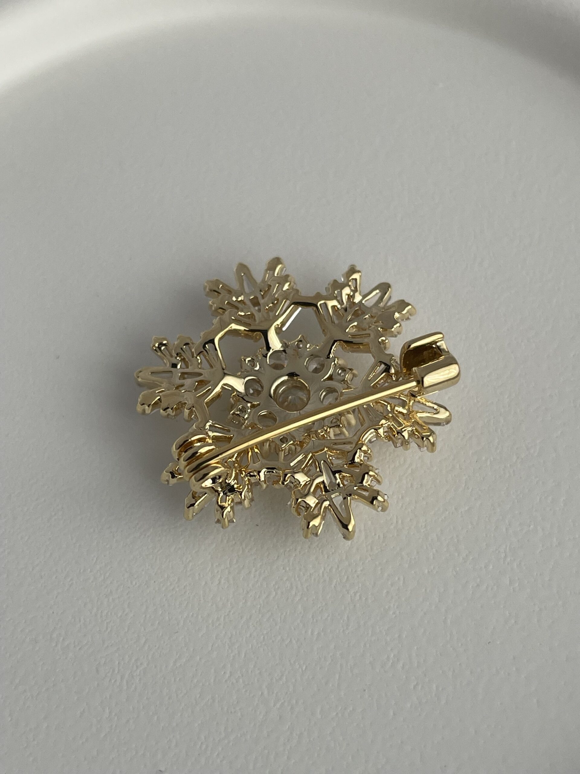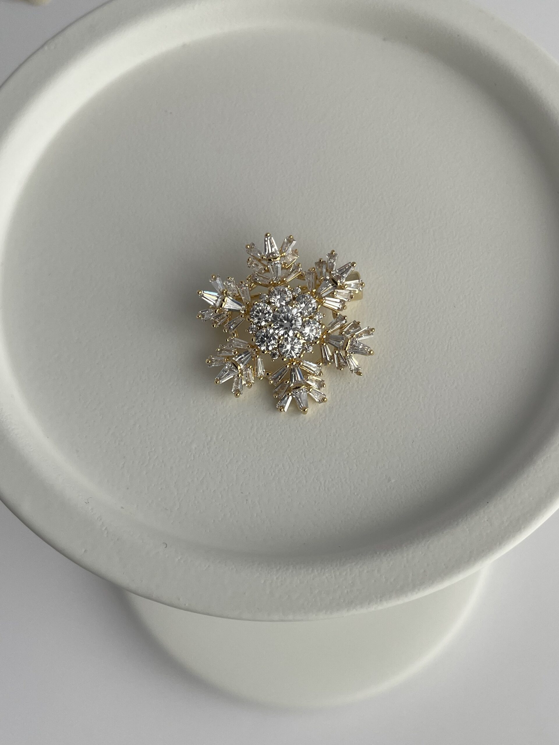 Özel Seri Zirkon Taşlı Kar Desen Gold Broş