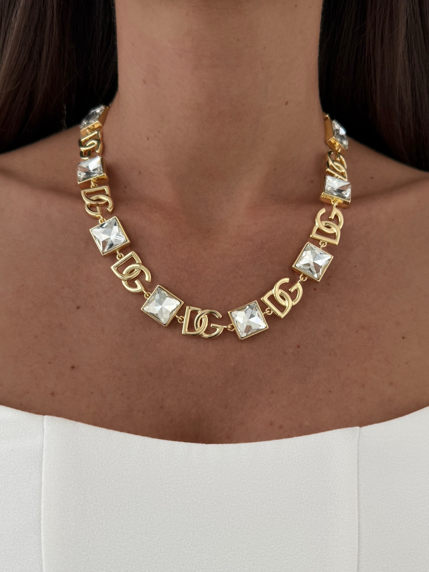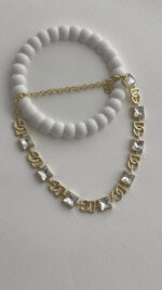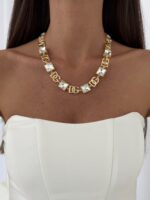 Özel Seri Zirkon Taşlı Kare Detay Marka Model Gold Kolye