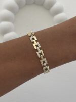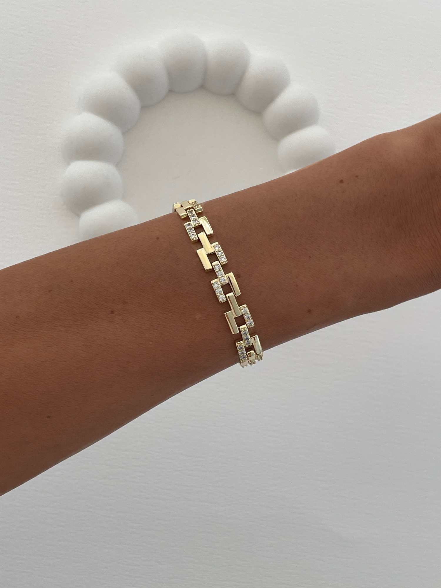 Özel Seri Zirkon Taşlı Kare Figaro Zincir Gold Bileklik