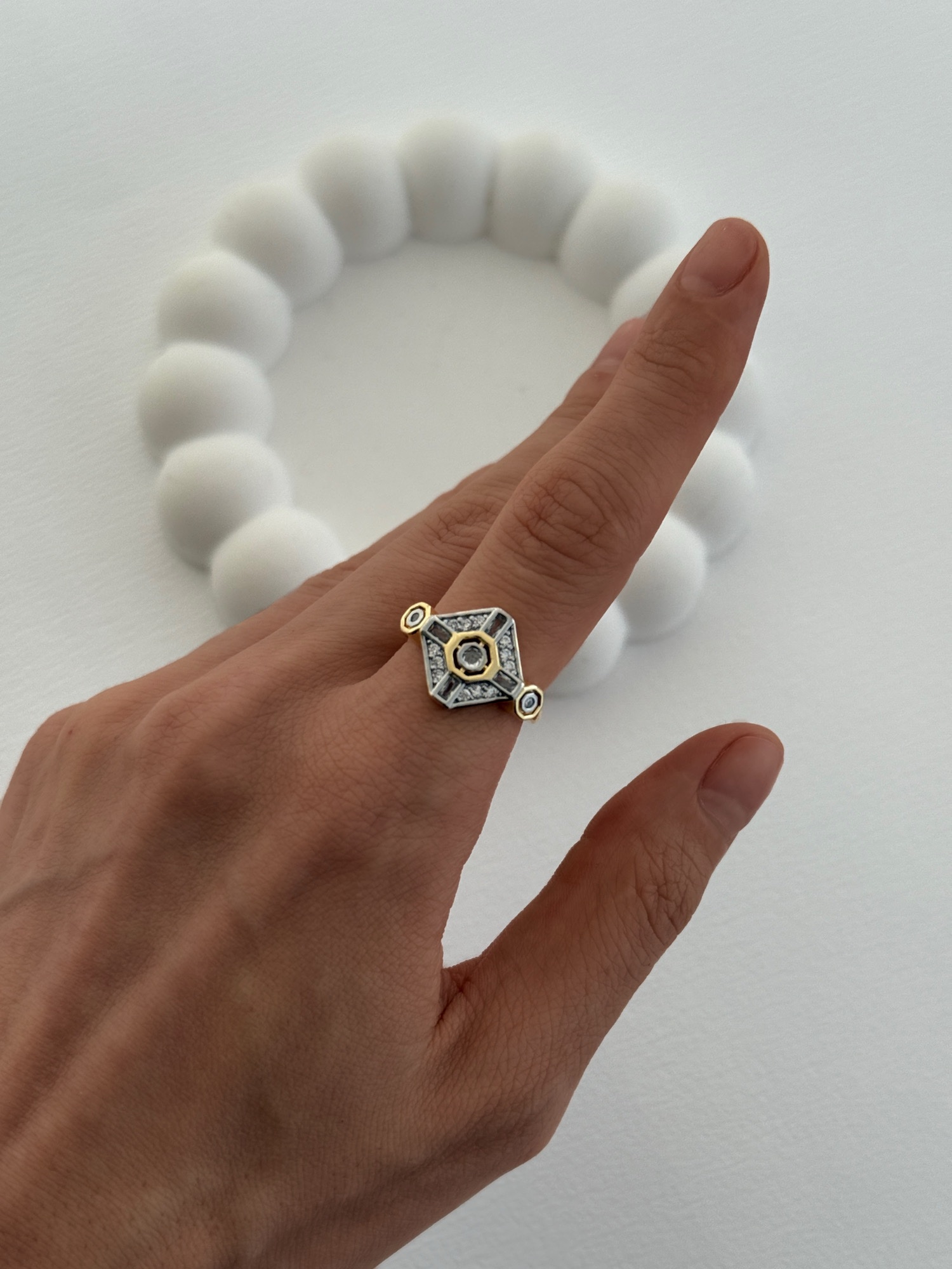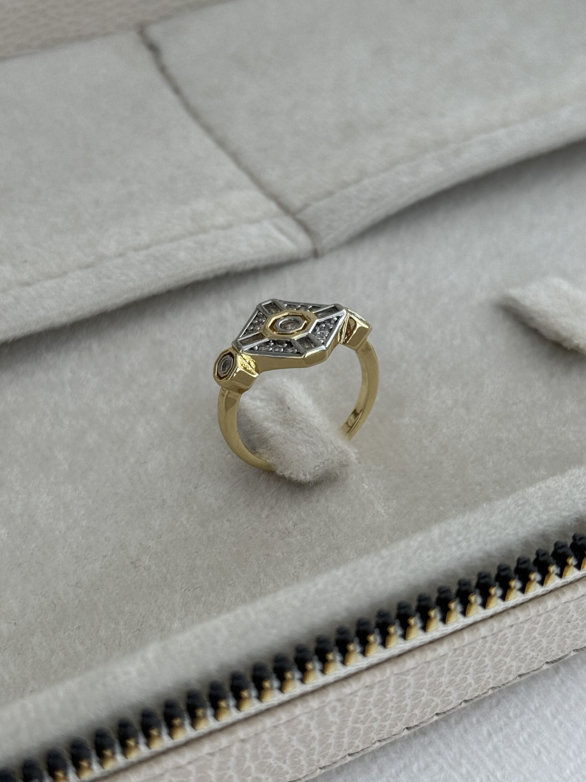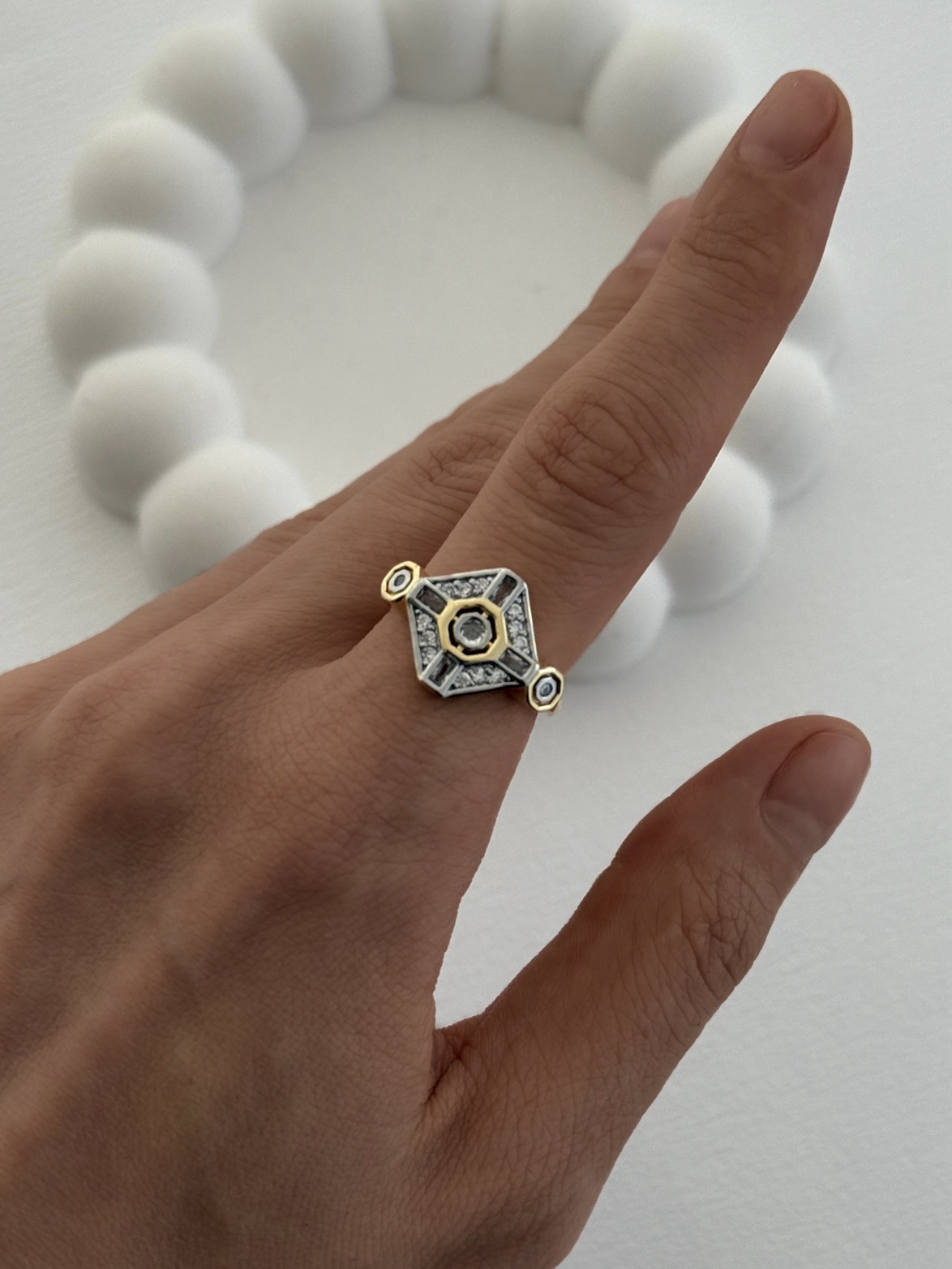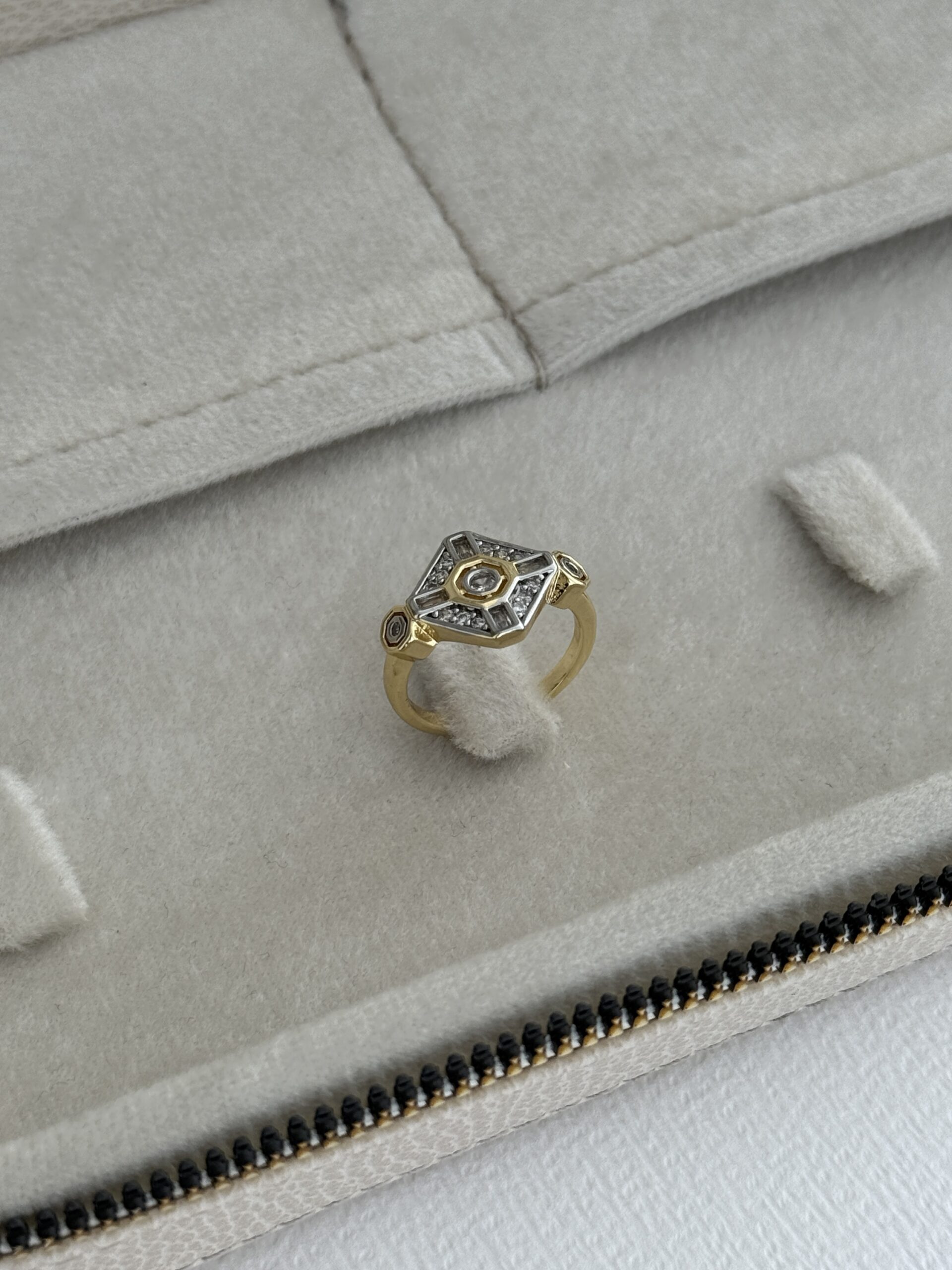 Özel Seri Zirkon Taşlı Kare Tasarım Gold Ayarlanabilir Yüzük