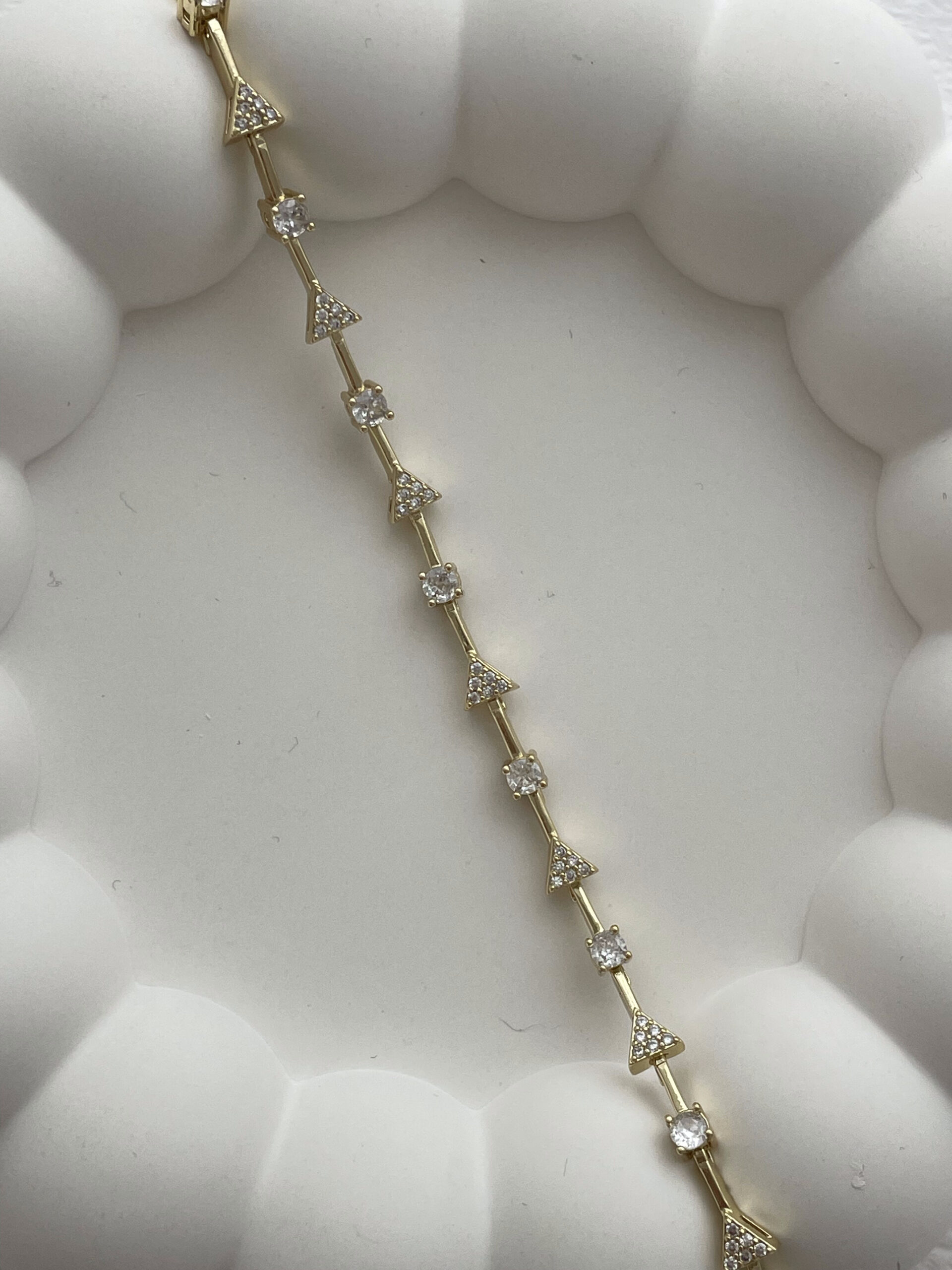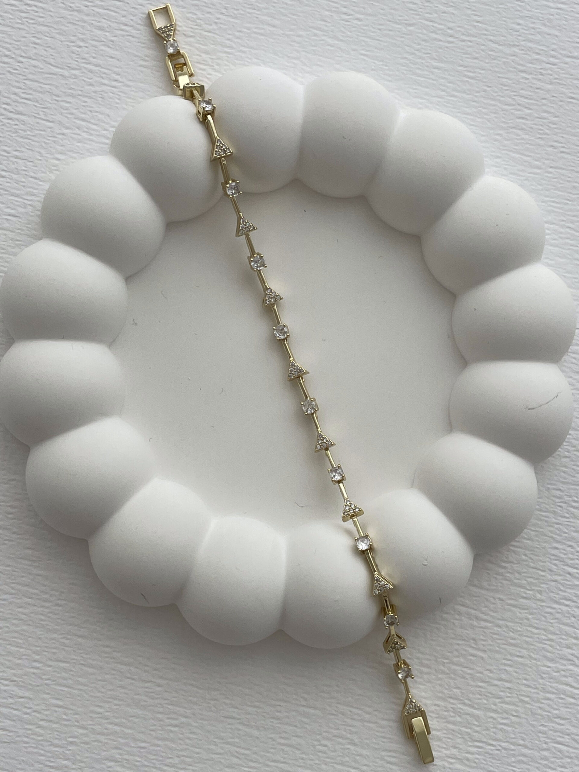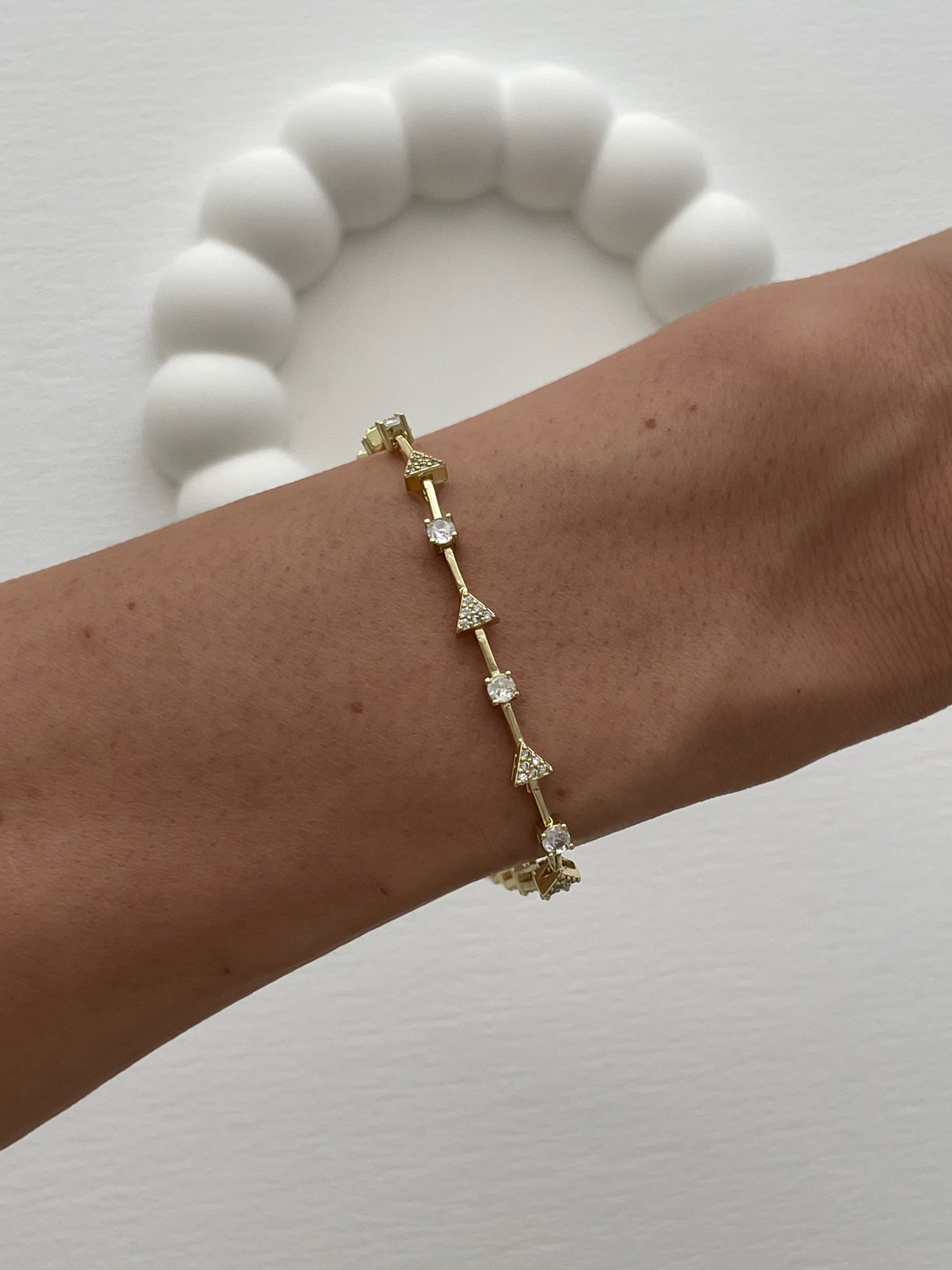 Özel Seri Zirkon Taşlı Kare & Üçgen Tasarım Gold Bileklik