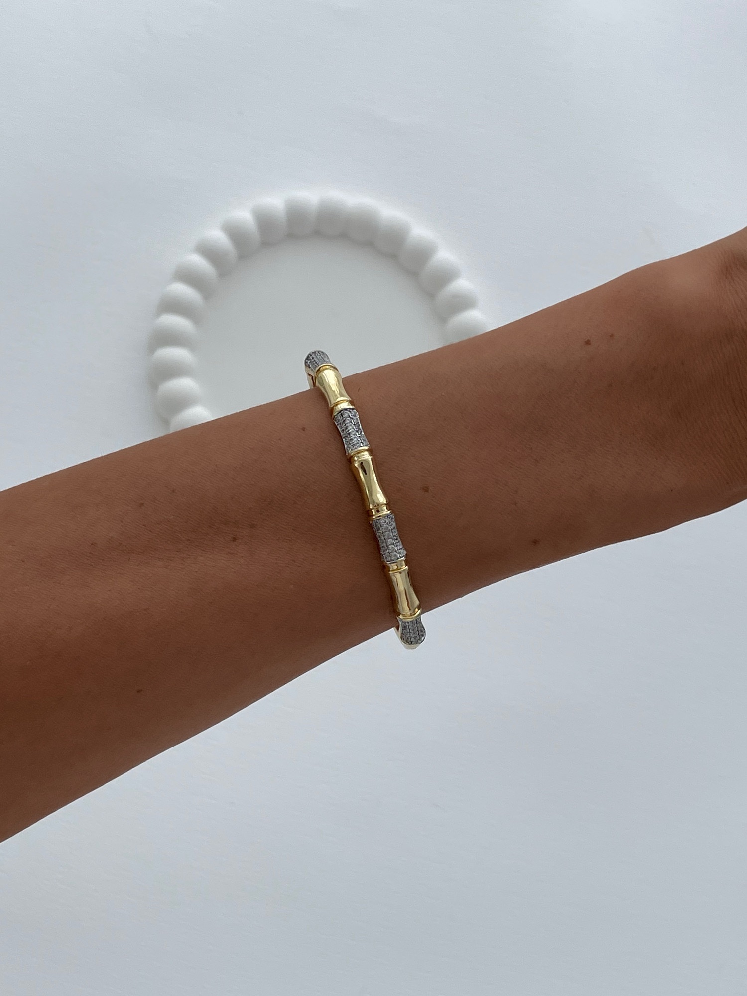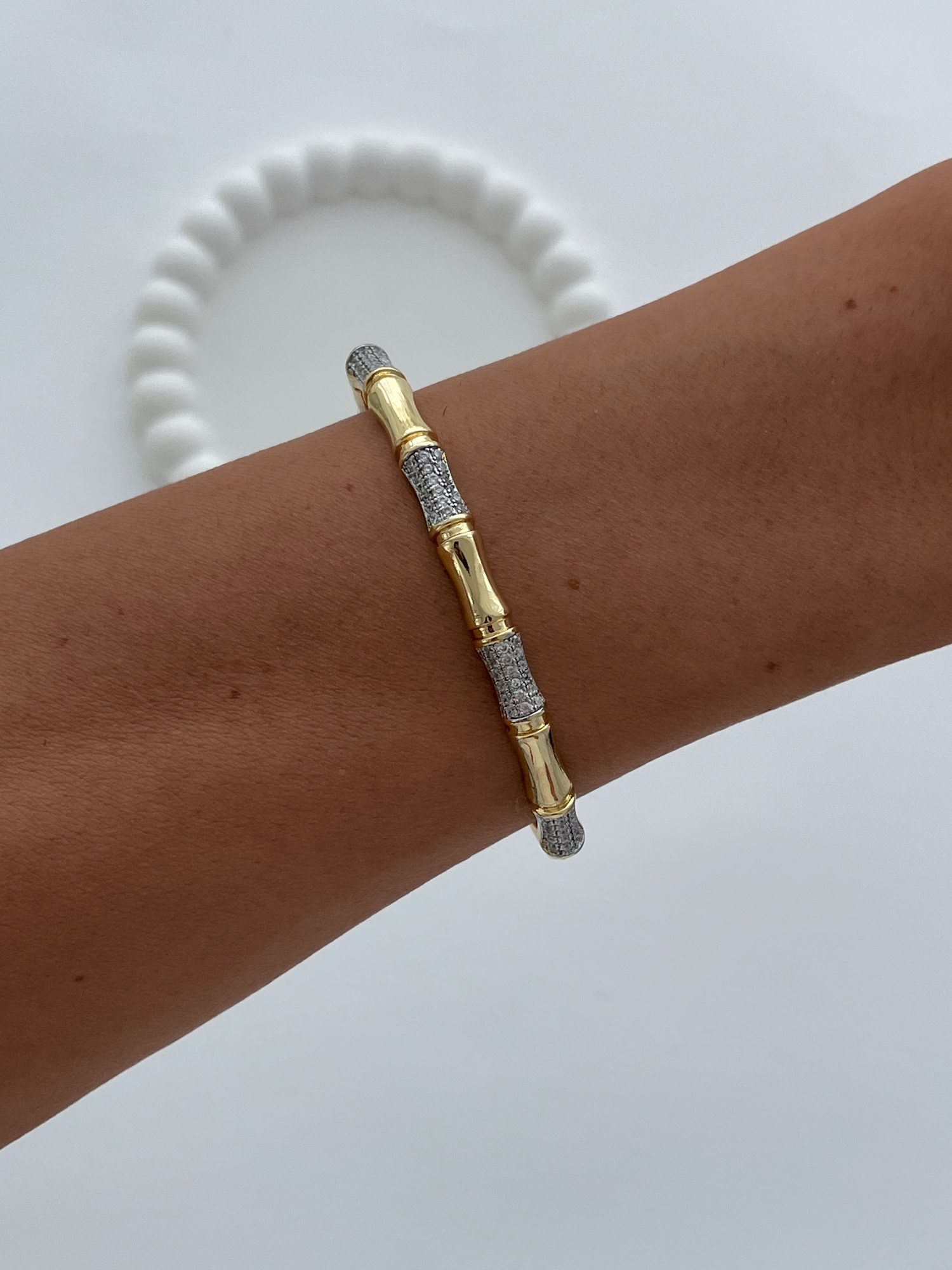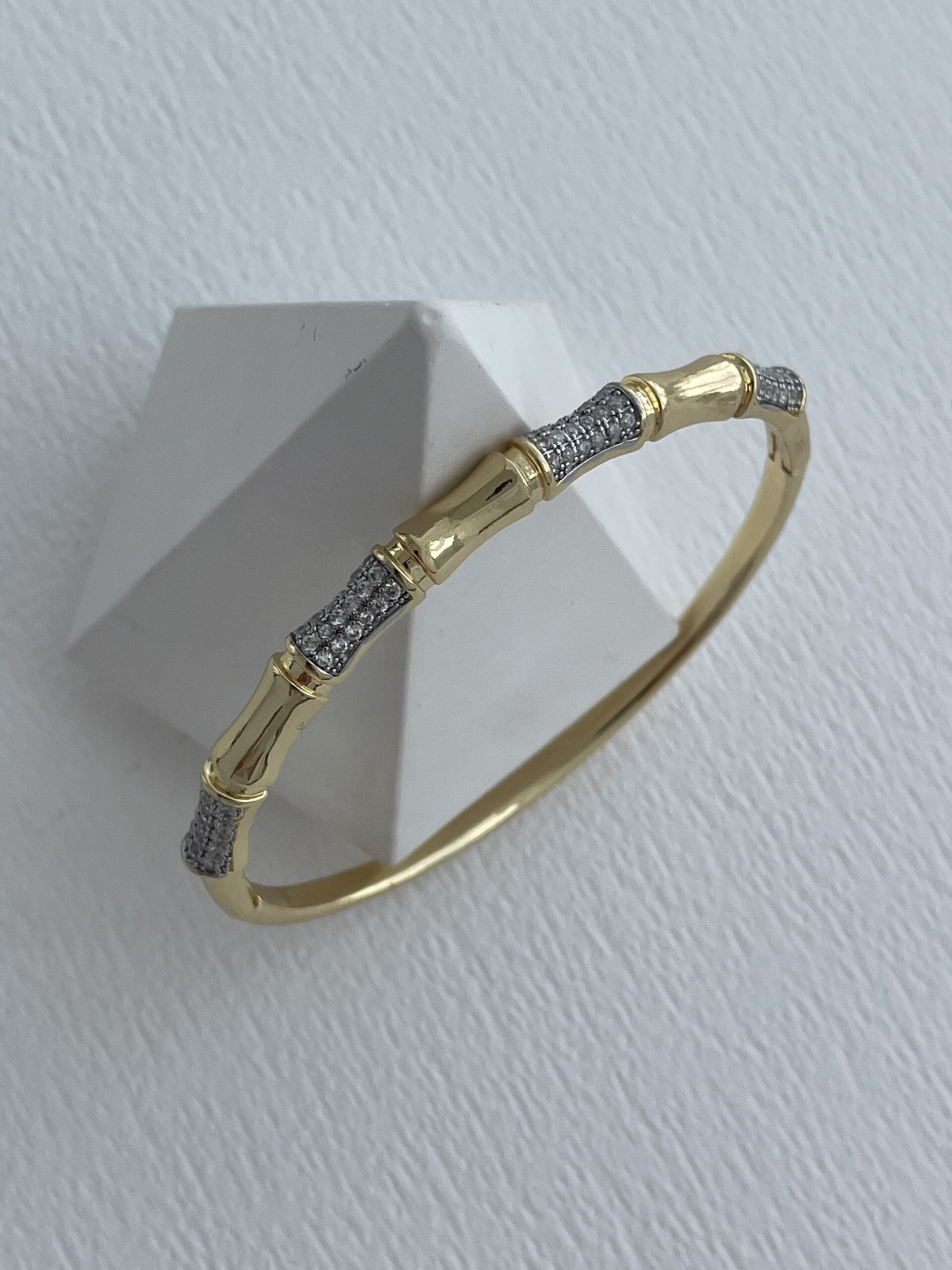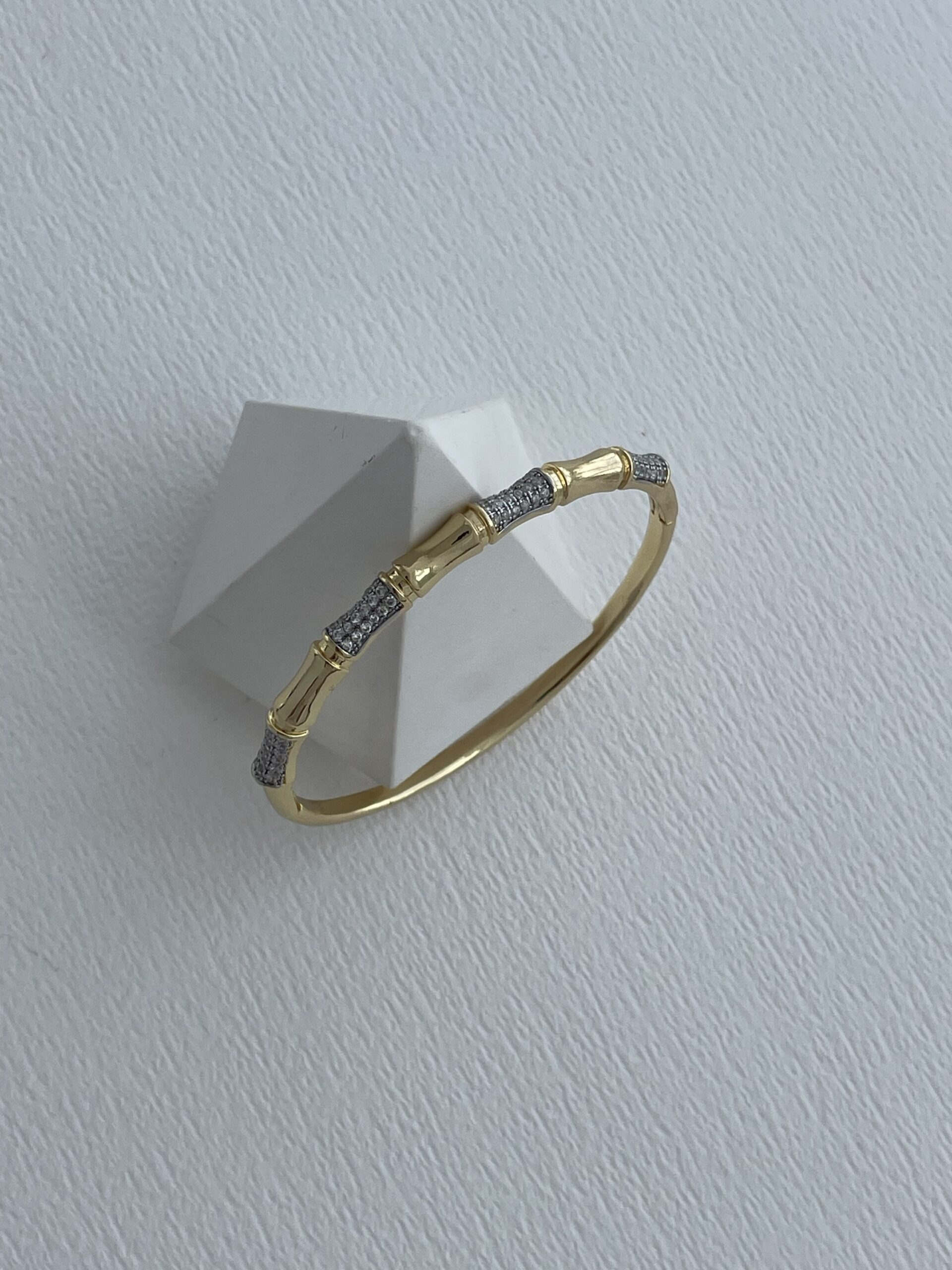 Özel Seri Zirkon Taşlı Kemik Tasarım Gold Kelepçe Bileklik