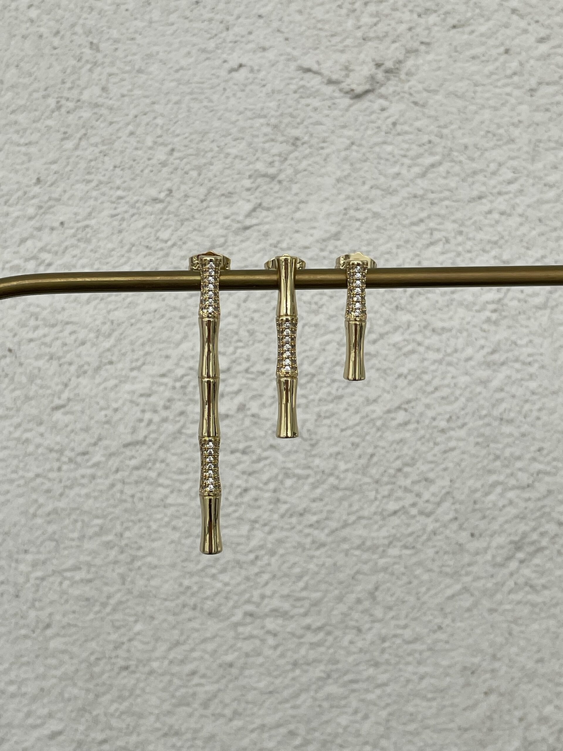 Özel Seri Zirkon Taşlı Kemik Tasarım Üçlü Gold Küpe Seti