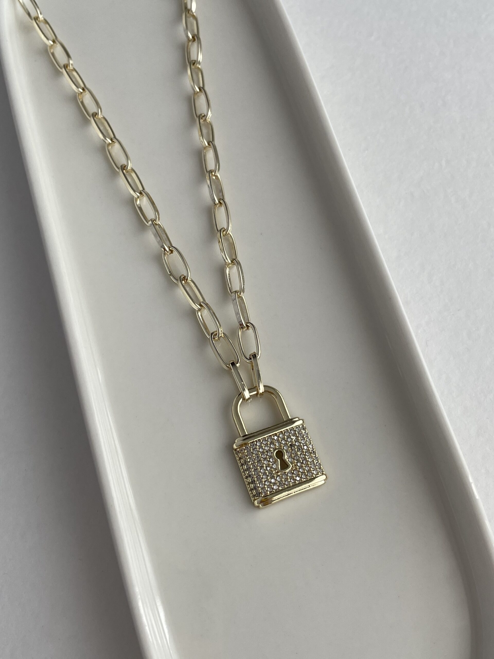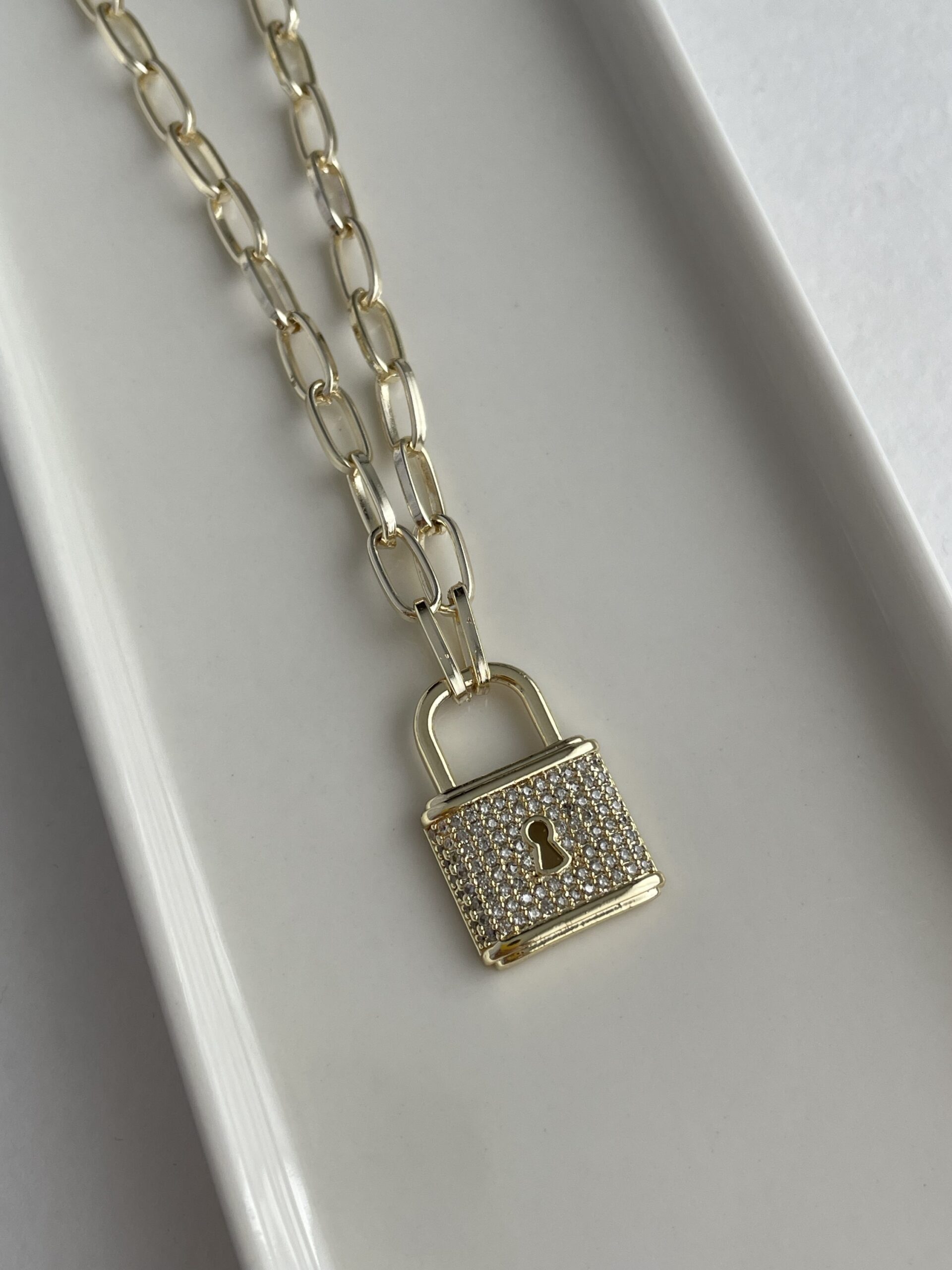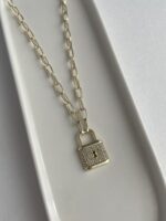 Özel Seri Zirkon Taşlı Kilit Tasarım Figaro Zincir Kolye