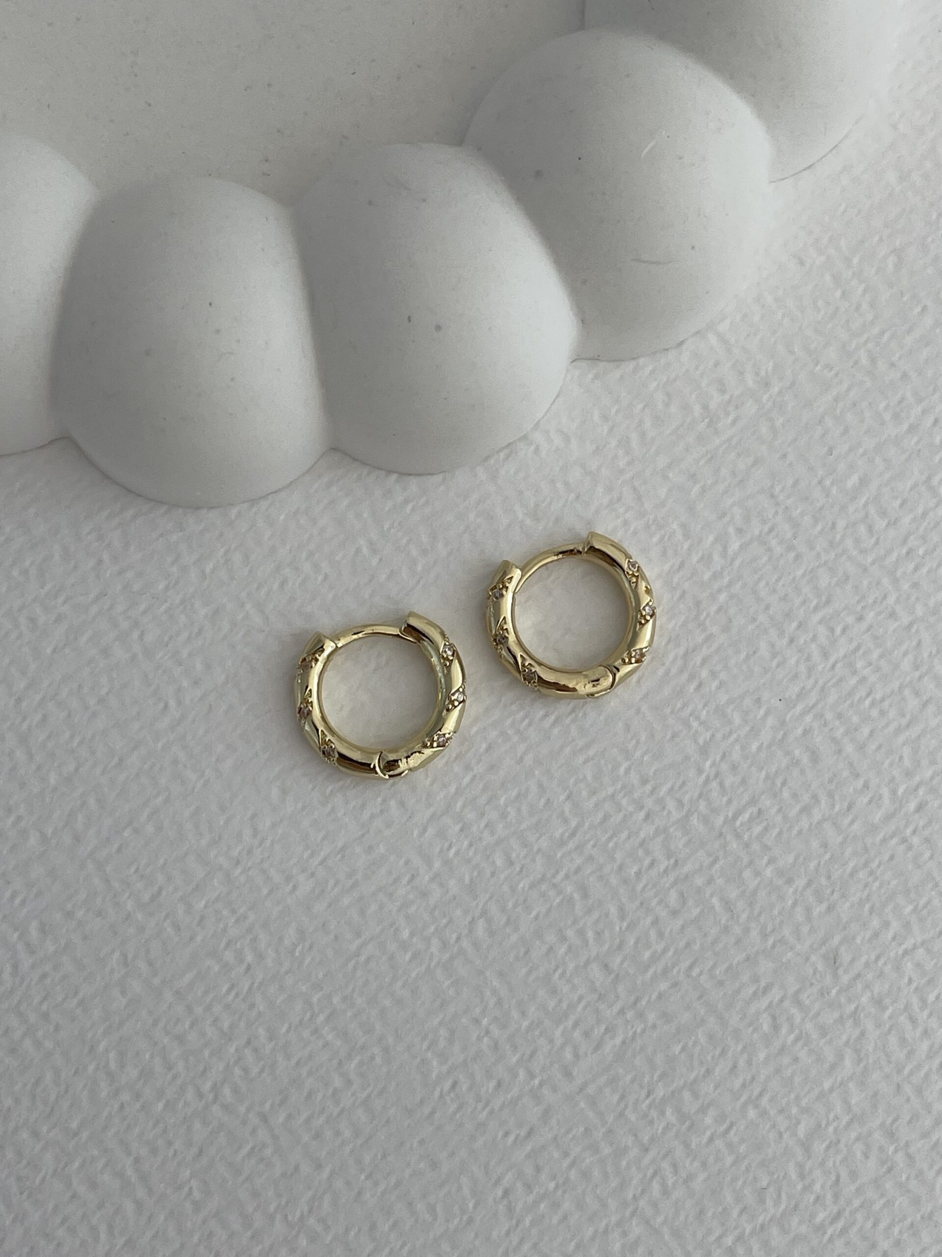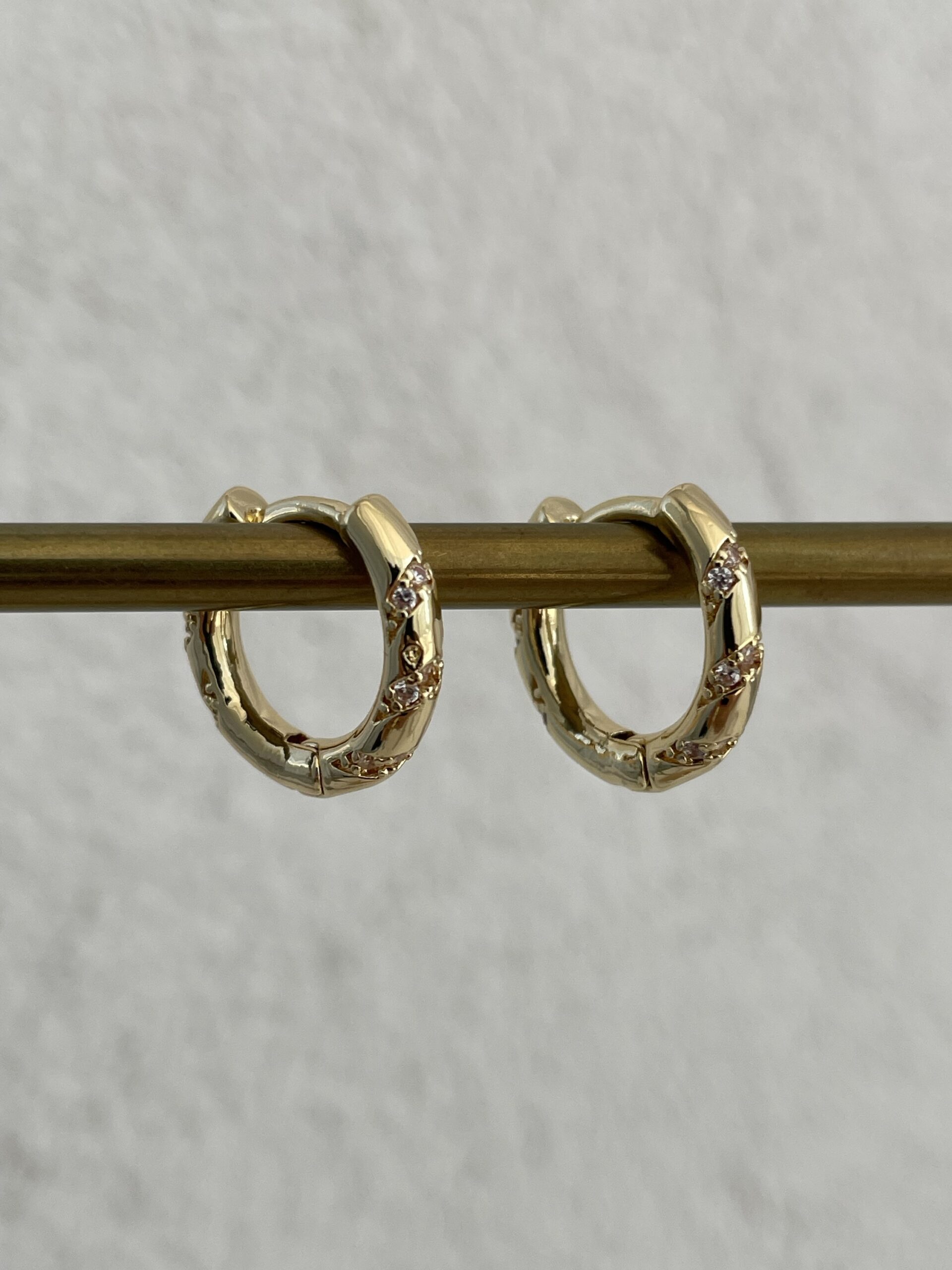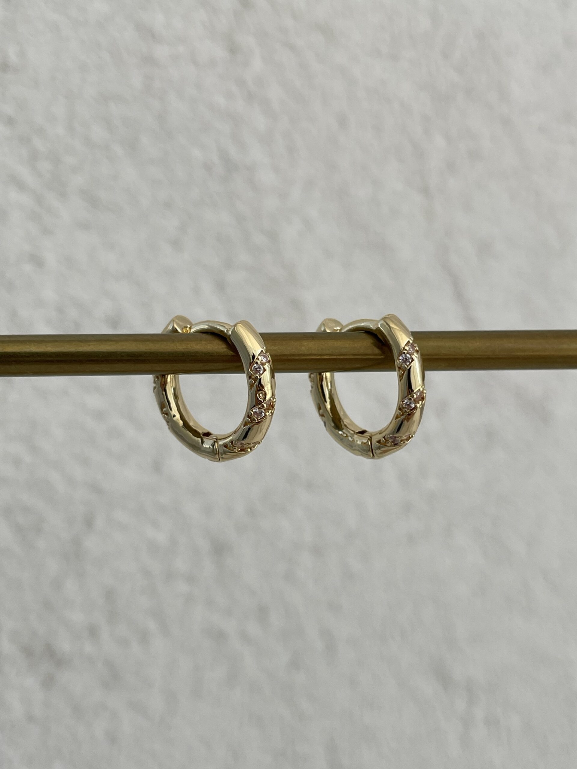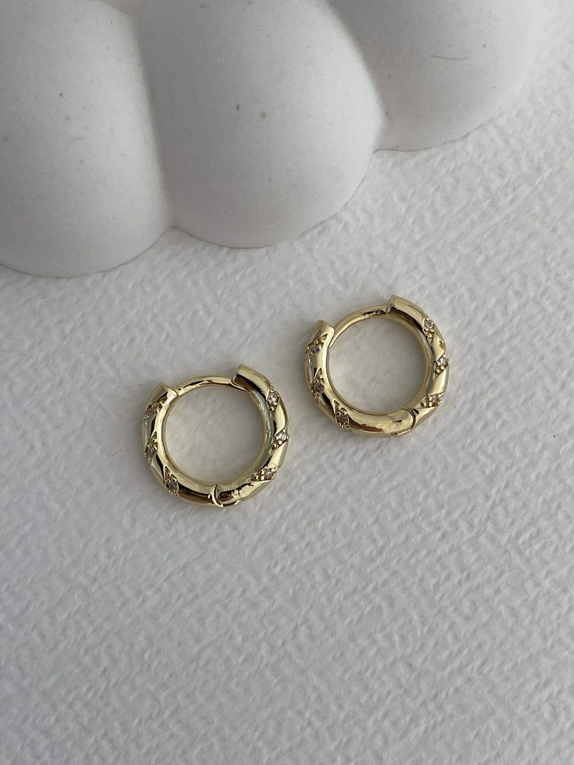 Özel Seri Zirkon Taşlı Küçük Boy Gold Halka Küpe