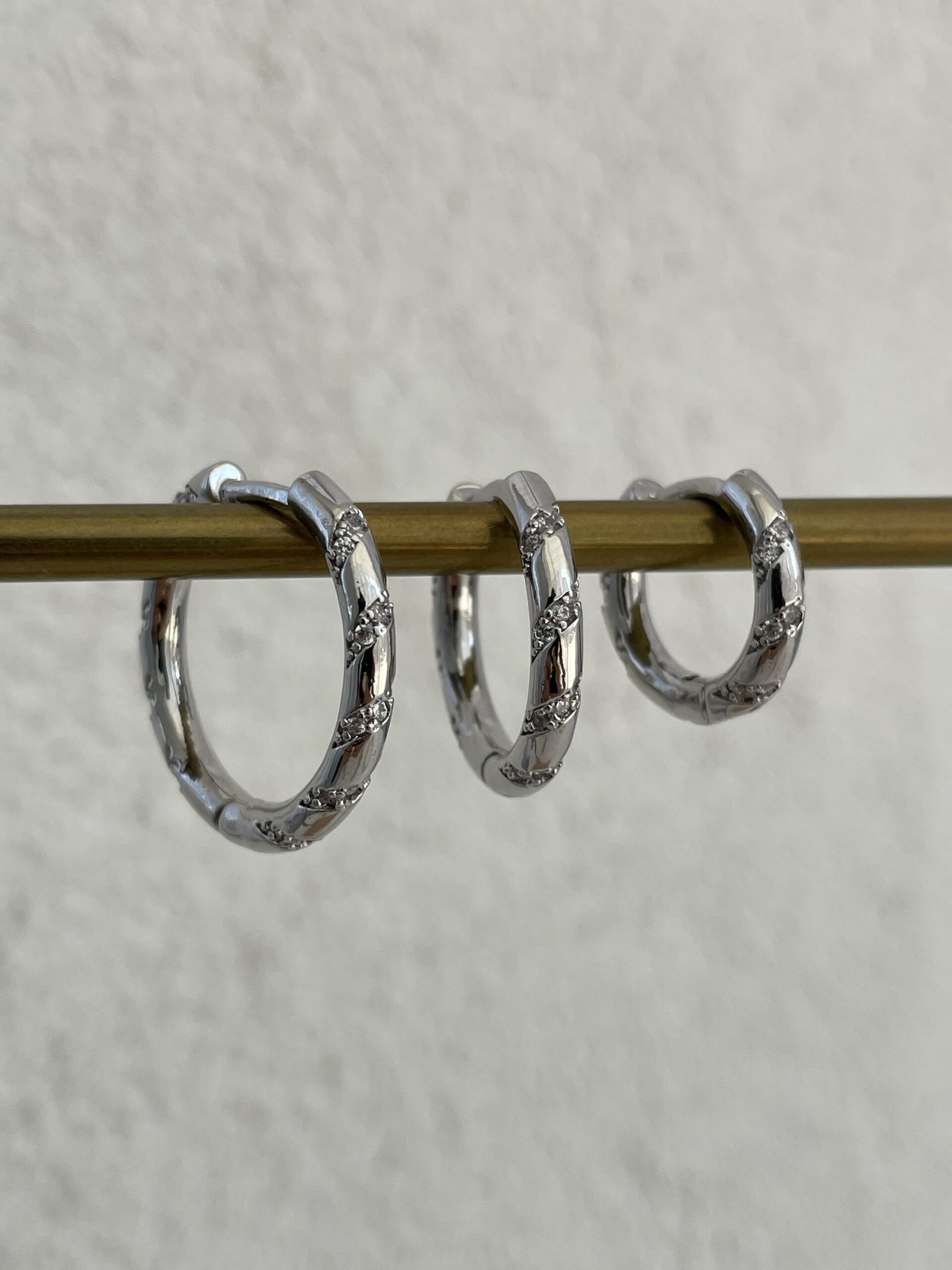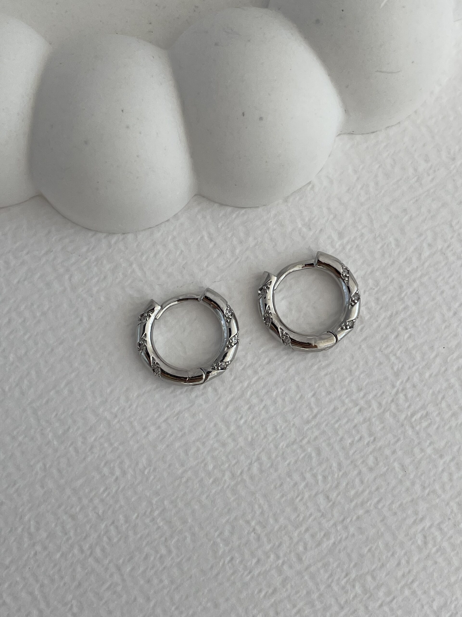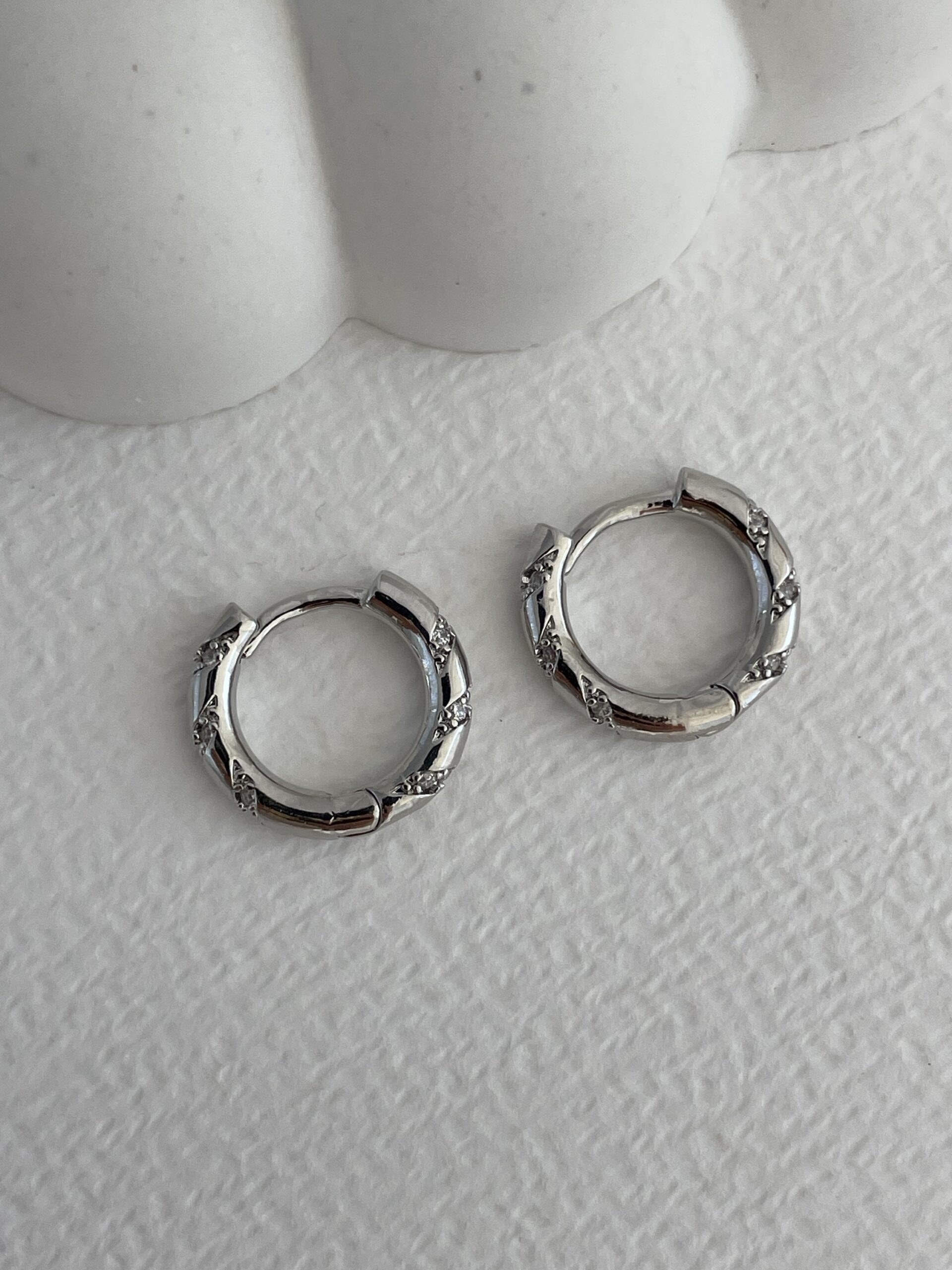 Özel Seri Zirkon Taşlı Küçük Boy Gümüş Halka Küpe
