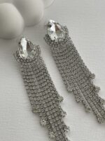 Özel Seri Zirkon Taşlı Maksi Boy Sallantılı Gümüş Küpe