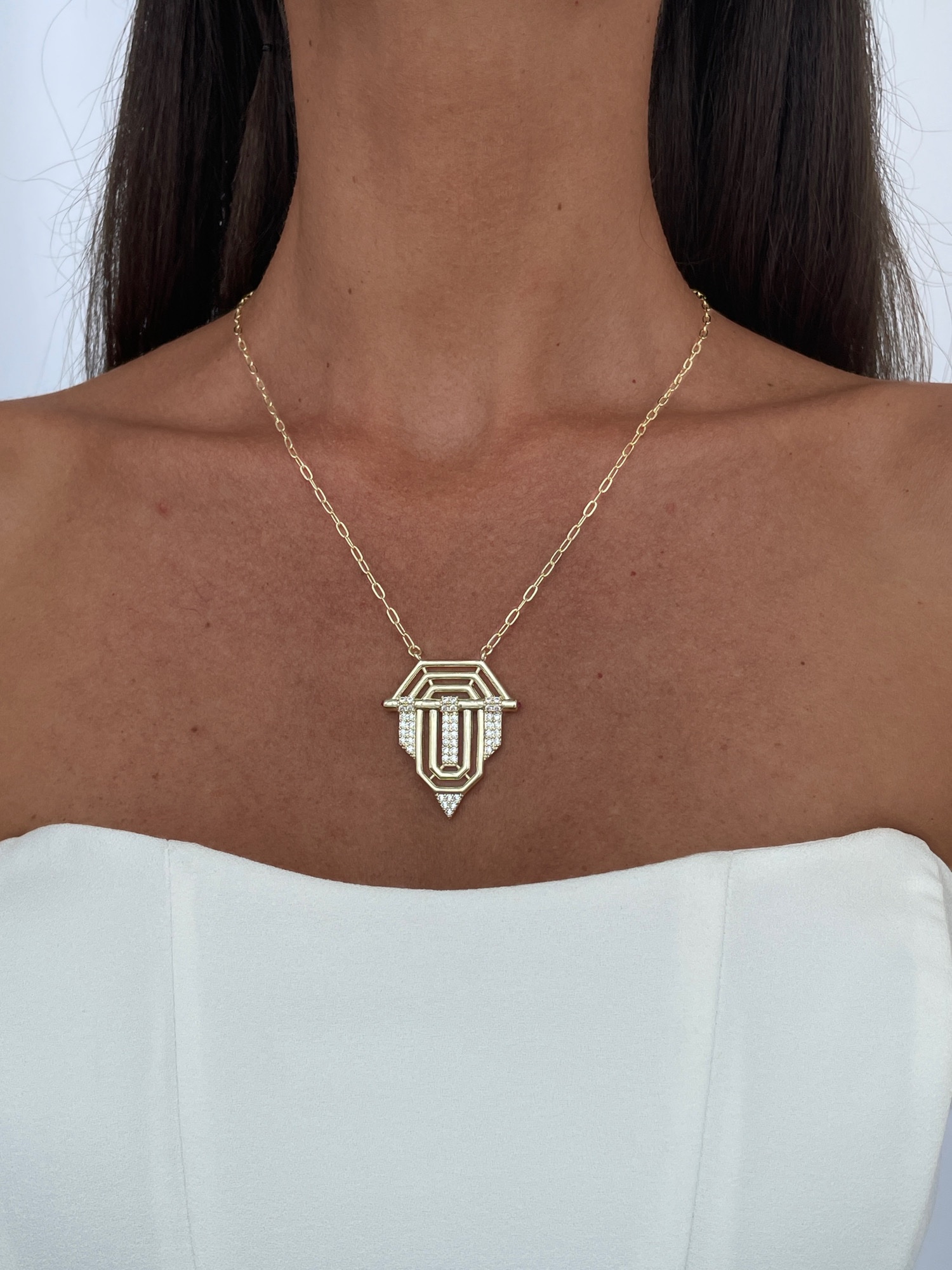 Özel Seri Zirkon Taşlı Marka Model Gold Serenay Kolye