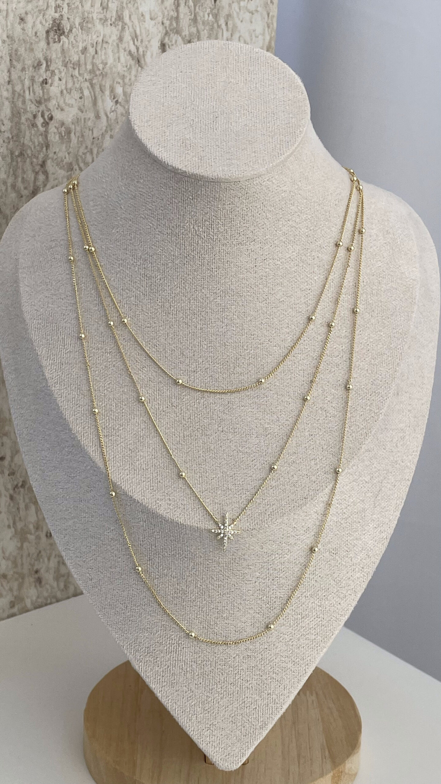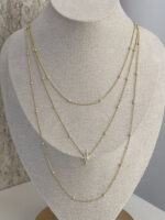 Özel Seri Zirkon Taşlı Minik Top Yıldız Detay İnce Üçlü Gold Kolye
