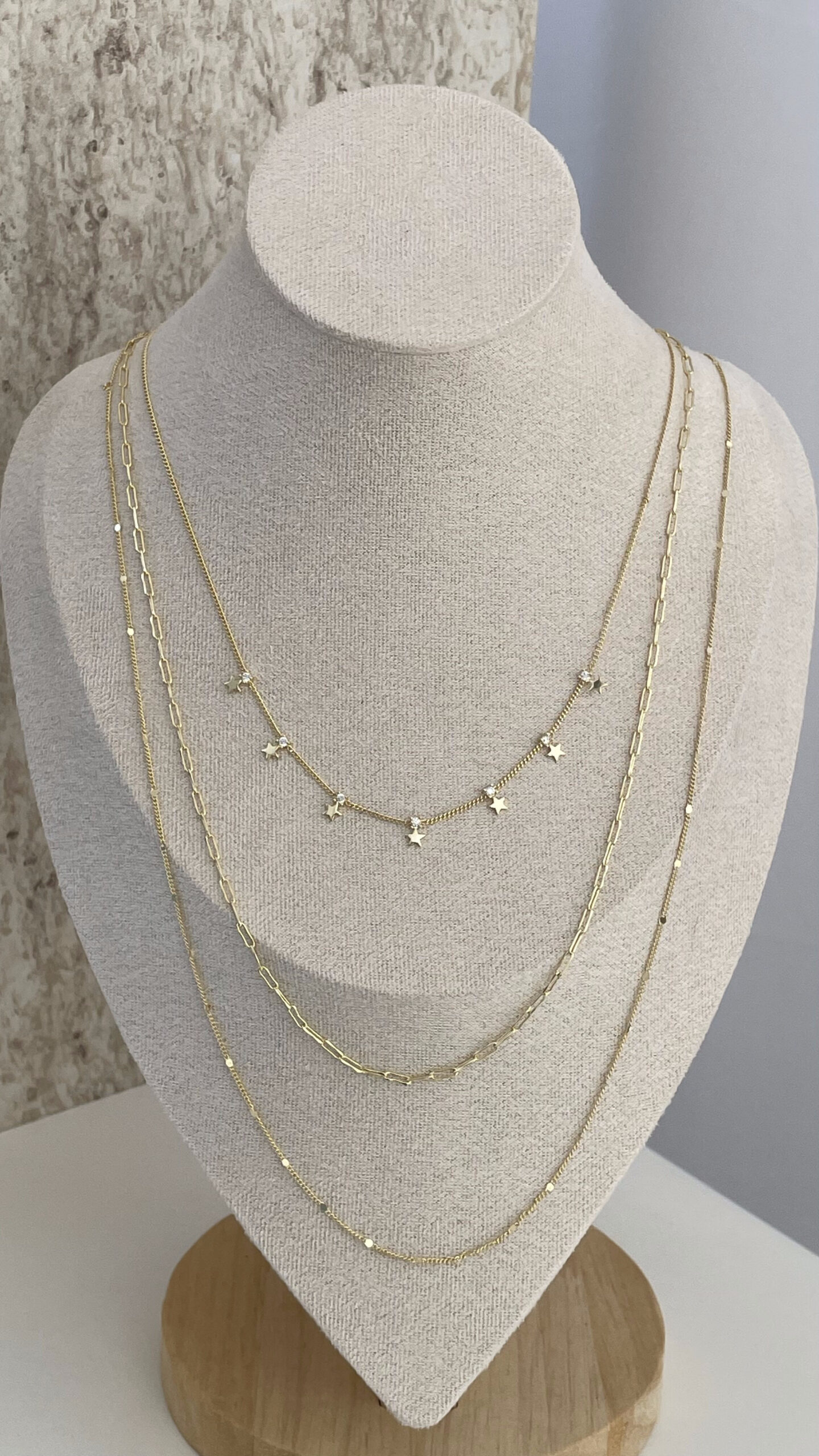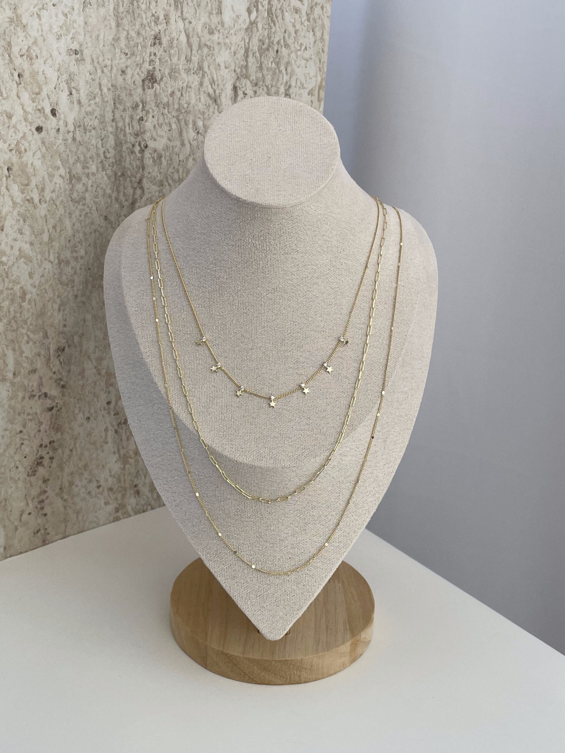 Özel Seri Zirkon Taşlı Minik Yıldız Tasarım Üçlü İnce Gold Kolye