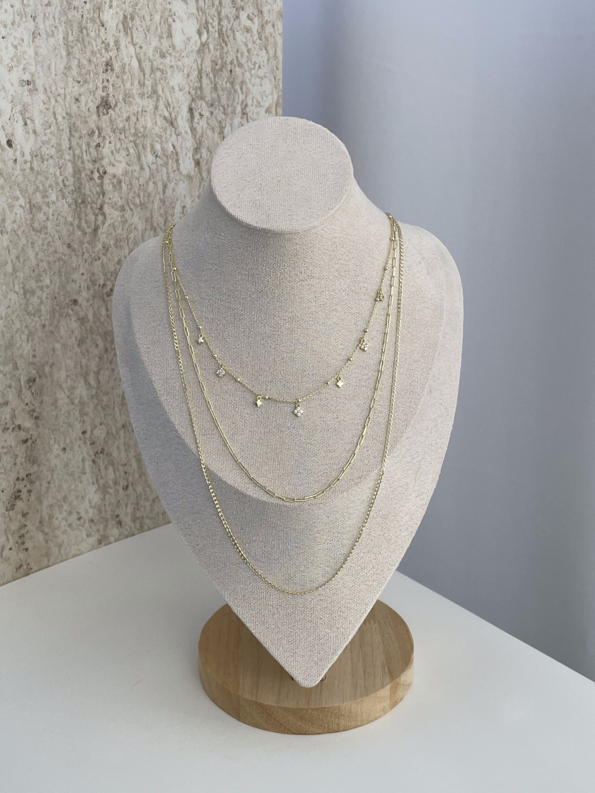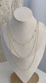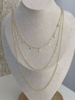 Özel Seri Zirkon Taşlı Minik Yonca Tasarım Üçlü İnce Gold Kolye