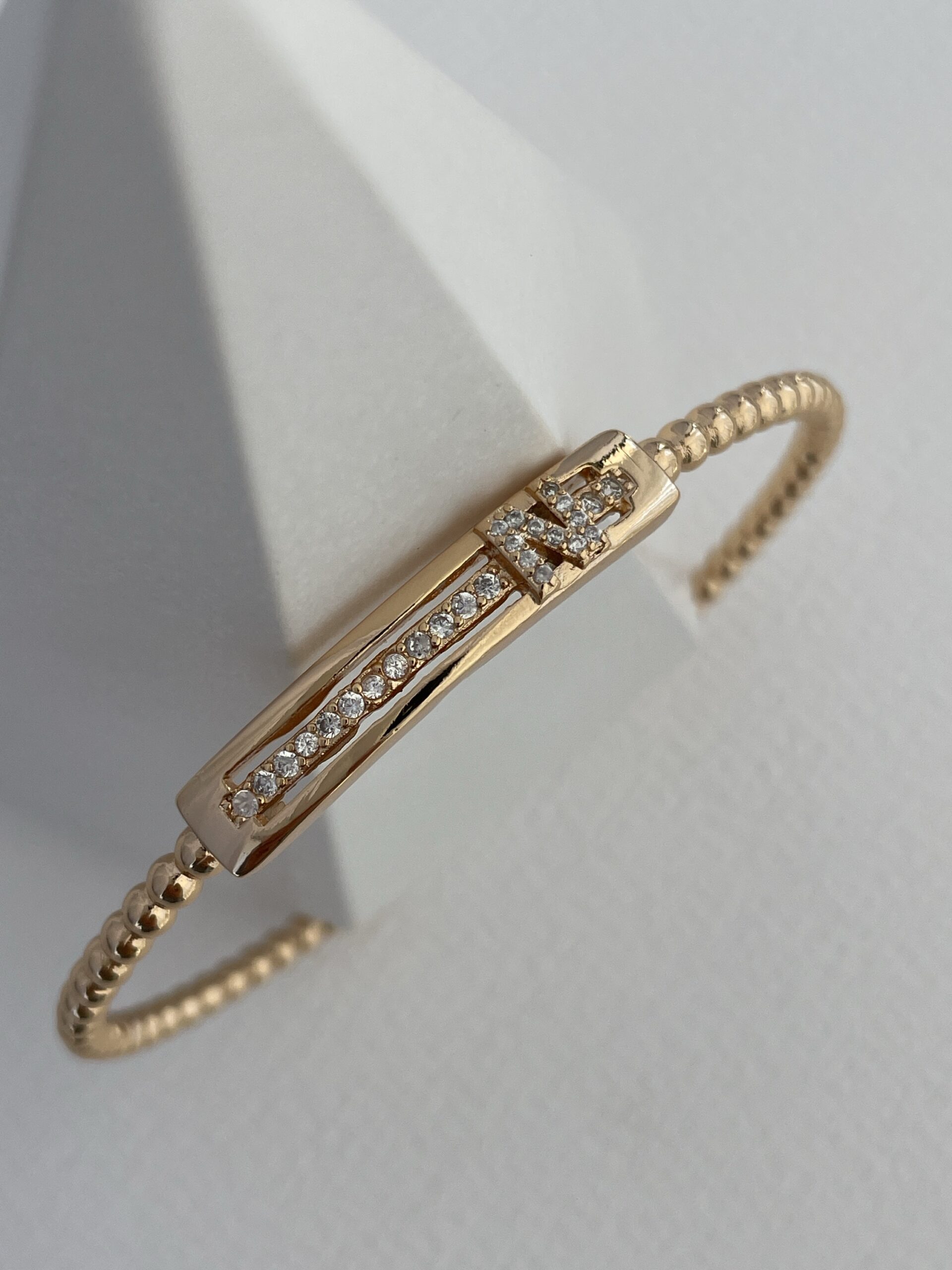 Özel Seri Zirkon Taşlı N Harf Gold Ayarlanabilir Bileklik