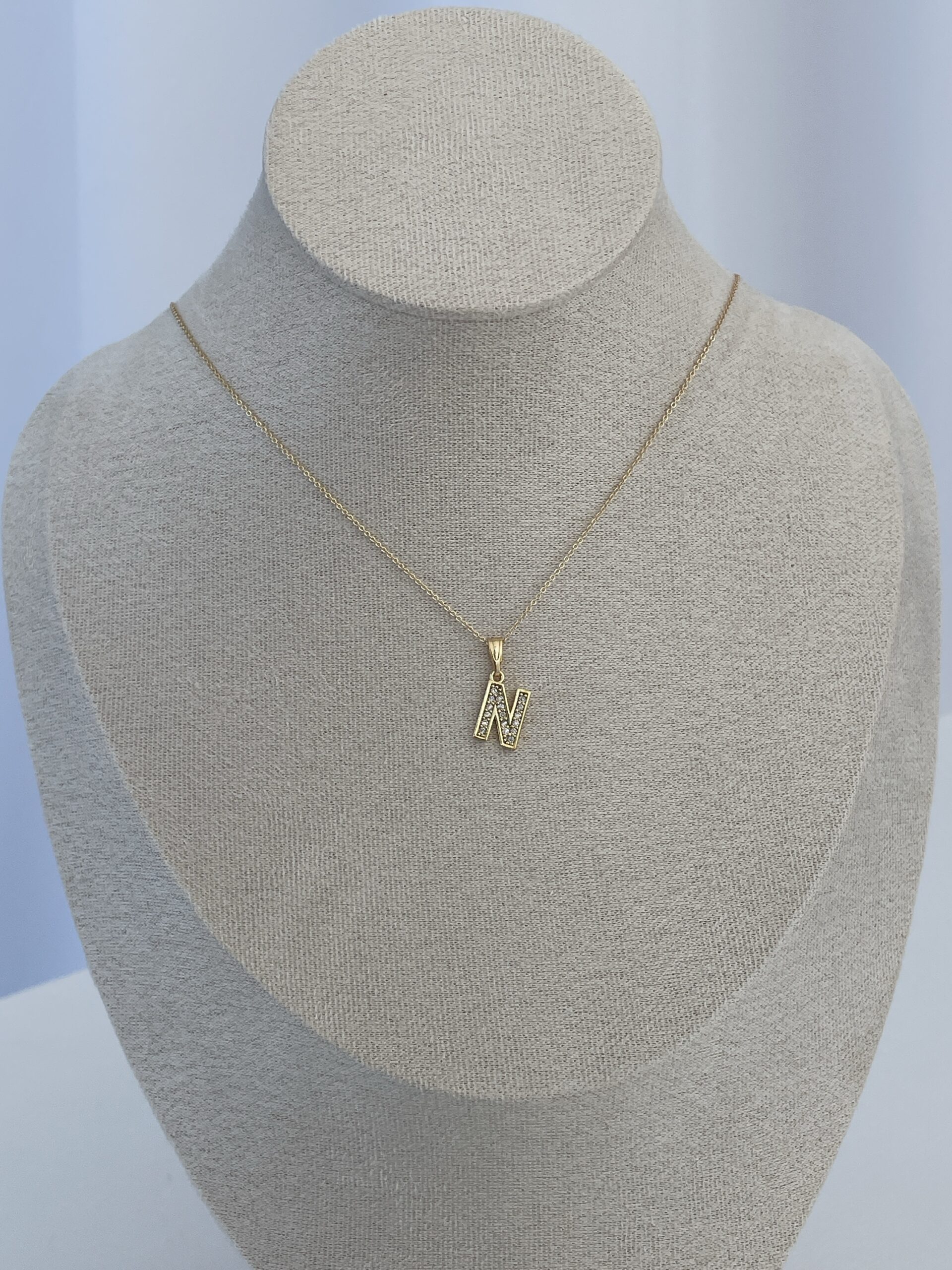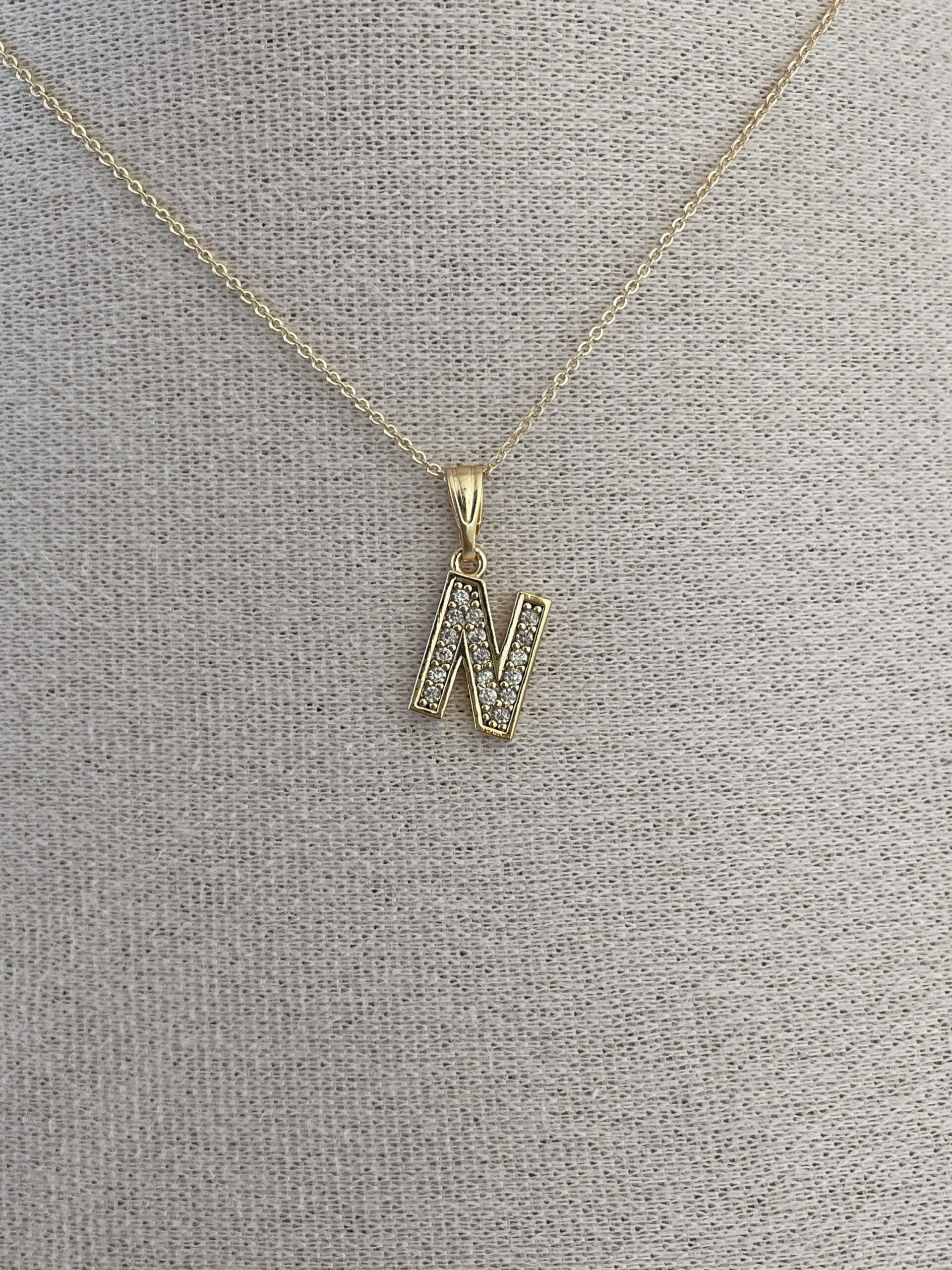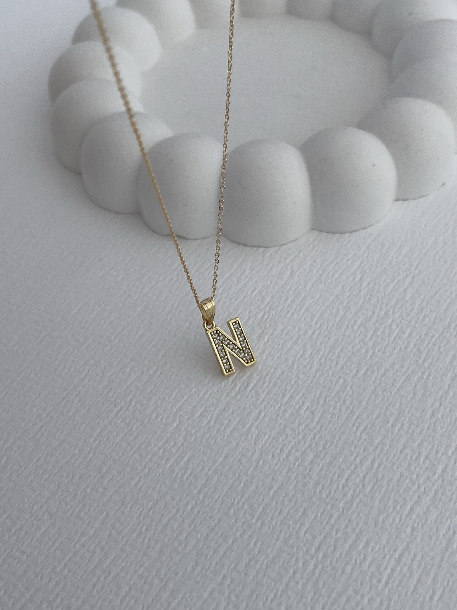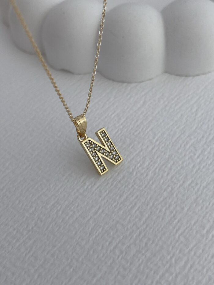 Özel Seri Zirkon Taşlı N Harf Minimal Gold Kolye