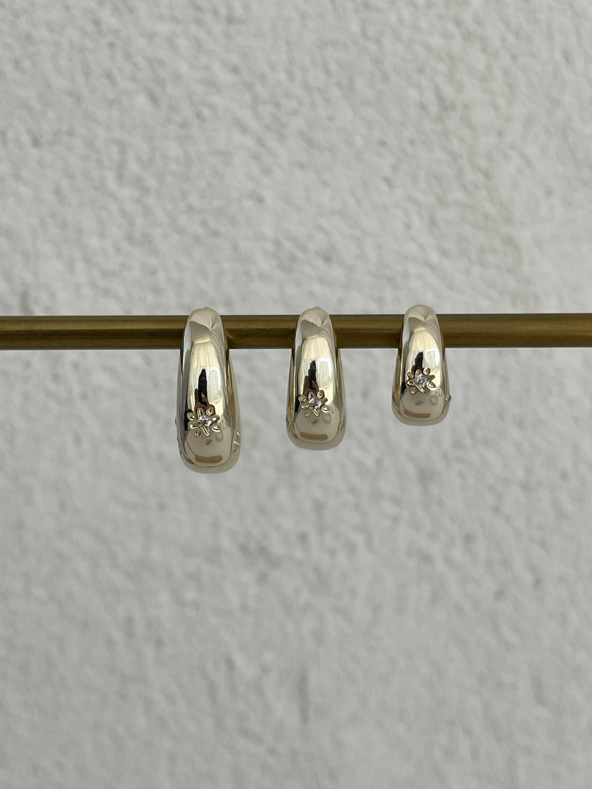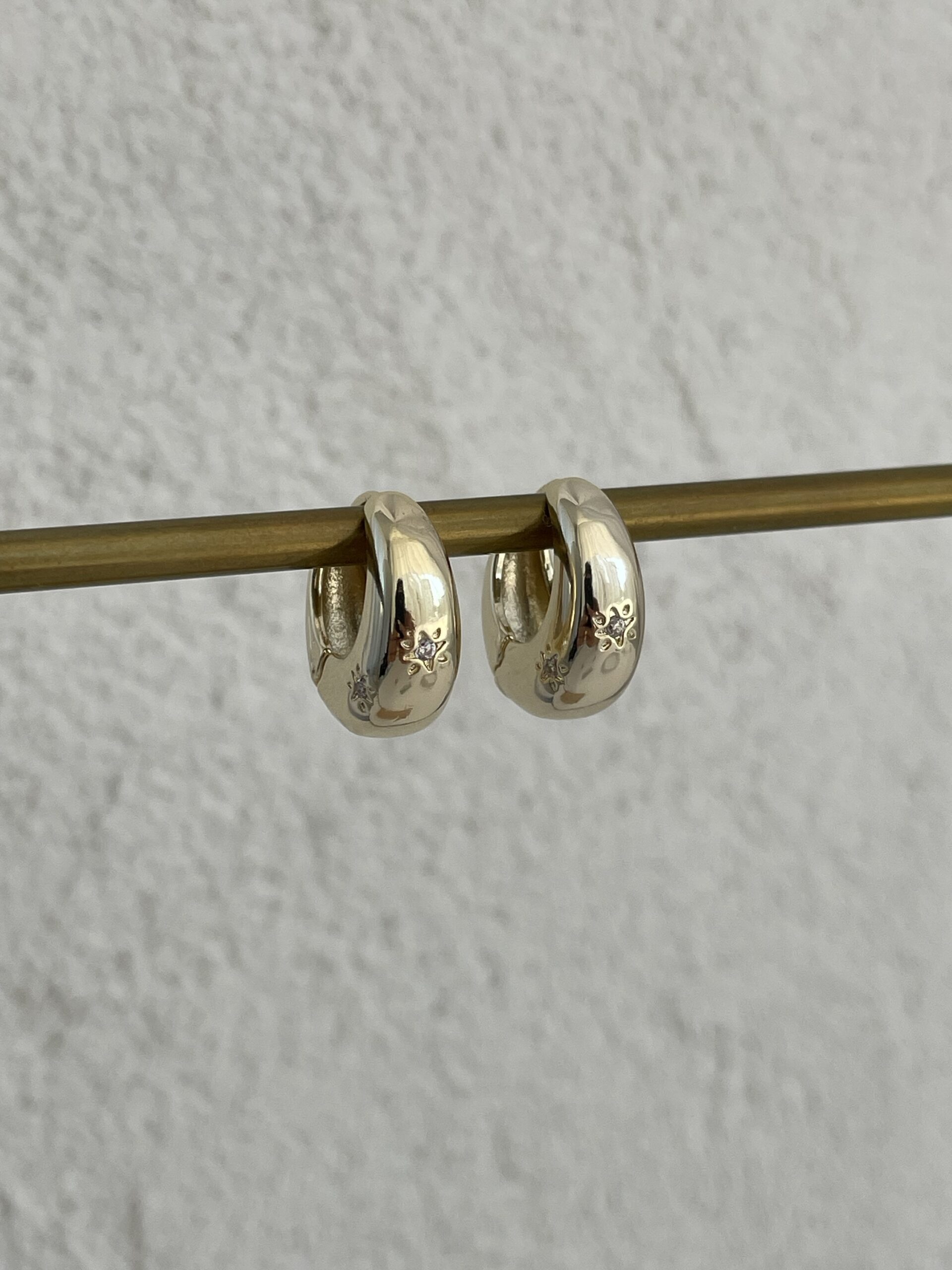 Özel Seri Zirkon Taşlı Orta Boy Gold Tombul Halka Küpe