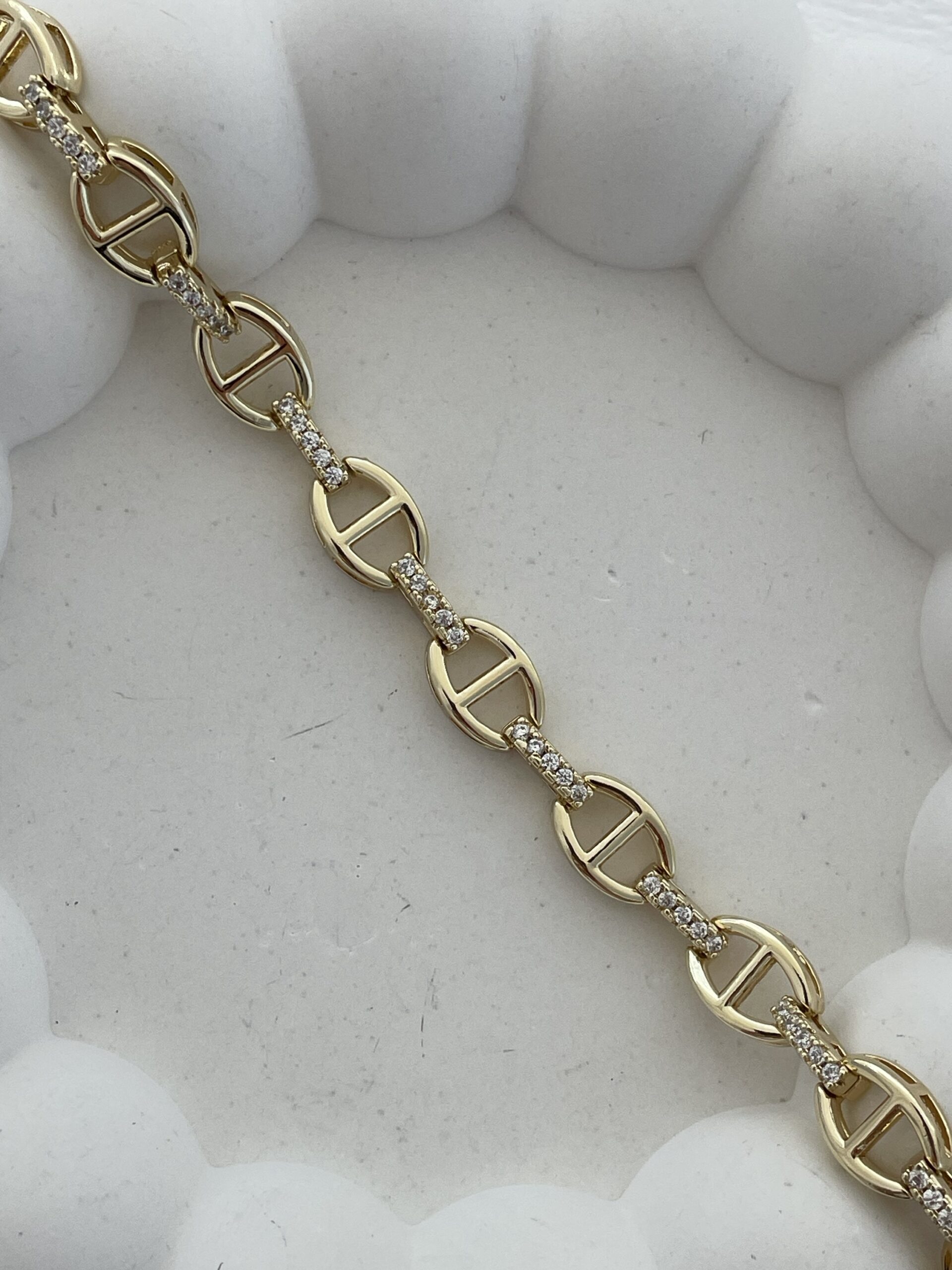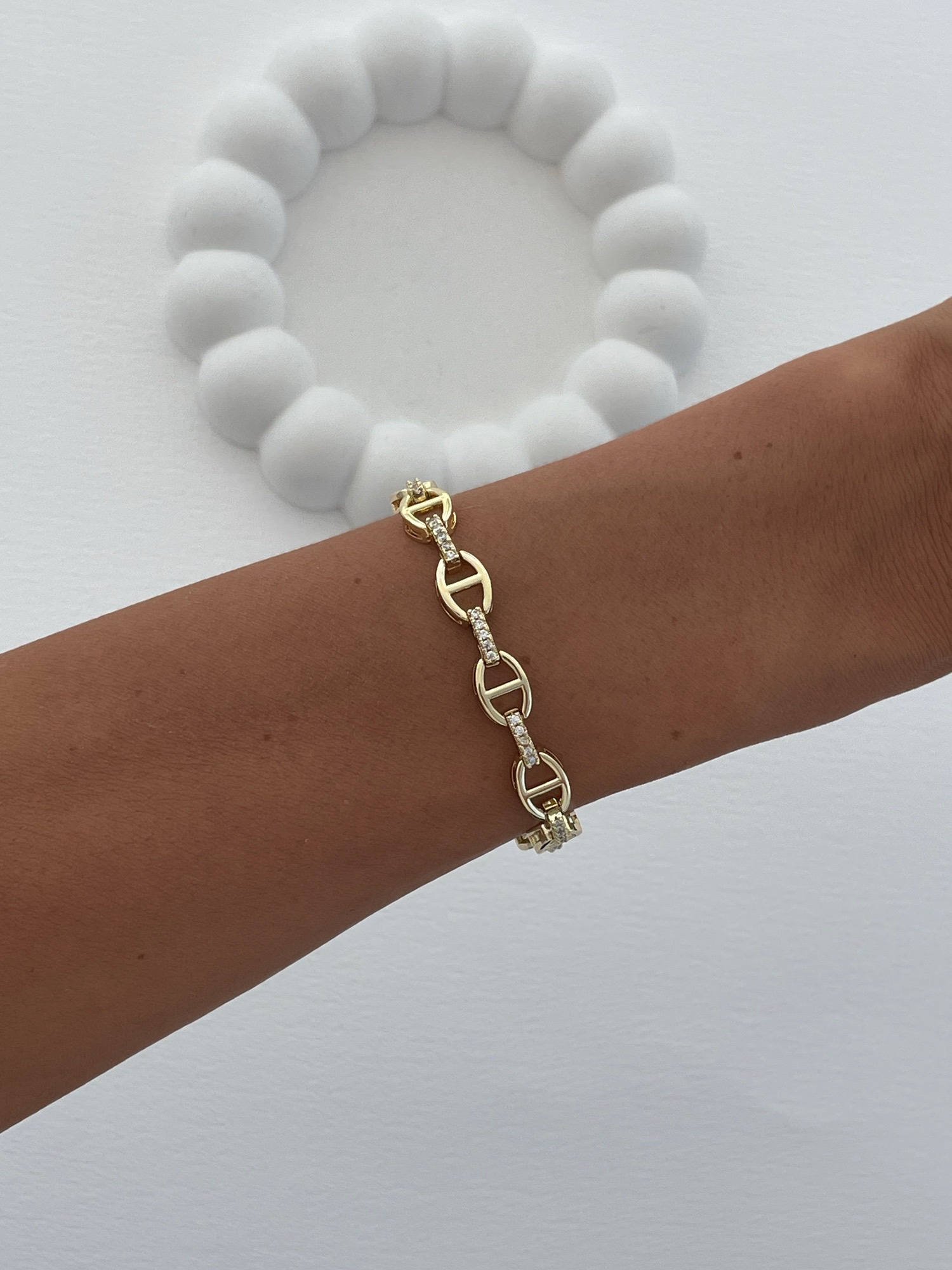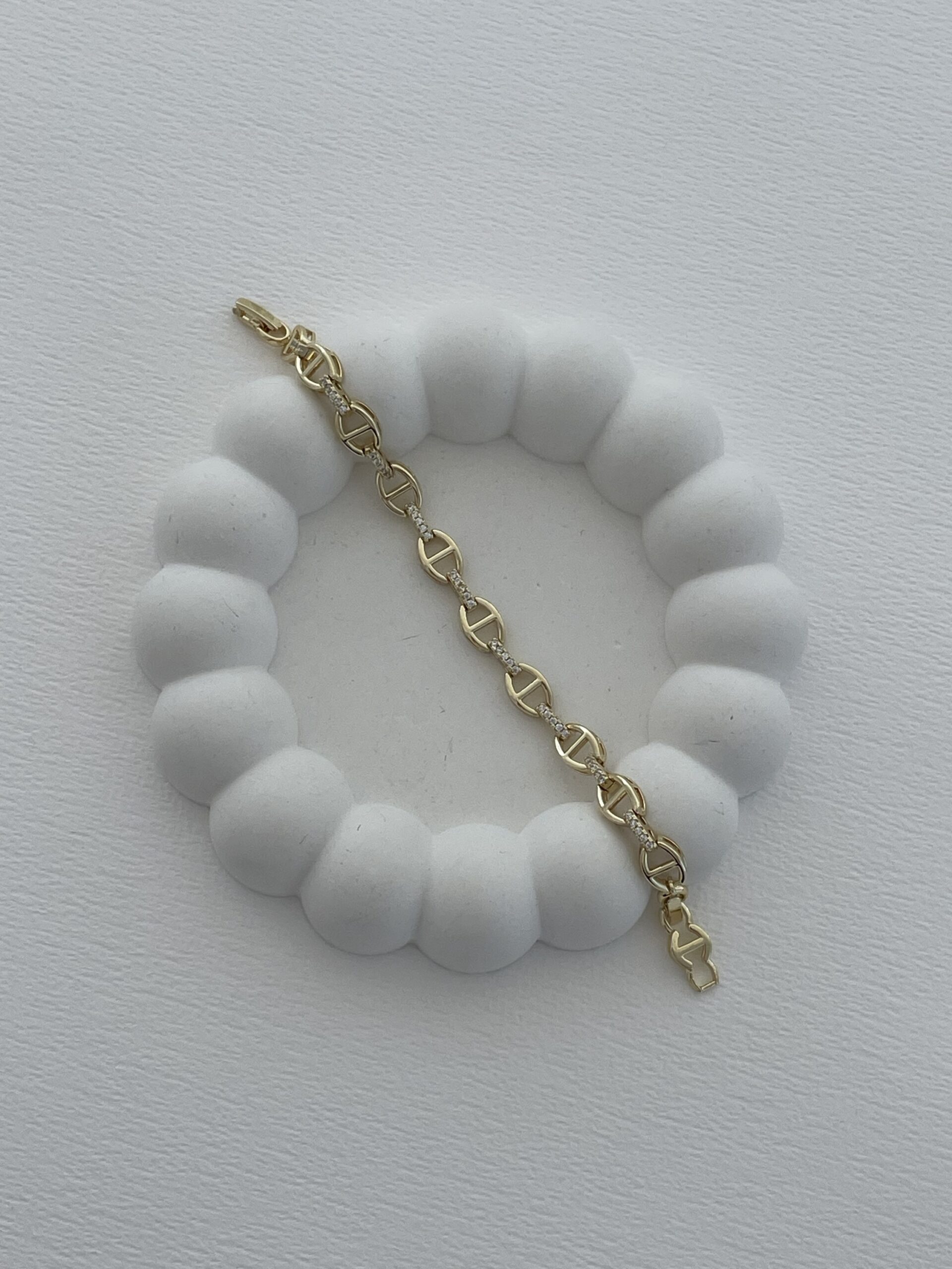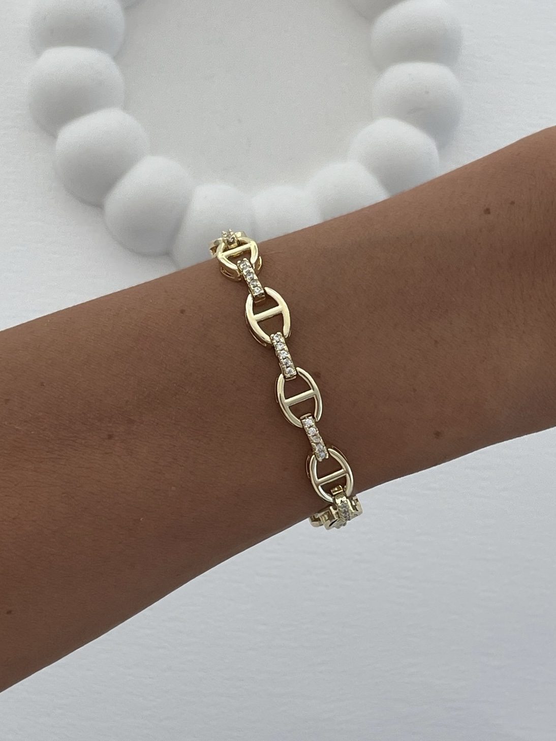 Özel Seri Zirkon Taşlı Oval Tasarım Gold Bileklik
