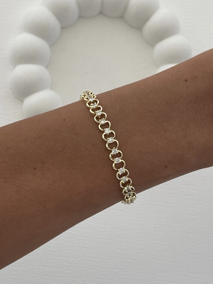 Özel Seri Zirkon Taşlı Oval Tasarım Gold Bileklik