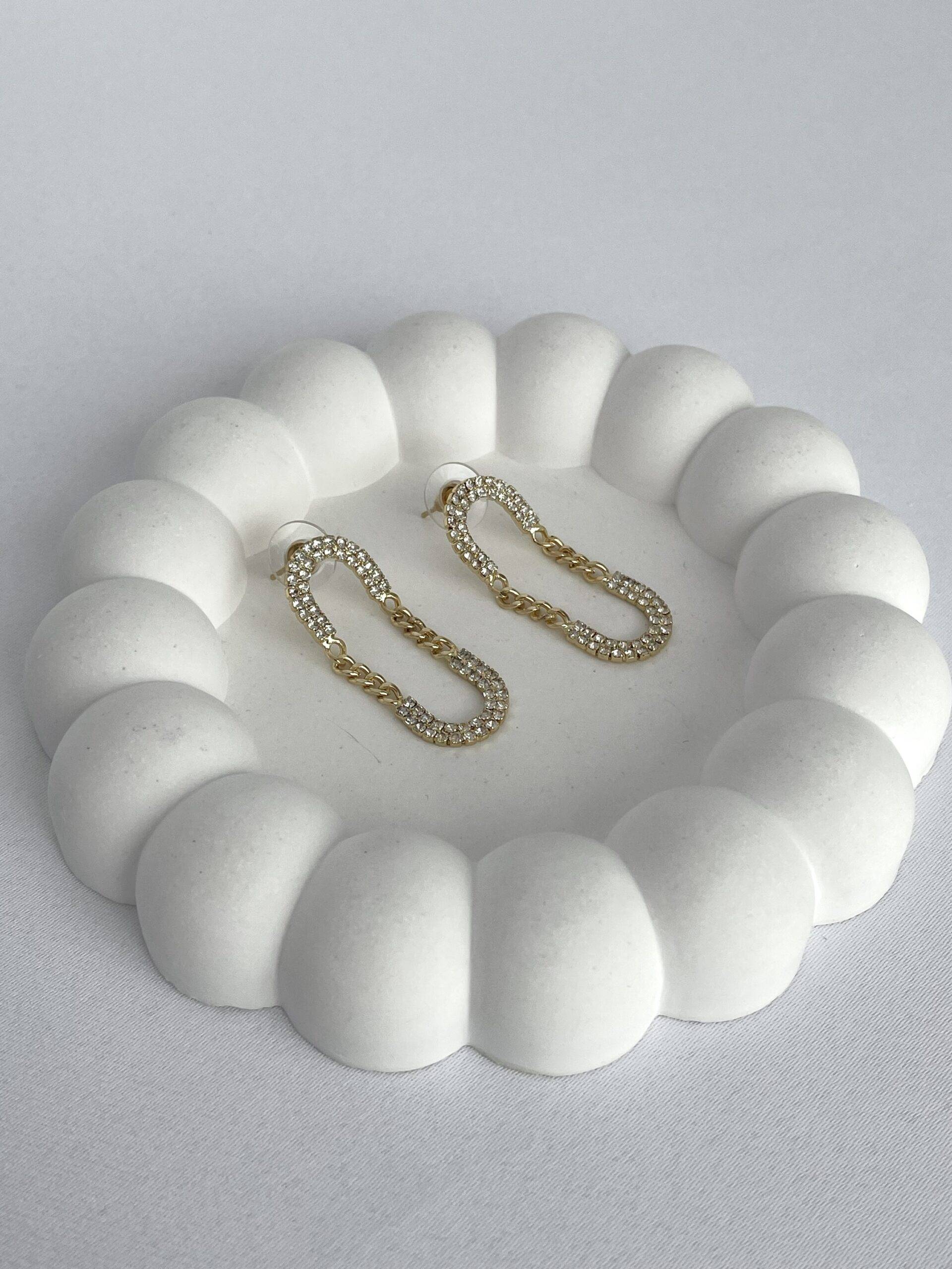 Özel Seri Zirkon Taşlı Oval Tasarım Gold Küpe
