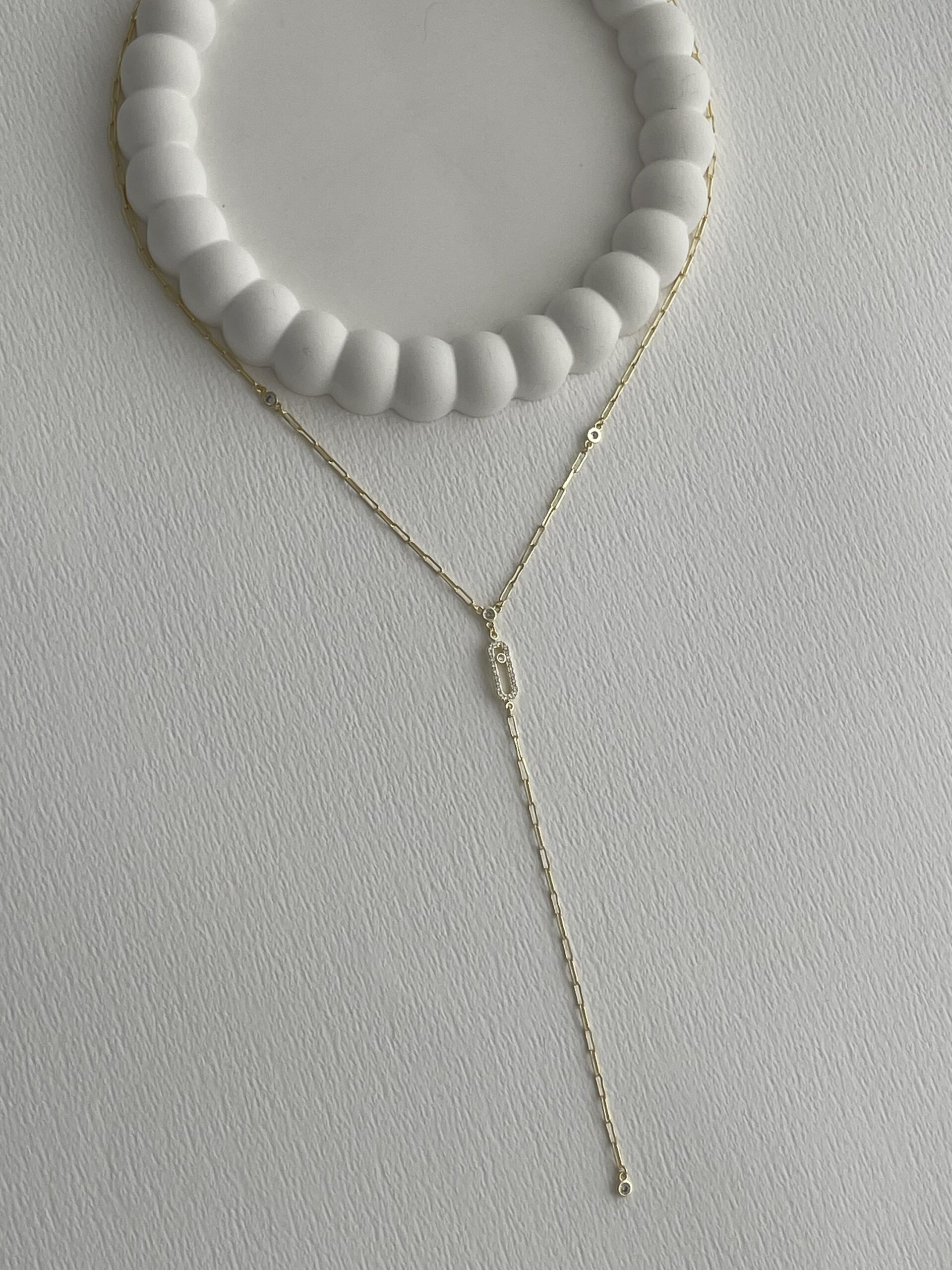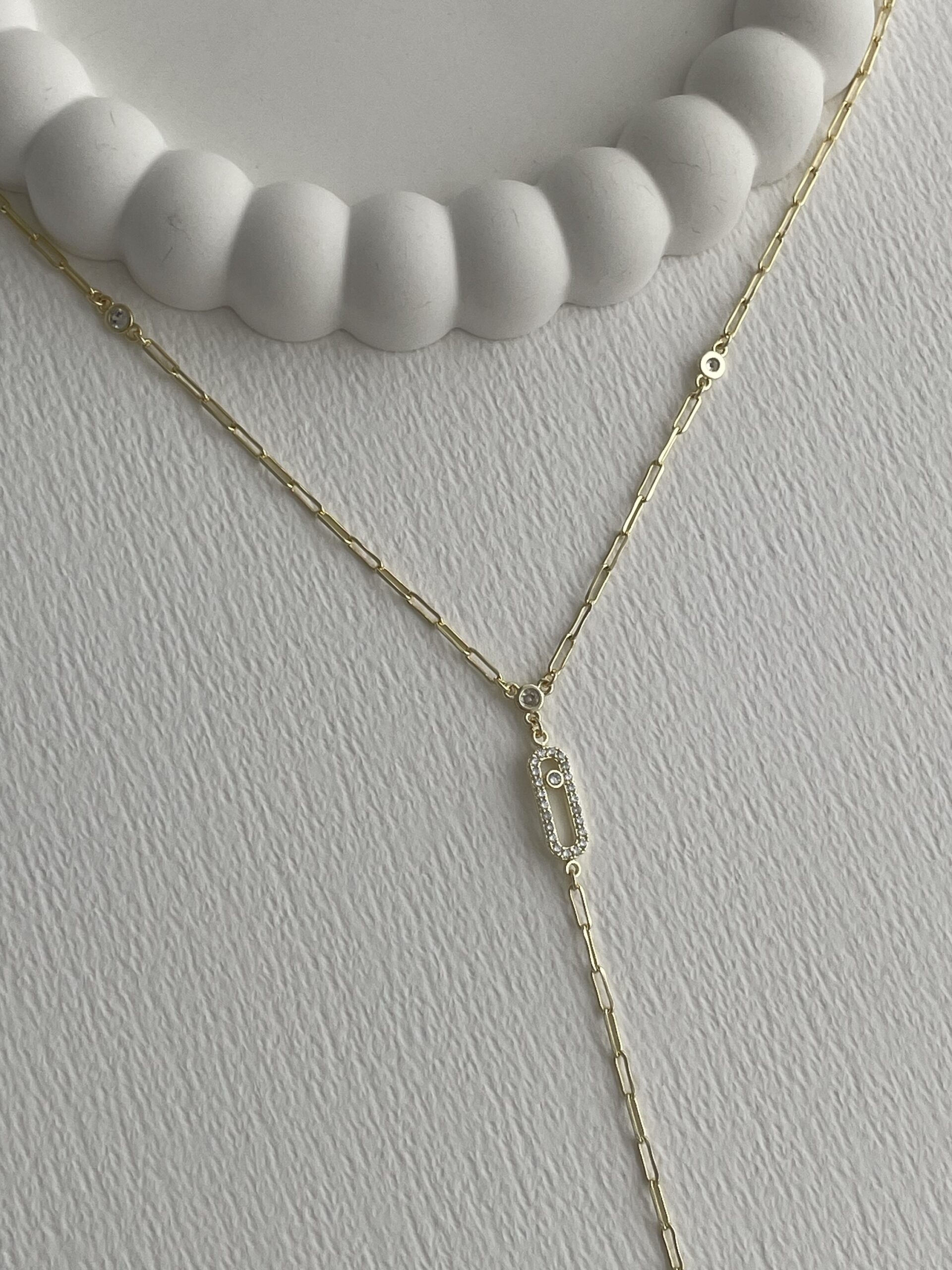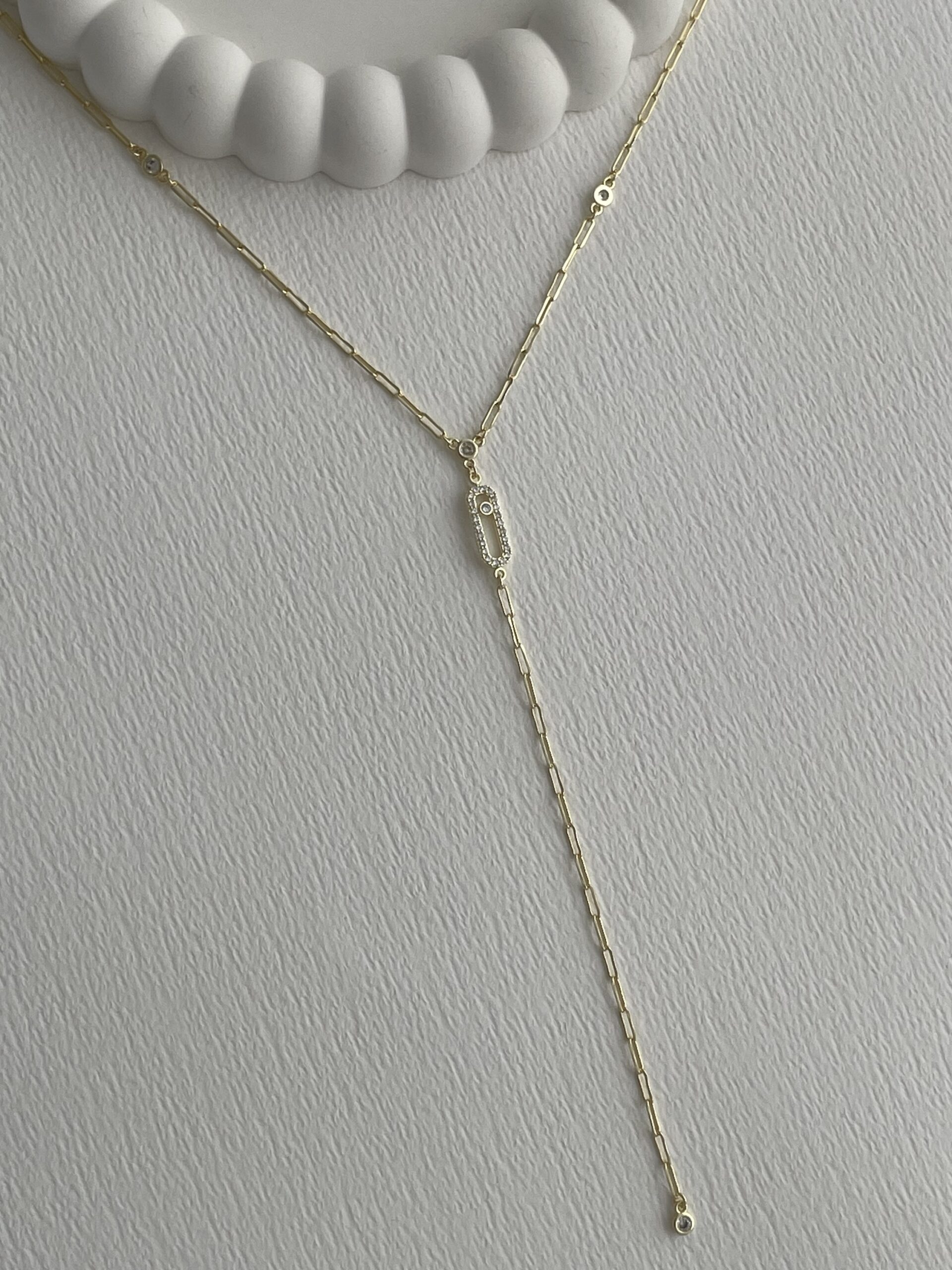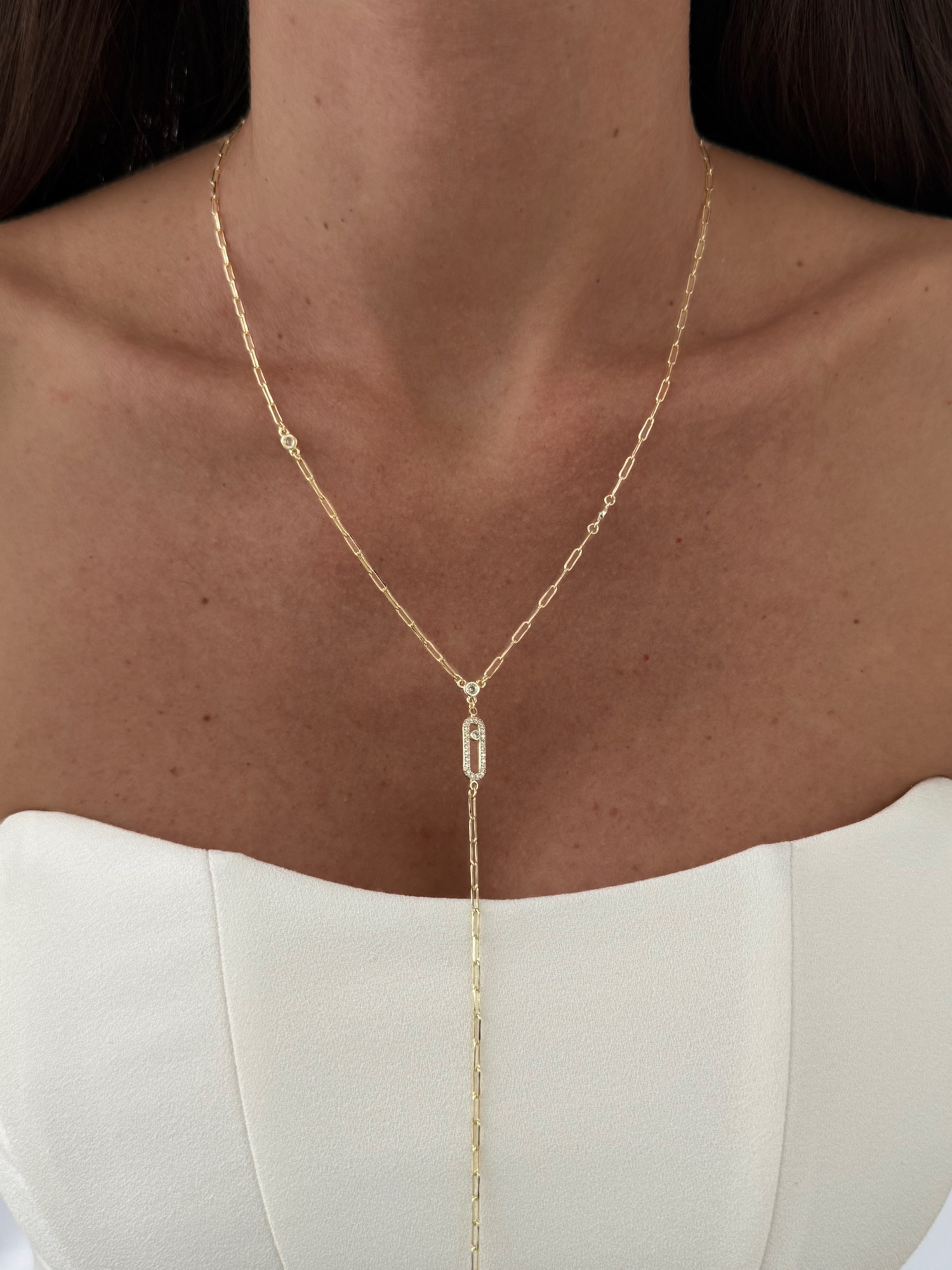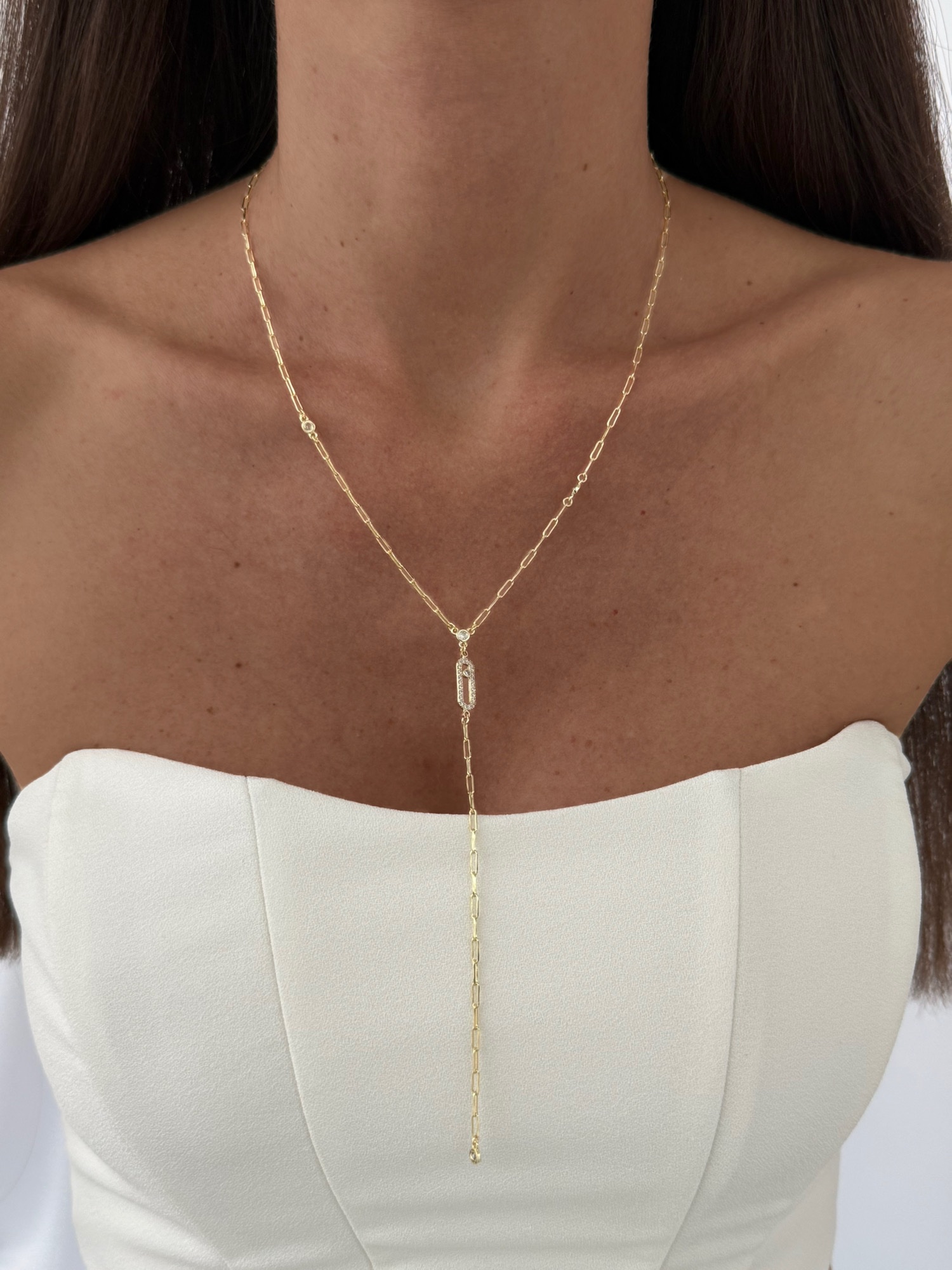 Özel Seri Zirkon Taşlı Oval Tasarım Gold Y Kolye