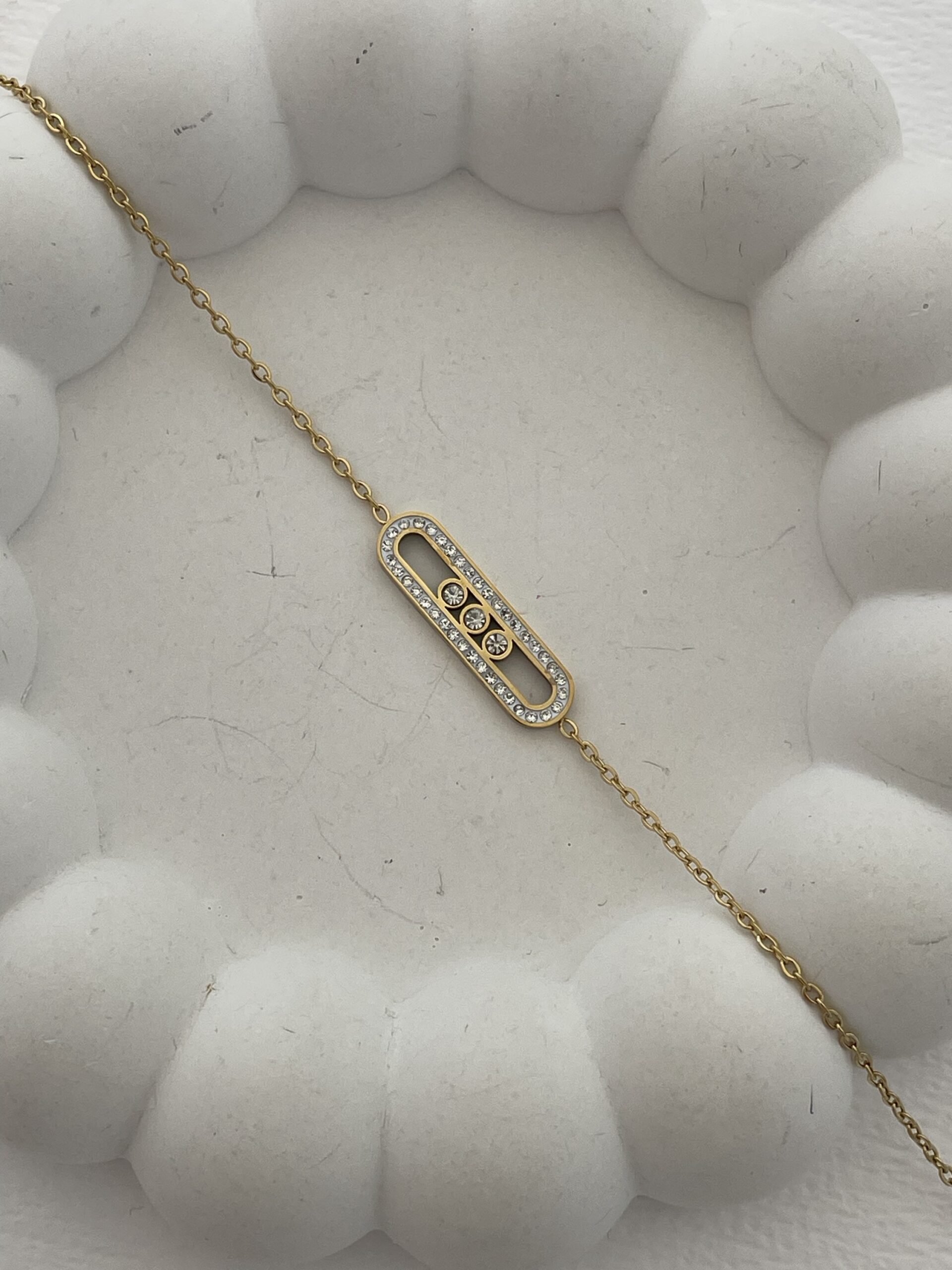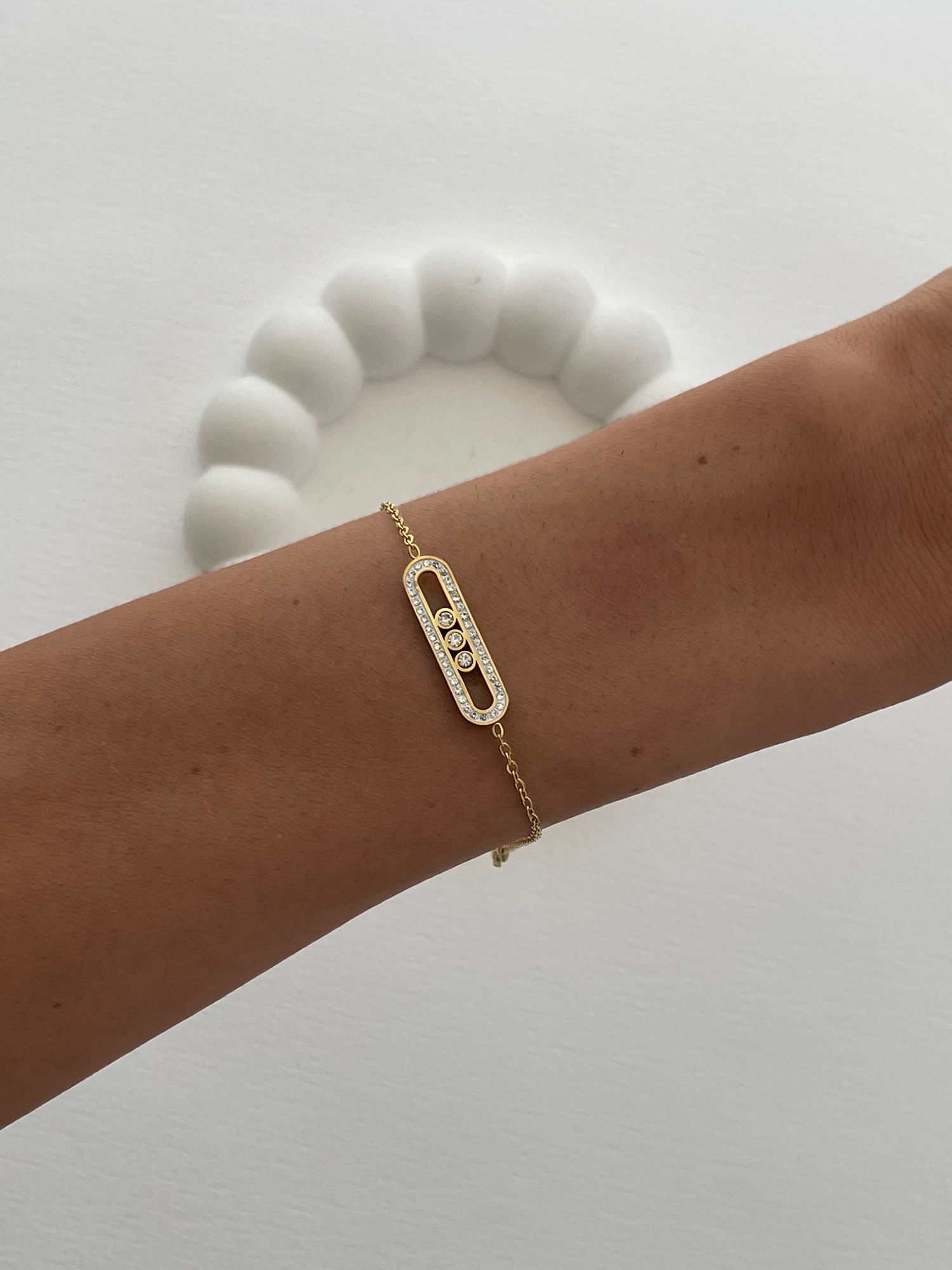 Özel Seri Zirkon Taşlı Oval Tasarım Marka Model Gold Bileklik
