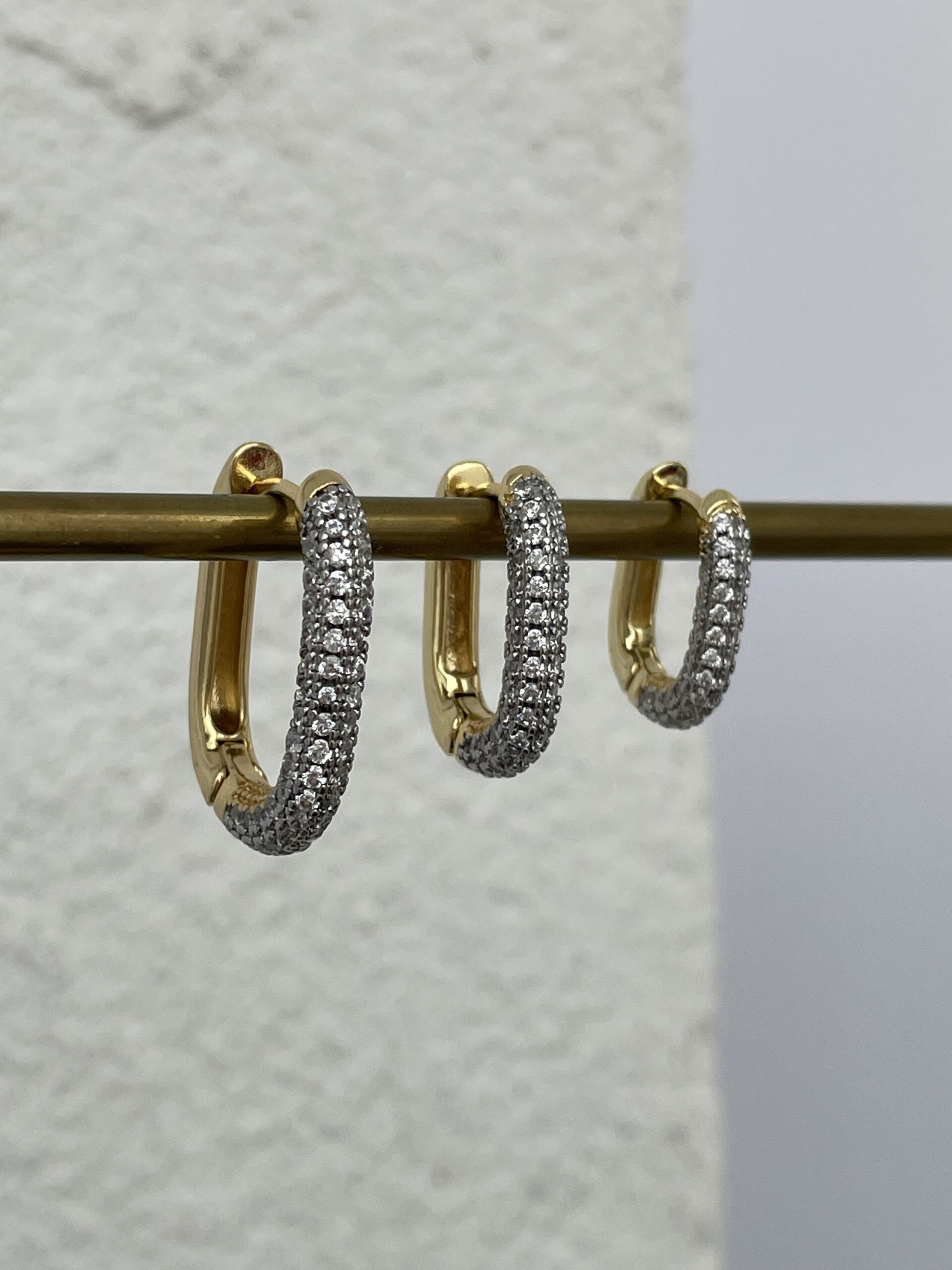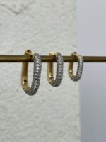 Özel Seri Zirkon Taşlı Oval Üçlü Halka Gold Küpe Seti