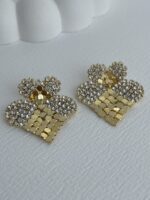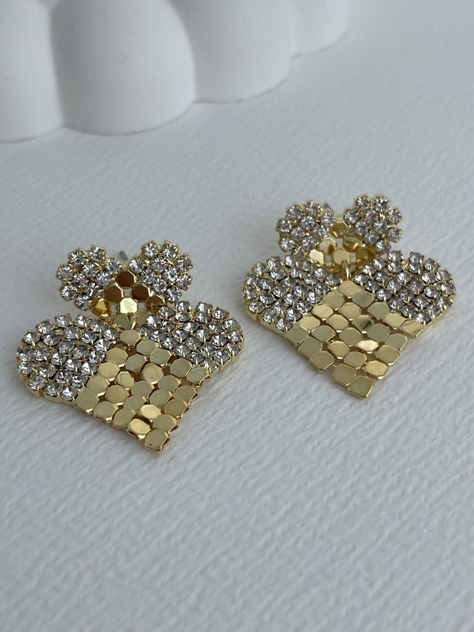 Özel Seri Zirkon Taşlı Pul Detay Gold Kalp Küpe