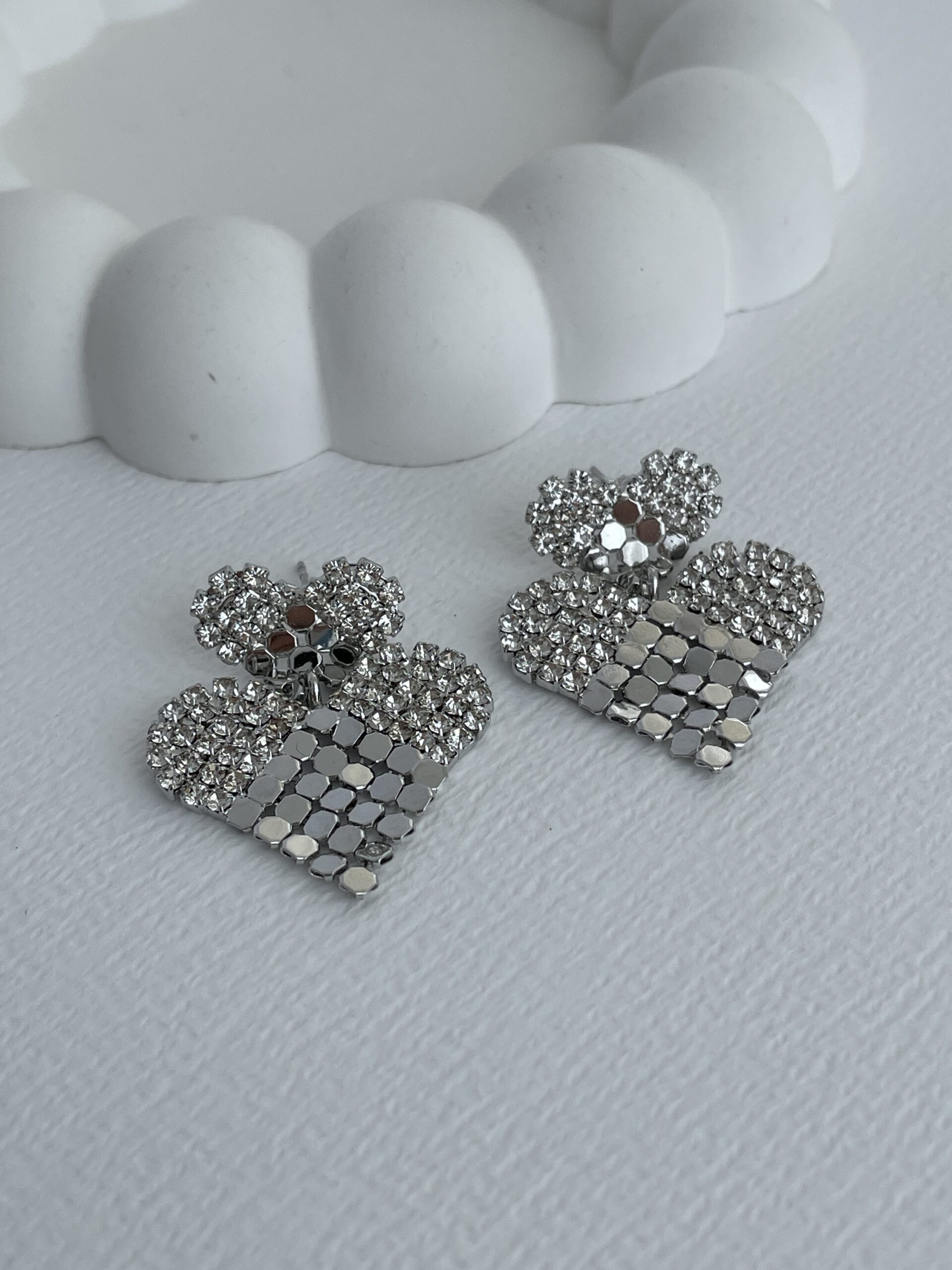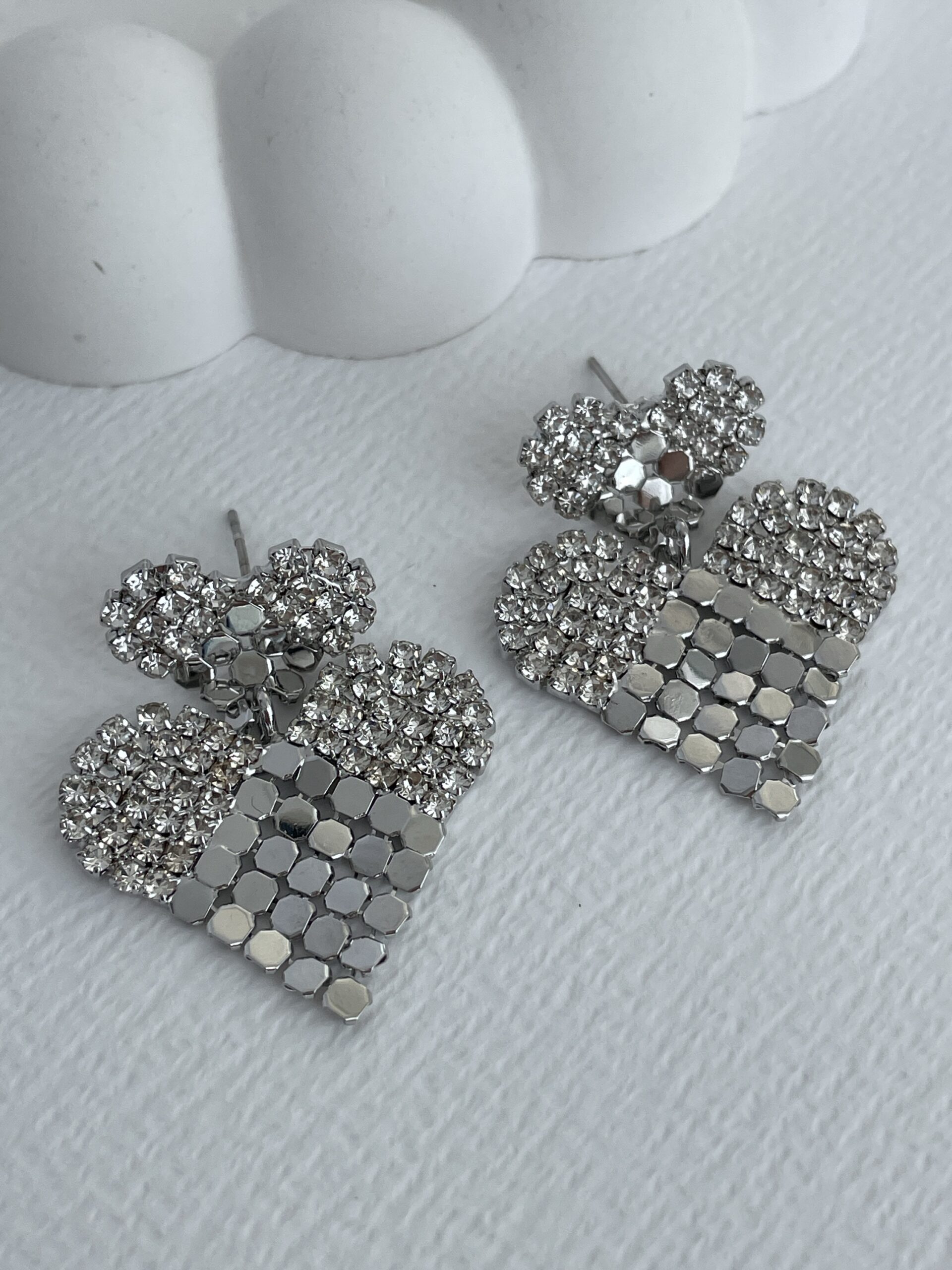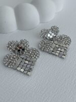 Özel Seri Zirkon Taşlı Pul Detay Gümüş Kalp Küpe