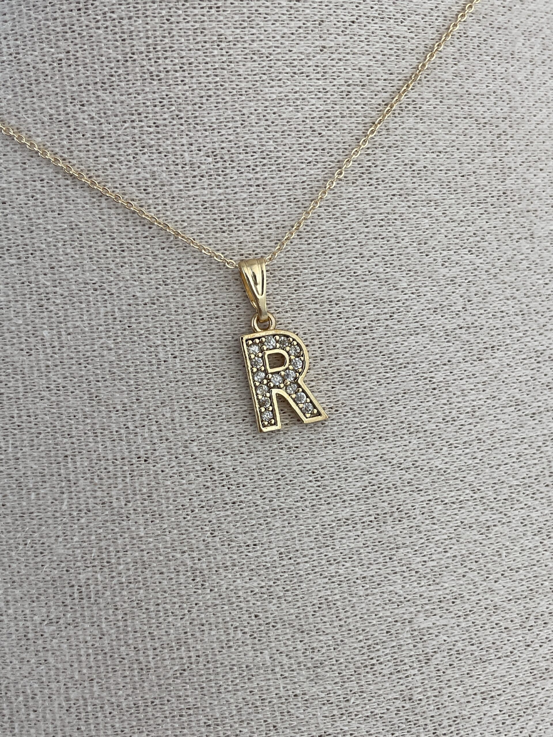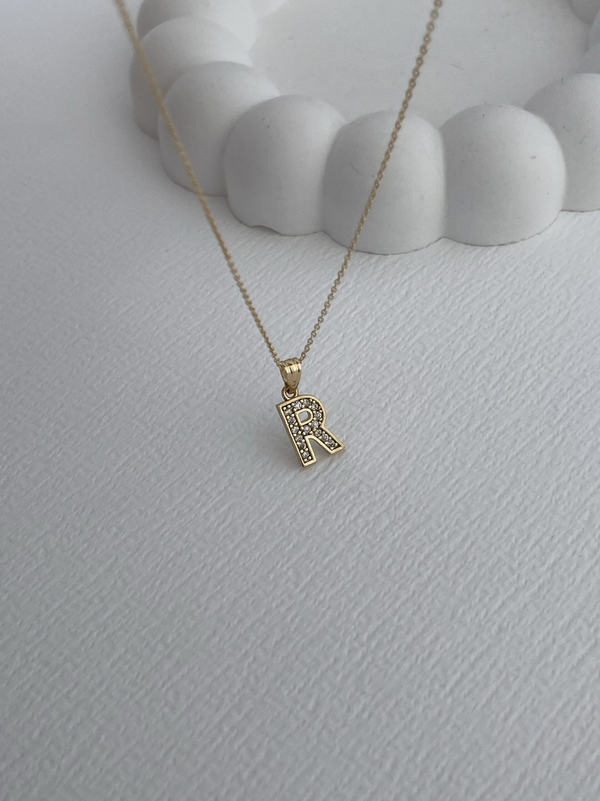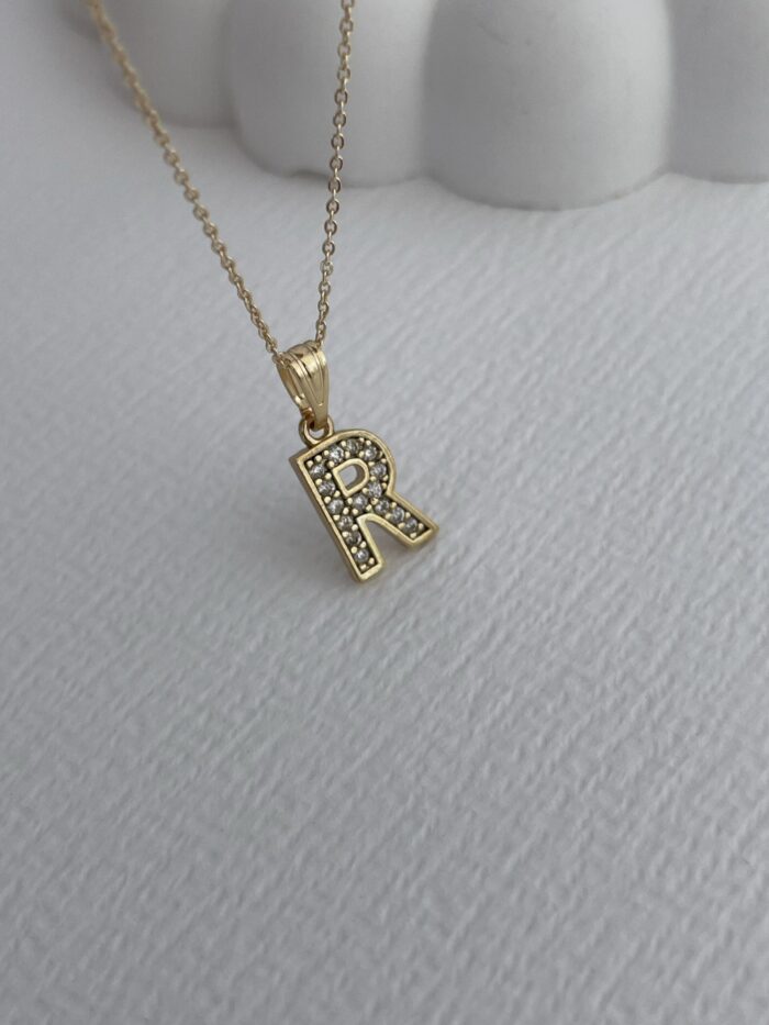 Özel Seri Zirkon Taşlı R Harf Minimal Gold Kolye