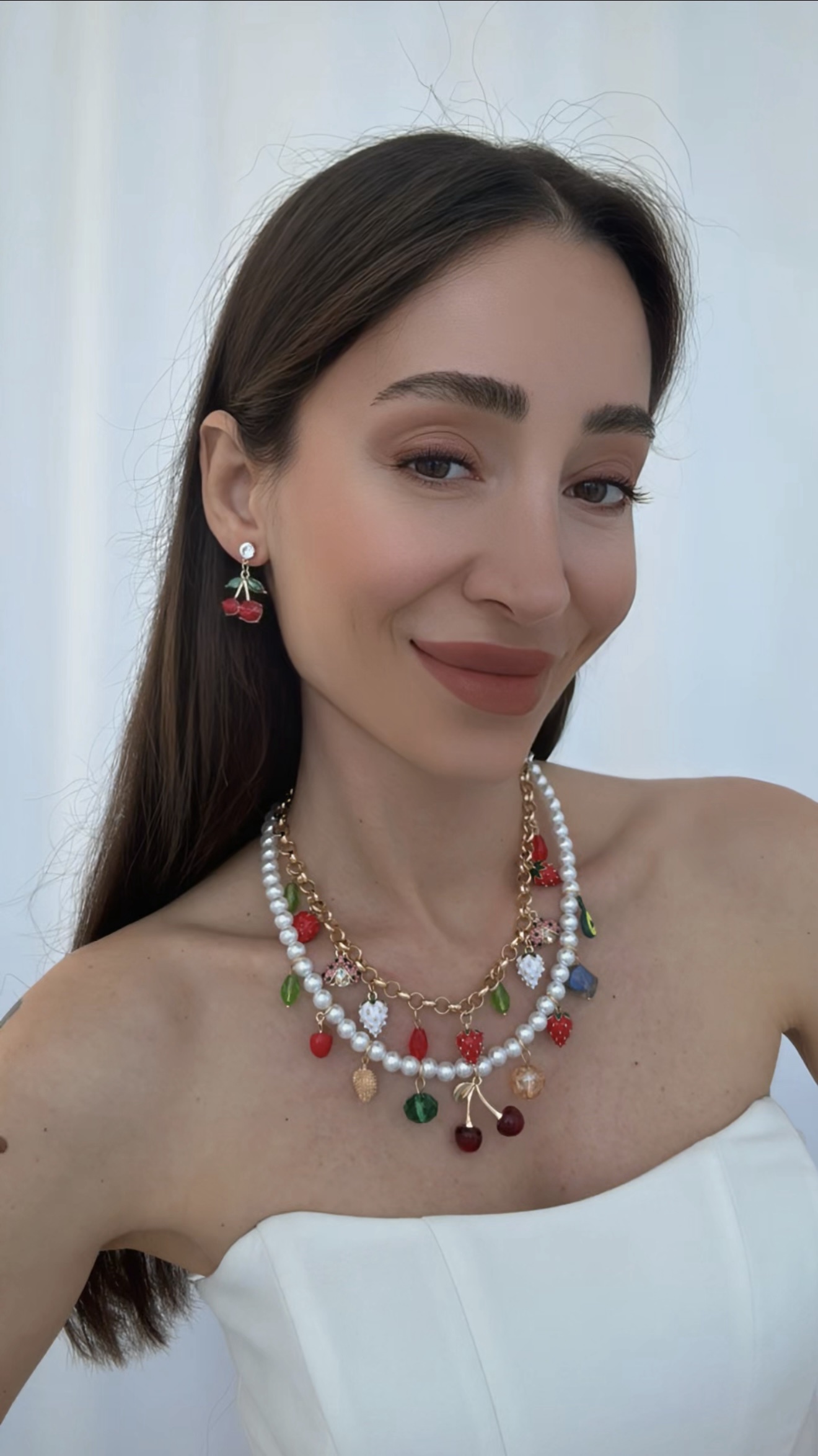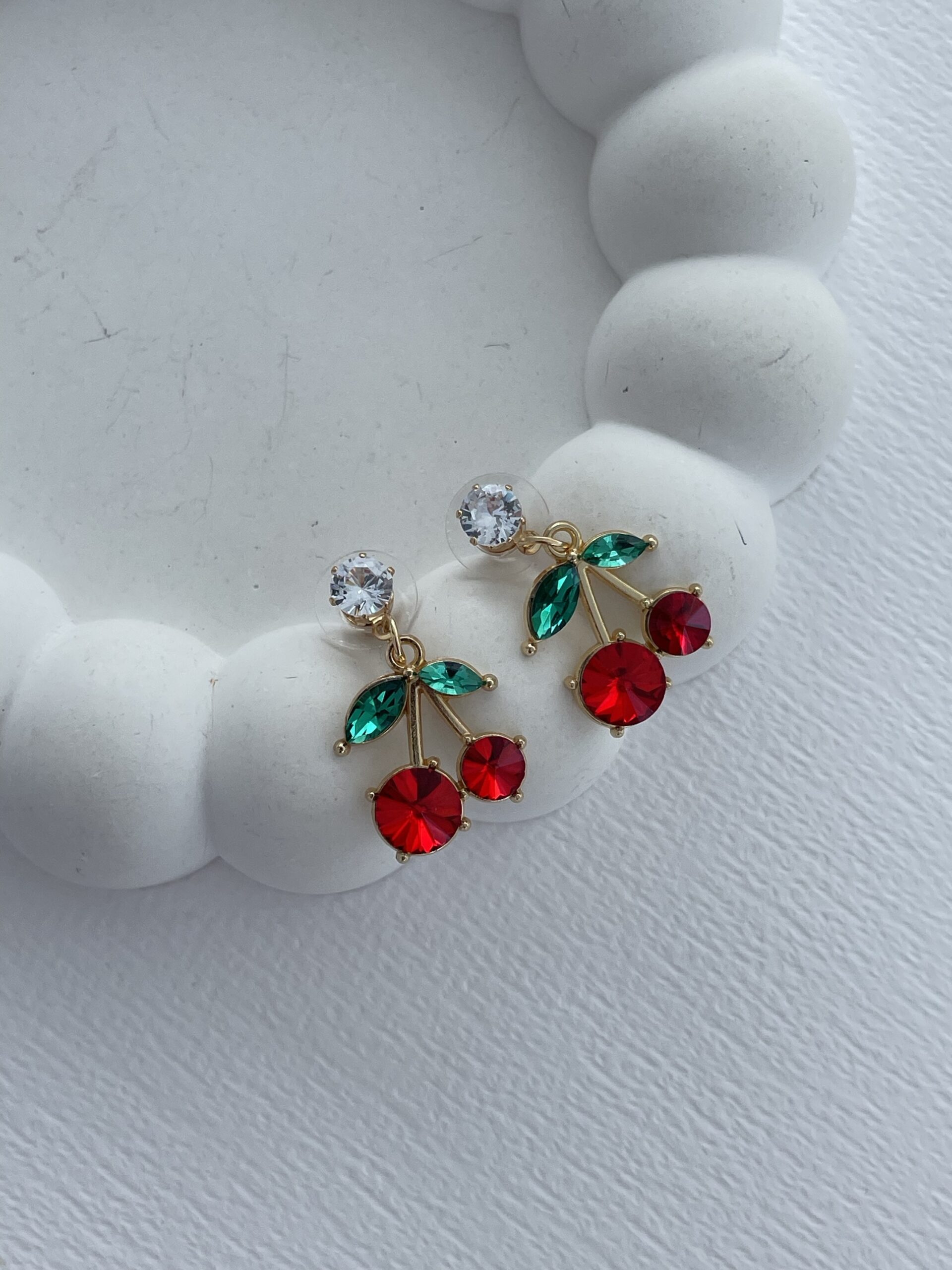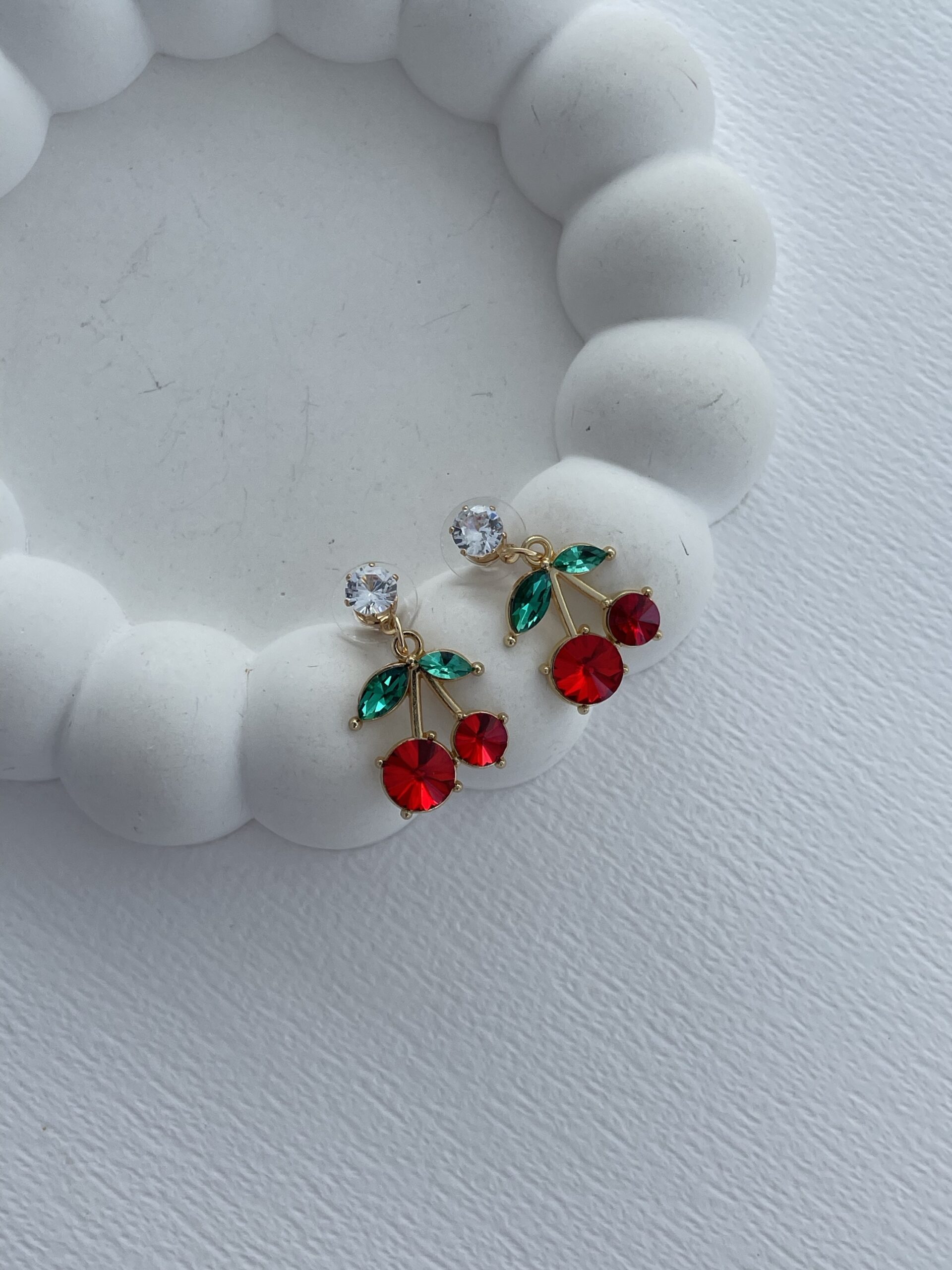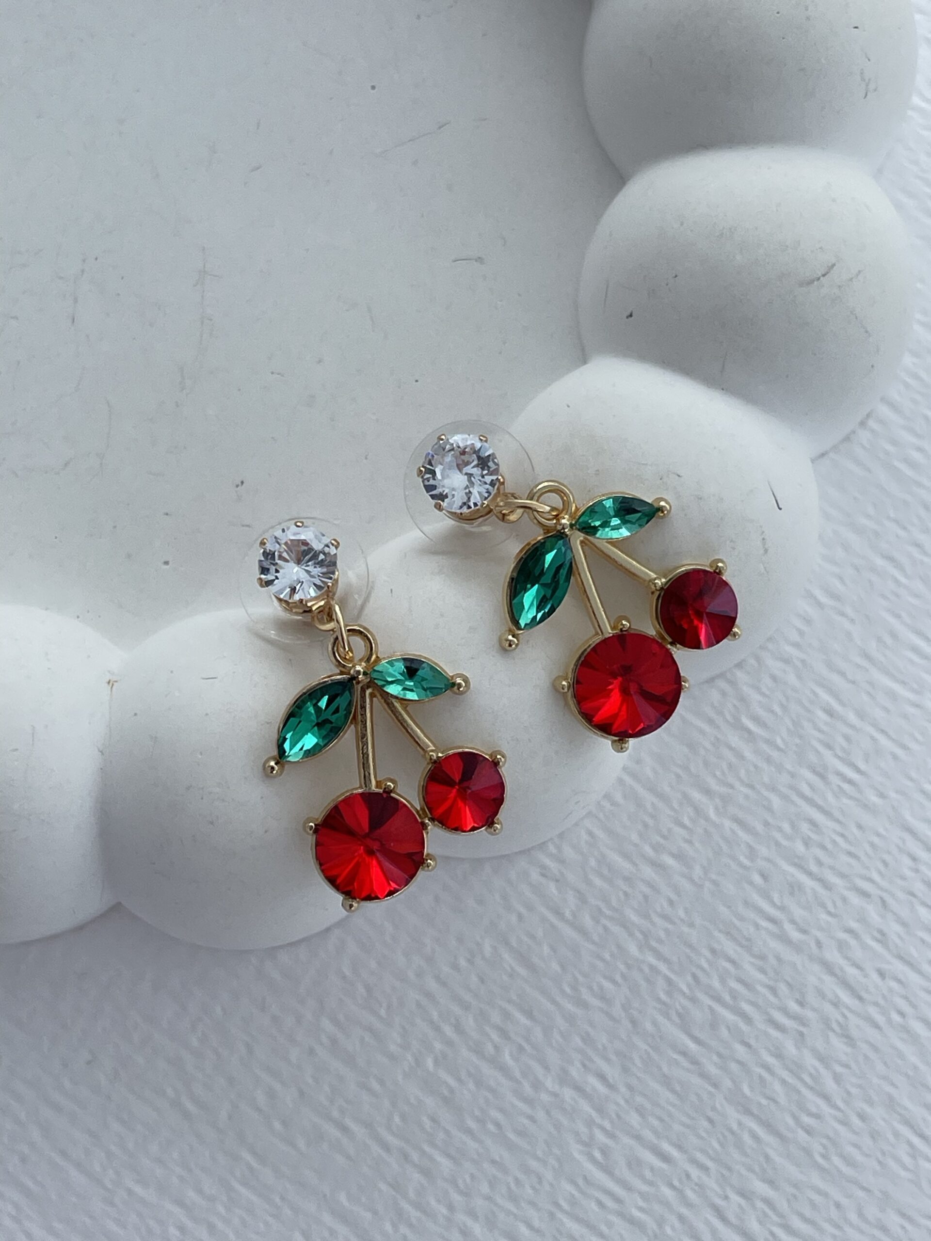 Özel Seri Zirkon Taşlı Renkli Kiraz Tasarım Gold Küpe