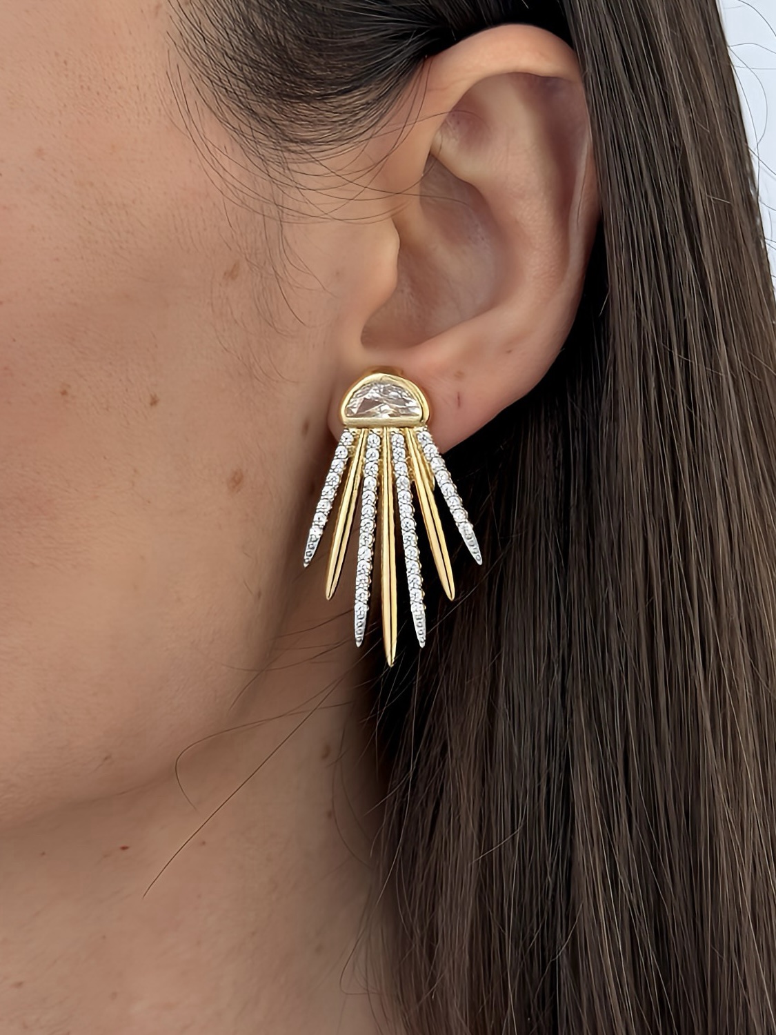 Özel Seri Zirkon Taşlı Saçak Tasarım Gold Küpe