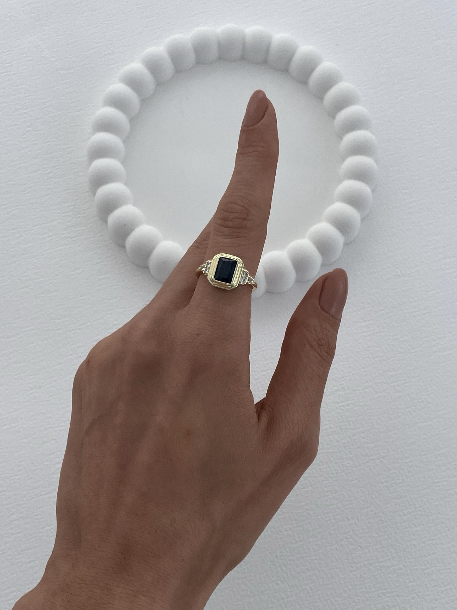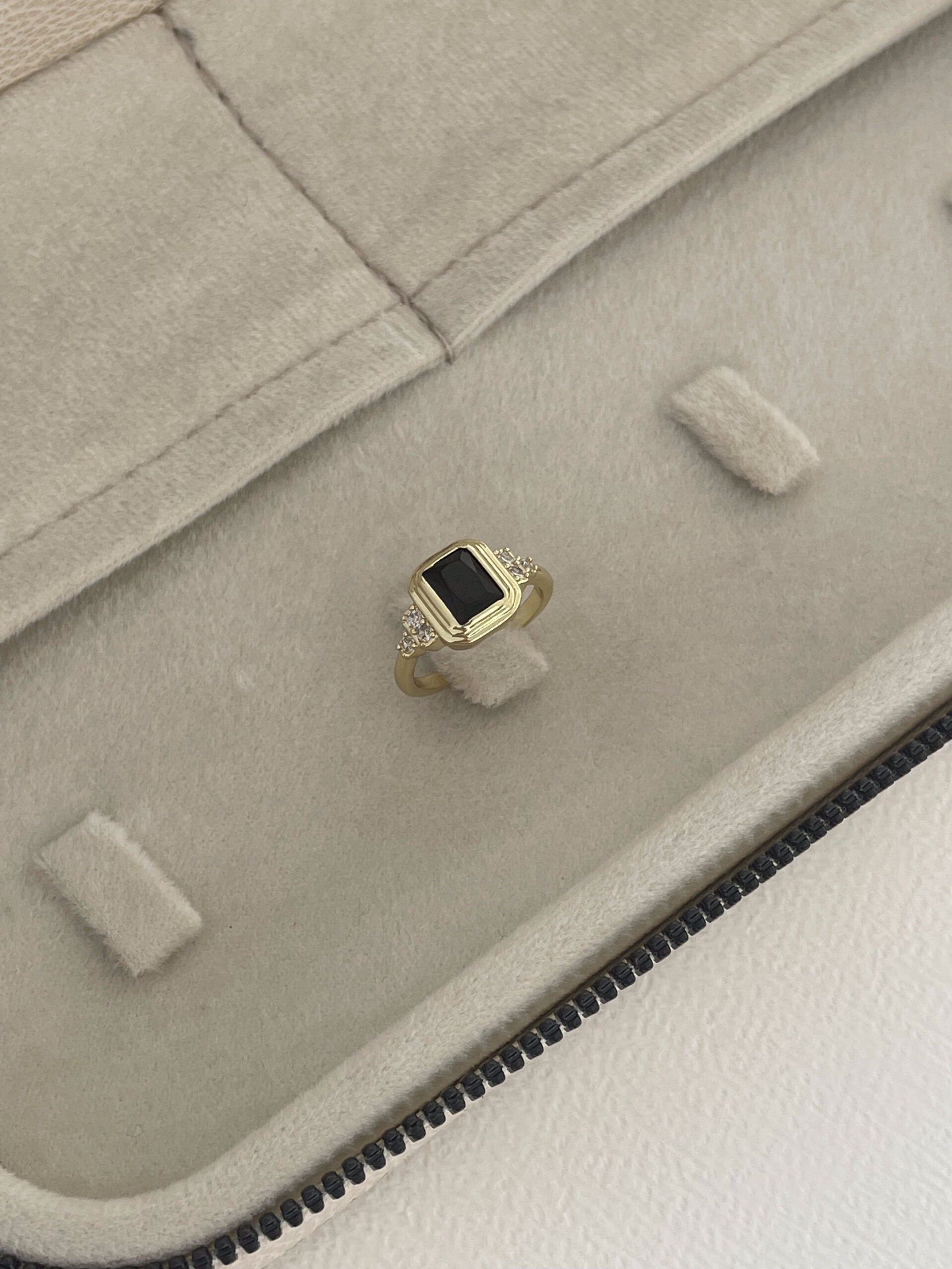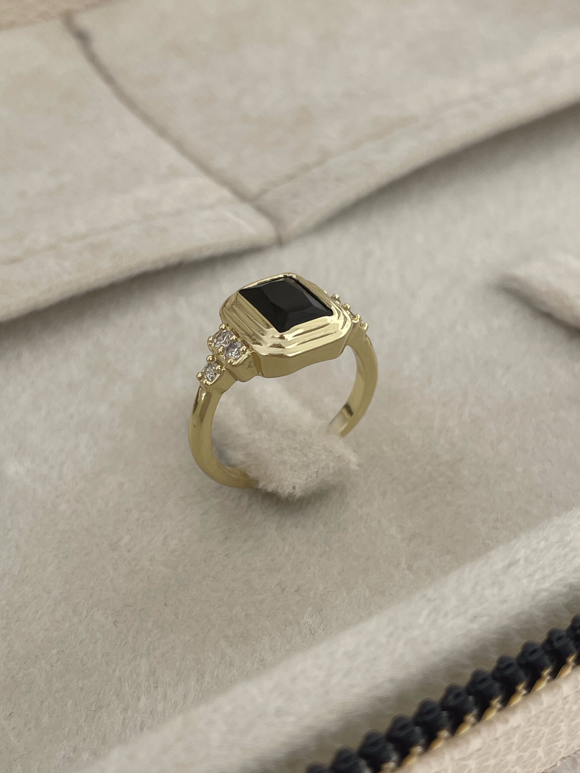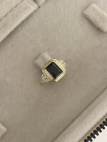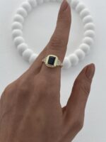 Özel Seri Zirkon Taşlı Siyah Baget Taş Tasarım Ayarlanabilir Gold Yüzük
