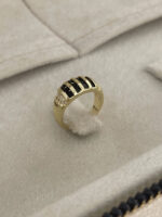 Özel Seri Zirkon Taşlı Siyah Mineli Geometrik Tasarım Ayarlanabilir Gold Yüzük