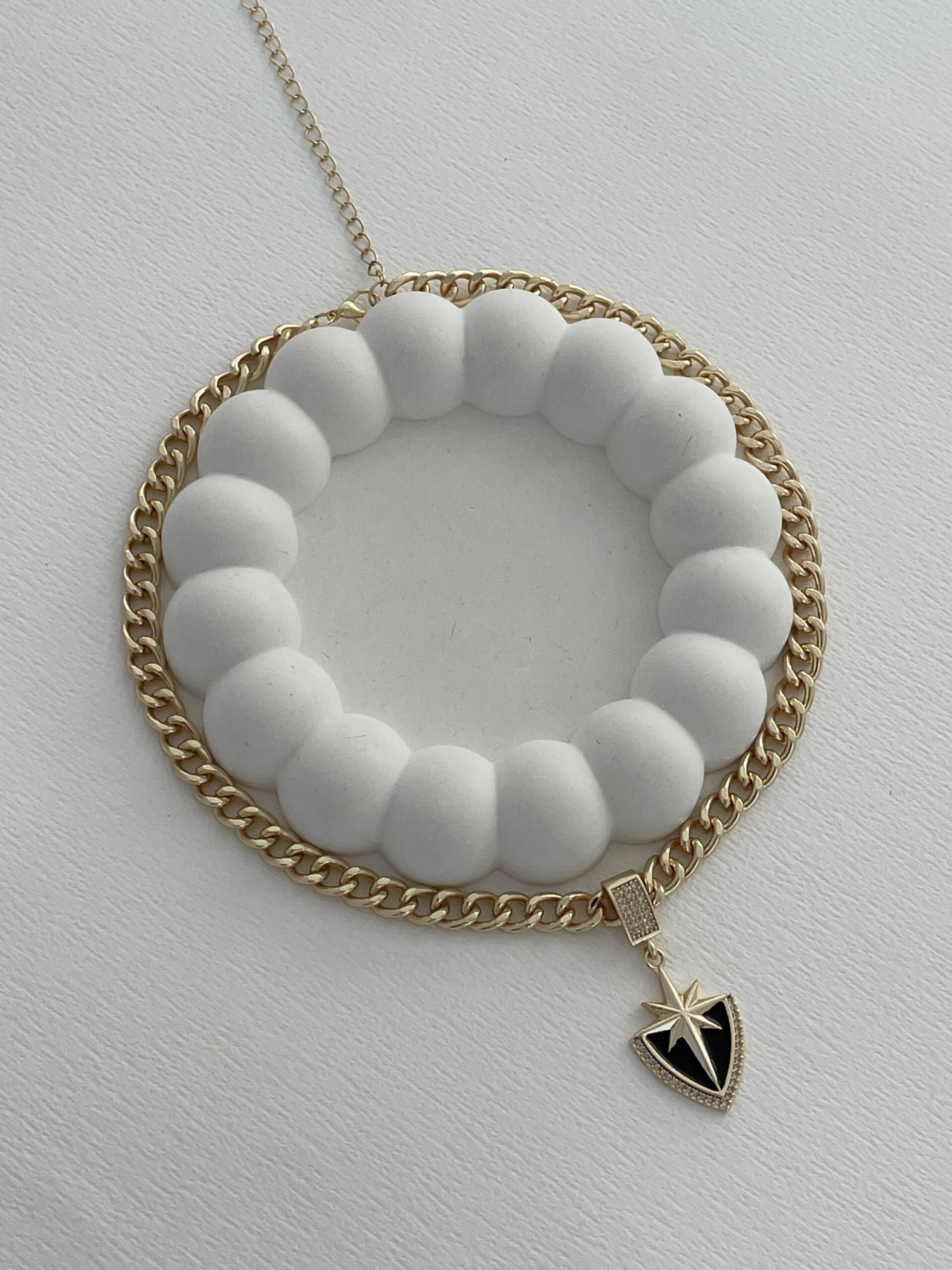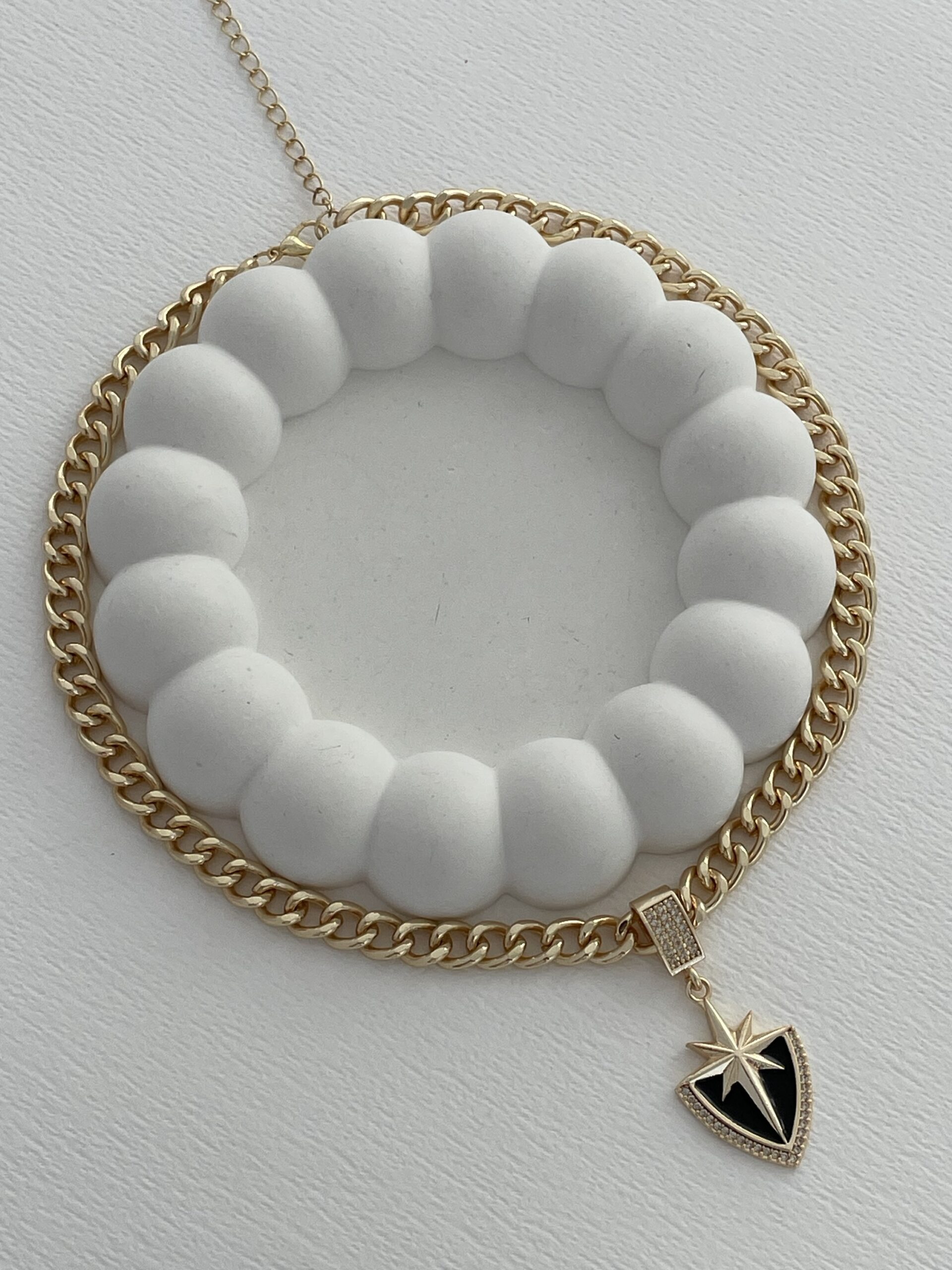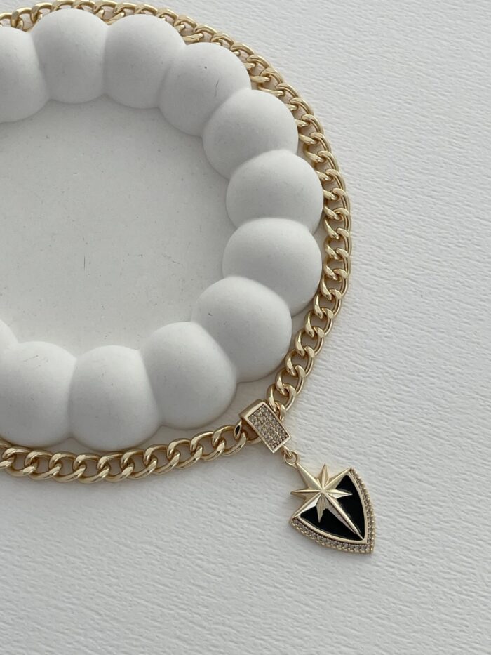 Özel Seri Zirkon Taşlı Siyah Mineli Gold Kutup Yıldızı Kolye