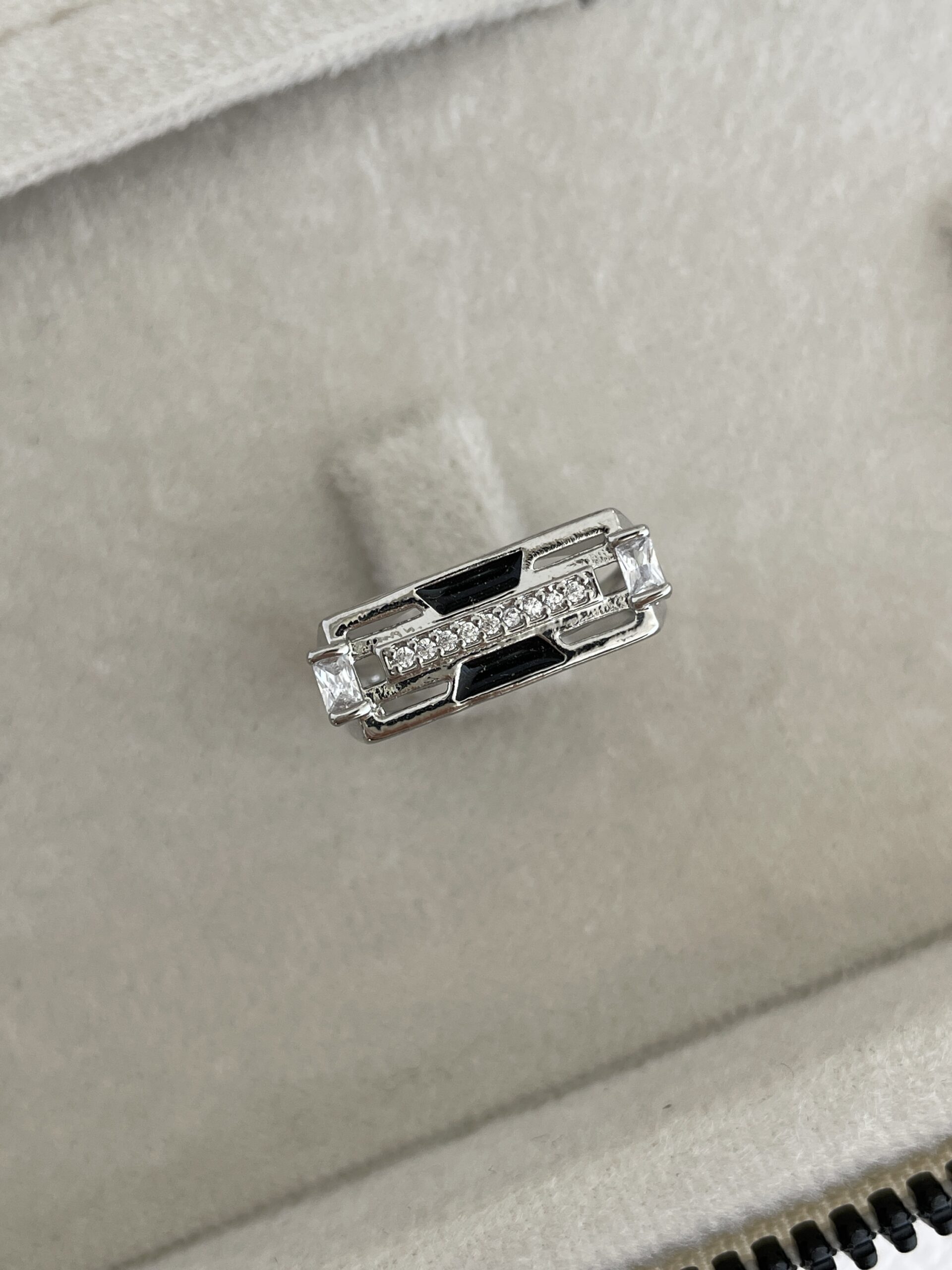 Özel Seri Zirkon Taşlı Siyah Mineli İnce Gümüş Şövalye Yüzük