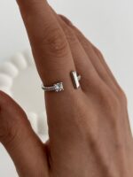 Özel Seri Zirkon Taşlı T Tasarım Gümüş Ayarlanabilir Yüzük