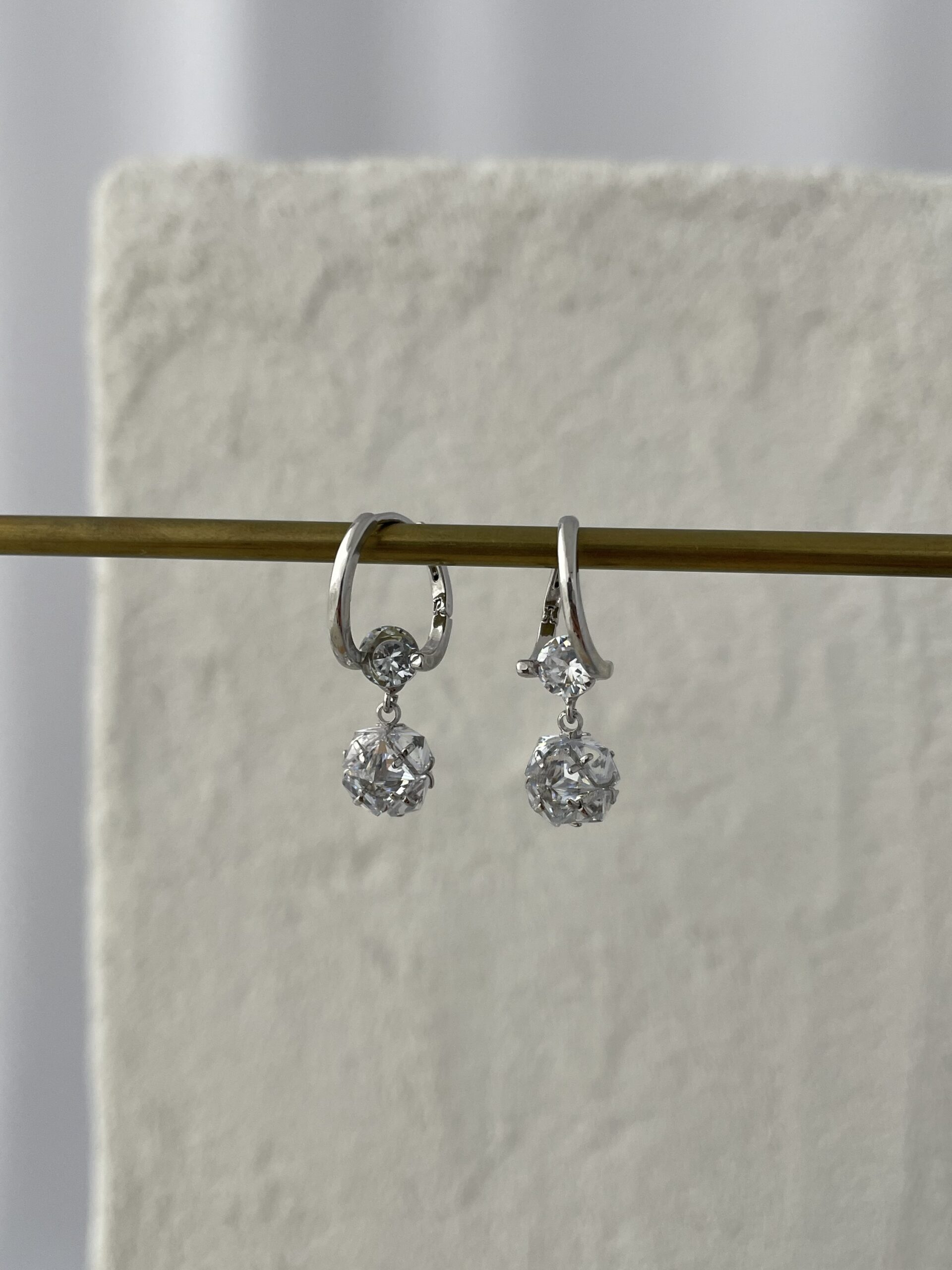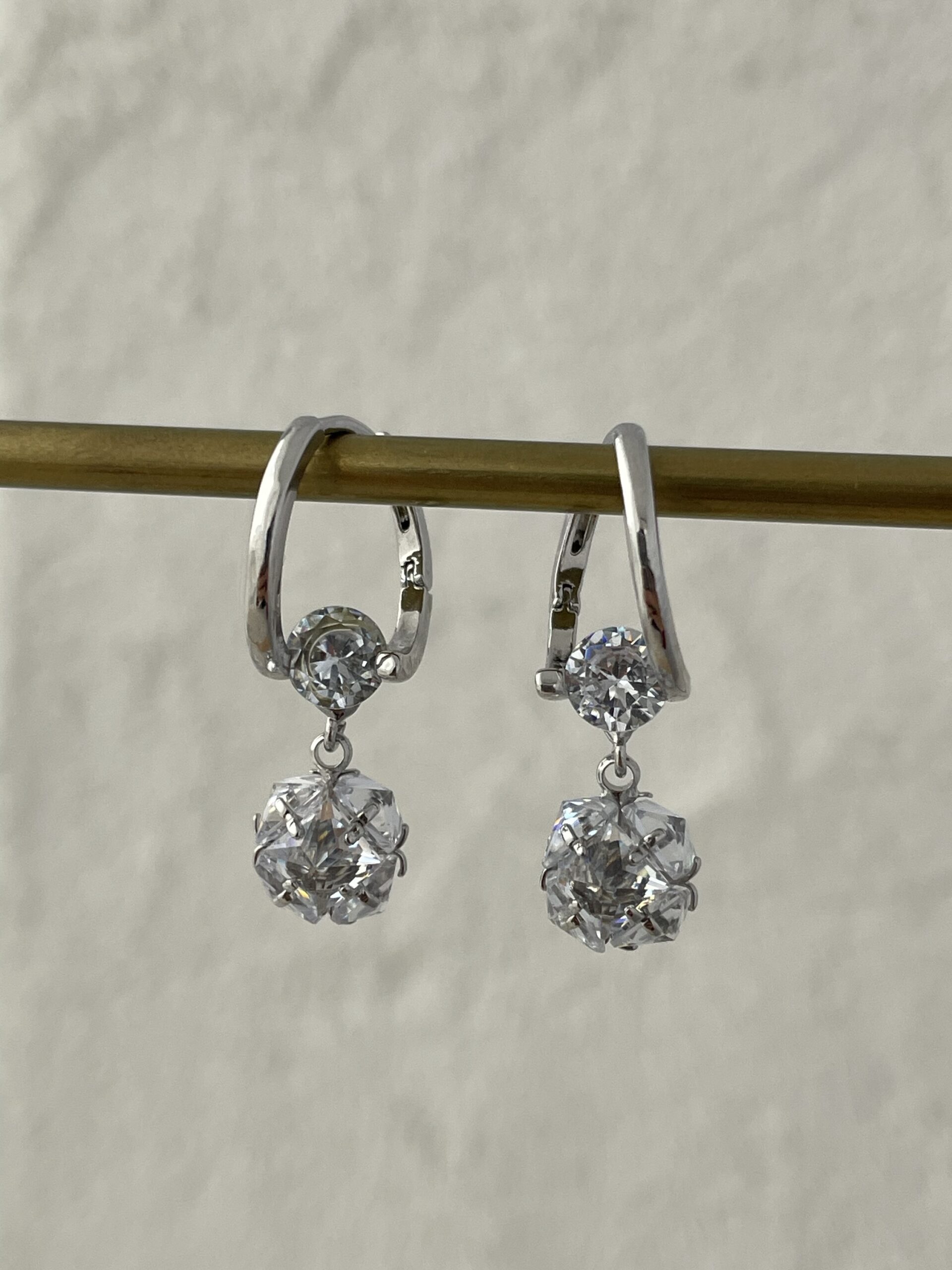 Özel Seri Zirkon Taşlı Top Tasarım Gümüş Sallantılı Küpe