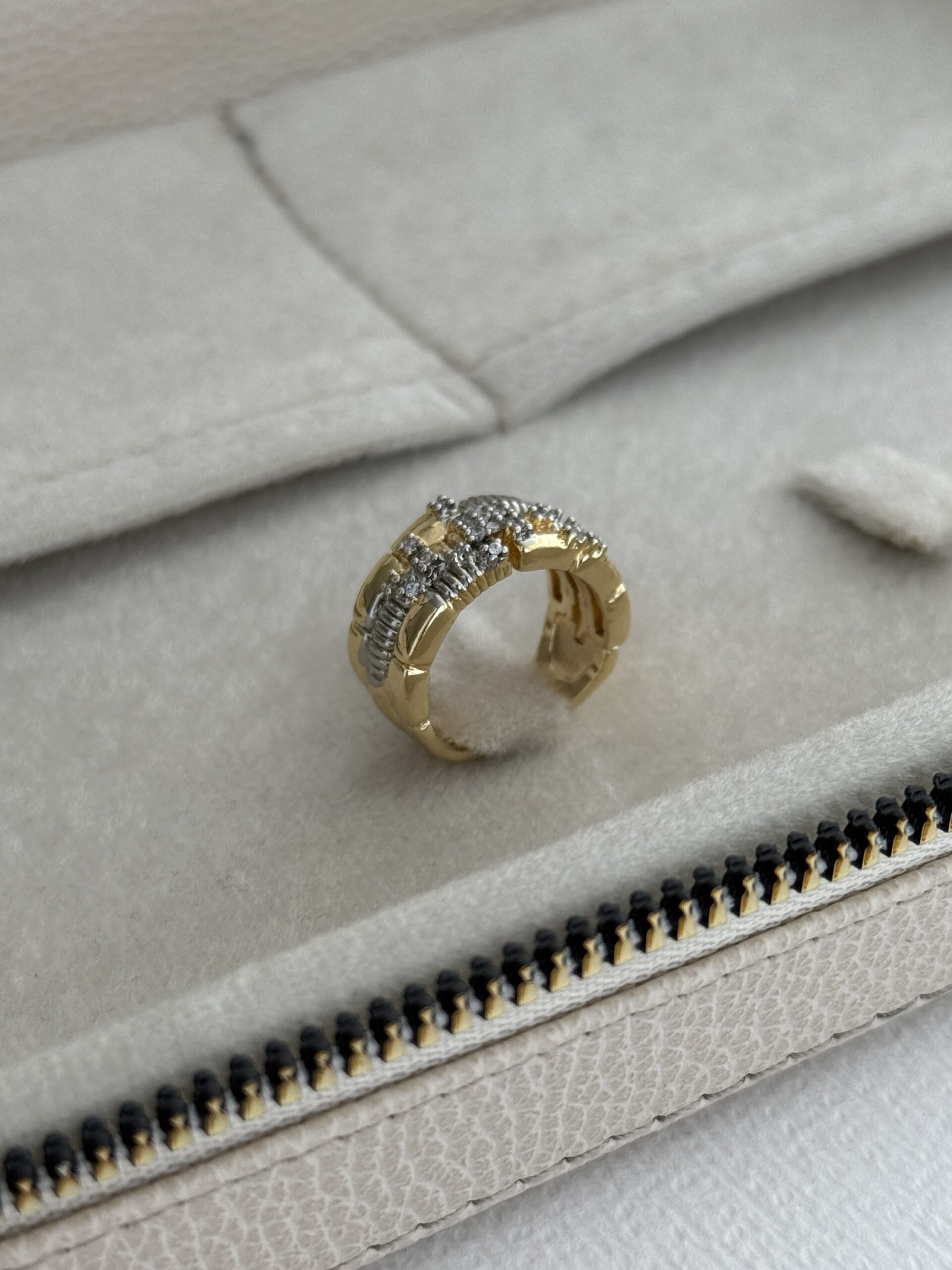 Özel Seri Zirkon Taşlı Üç Sıra Gold Ayarlanabilir Yüzük