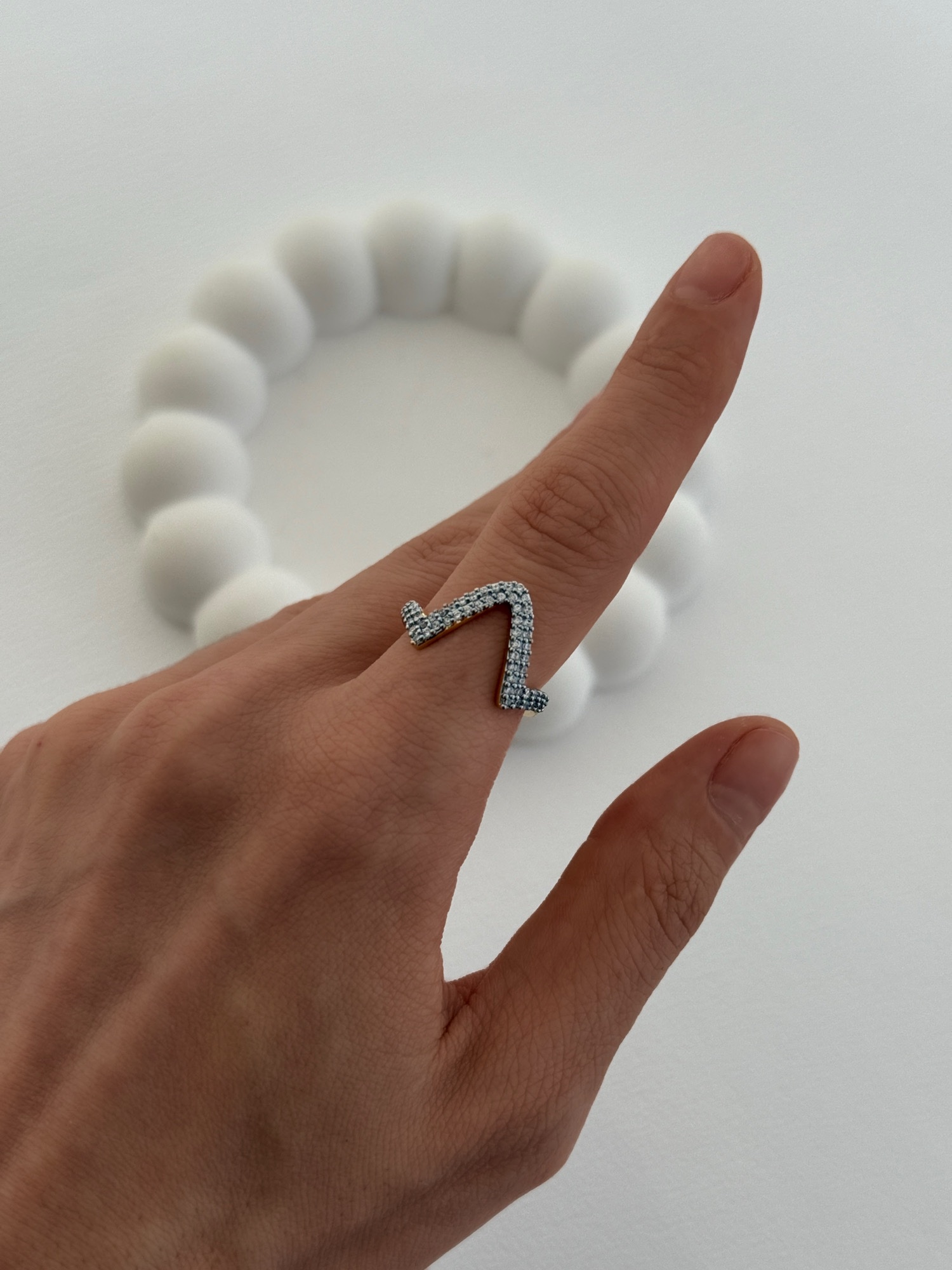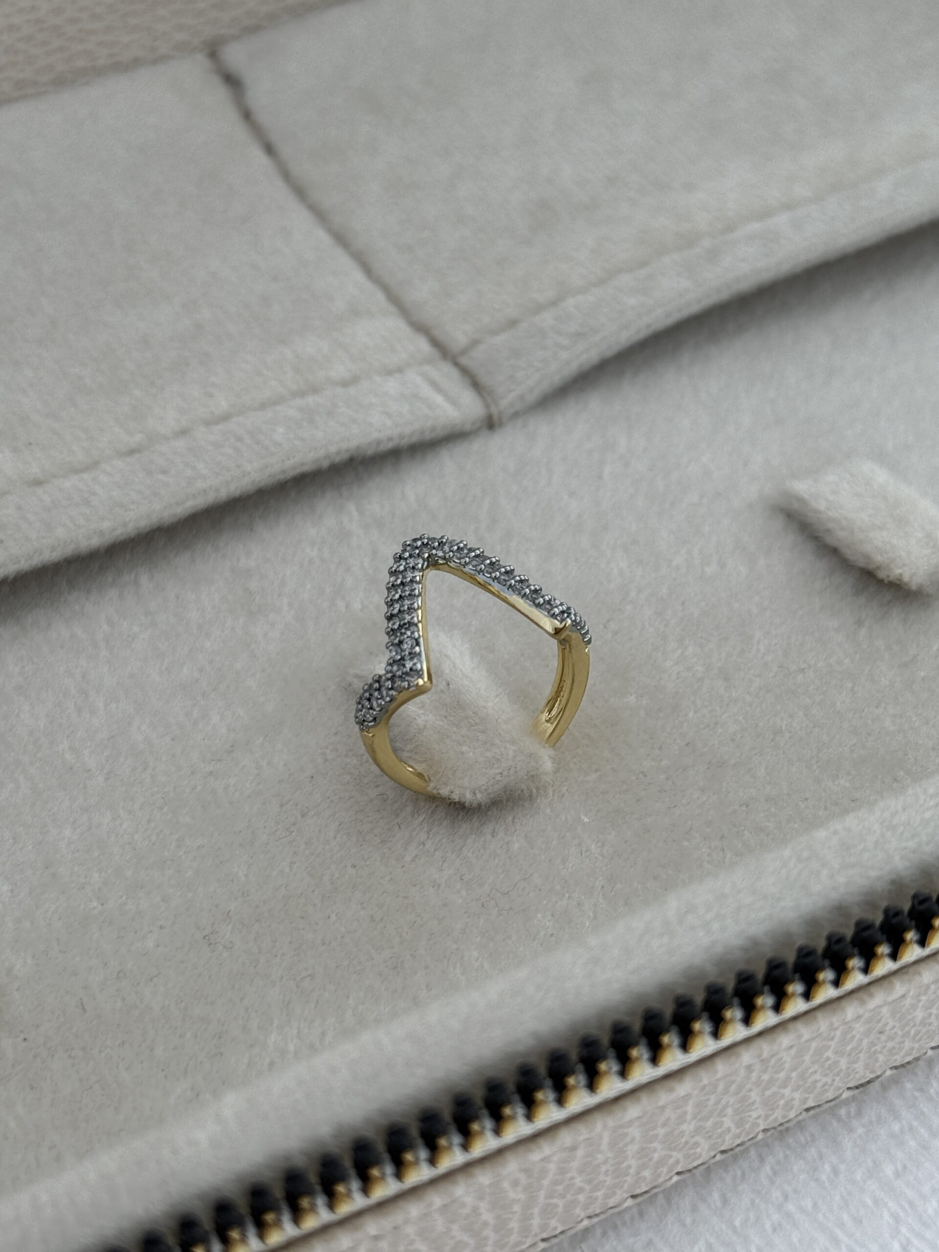 Özel Seri Zirkon Taşlı V Tasarım Gold Ayarlanabilir Yüzük