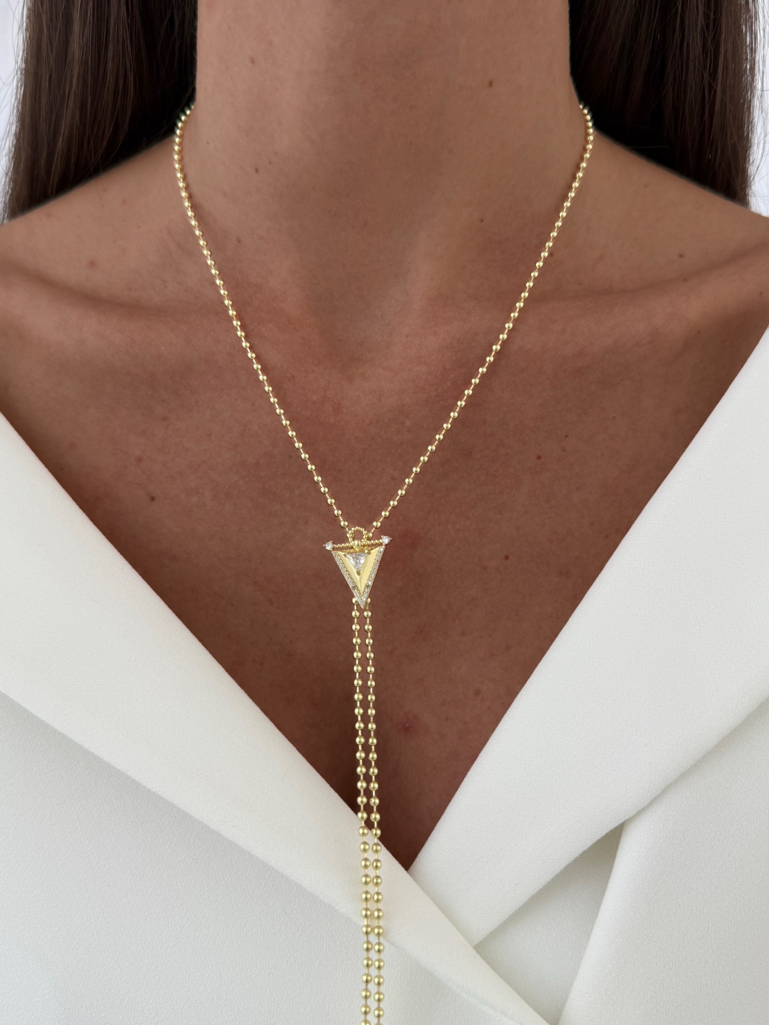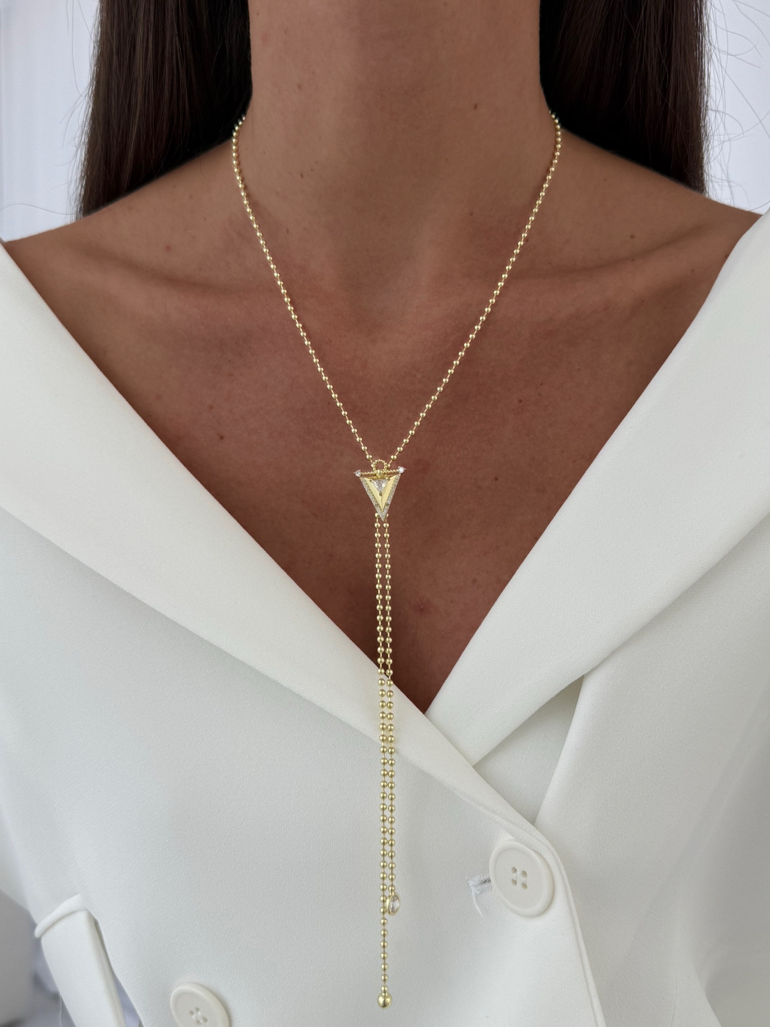 Özel Seri Zirkon Taşlı Üçgen Tasarım Gold Top Zincir Y Kolye
