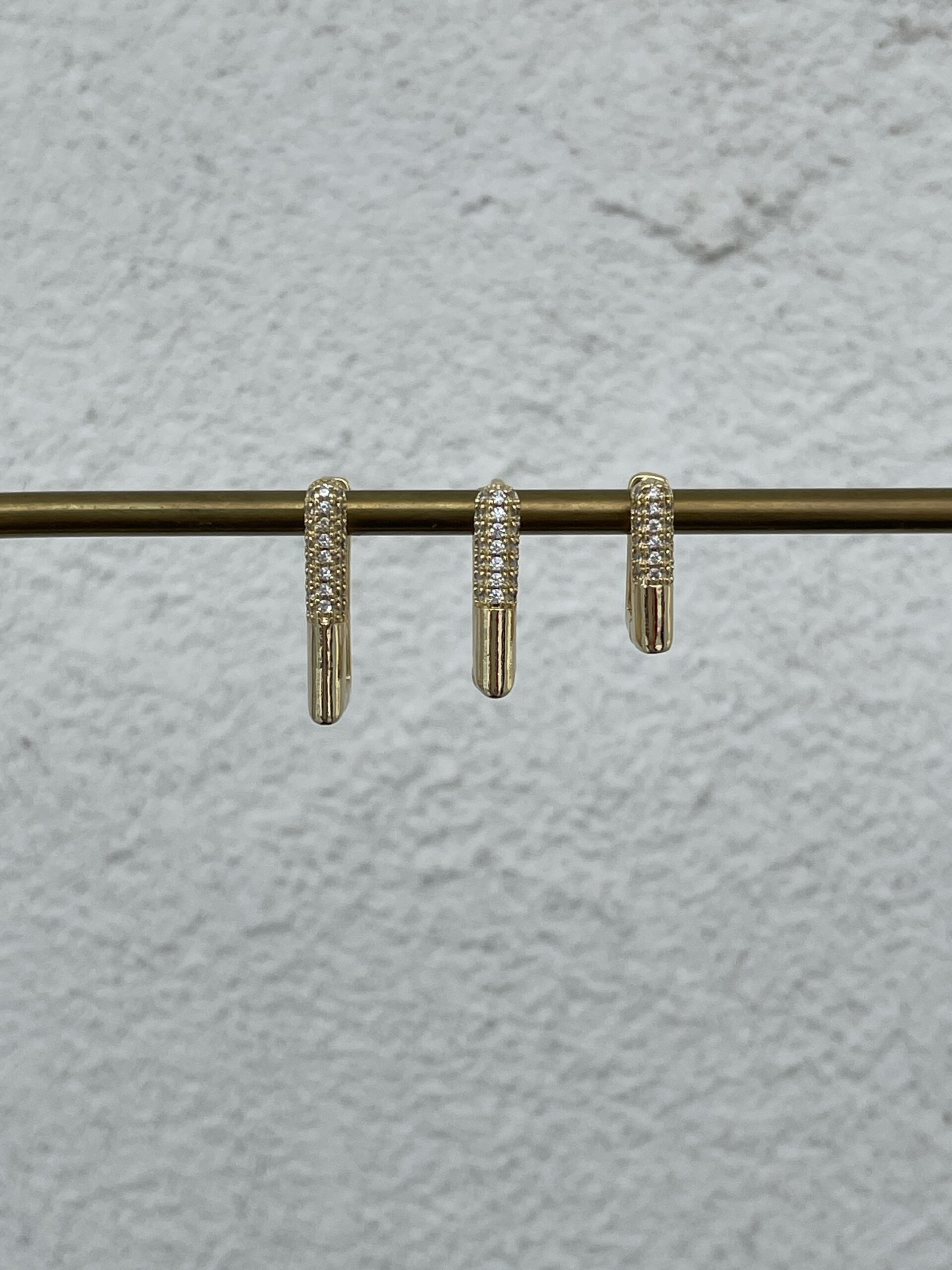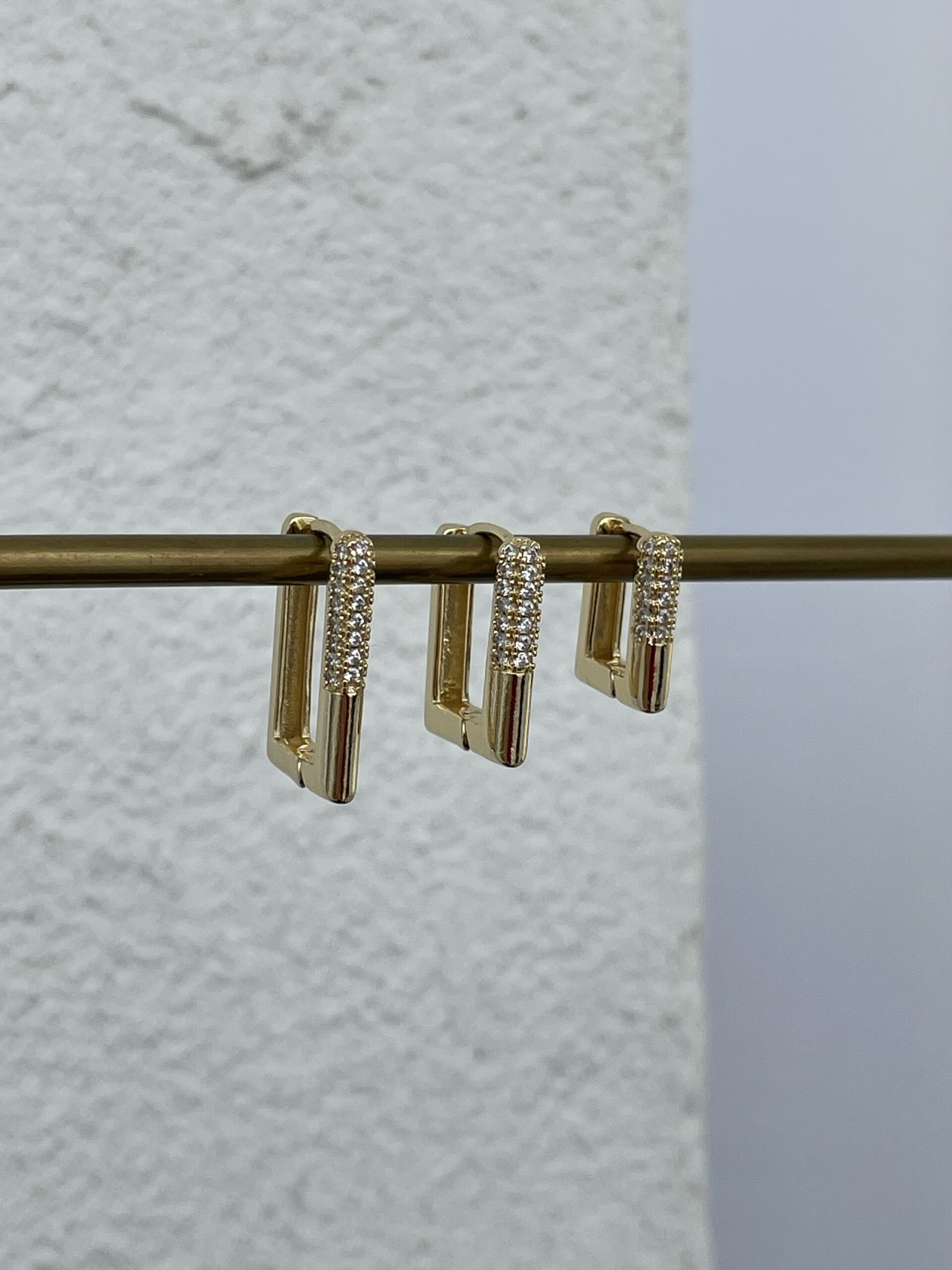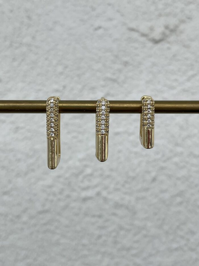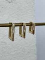 Özel Seri Zirkon Taşlı Üçlü Dikdörtgen Halka Gold Küpe Seti