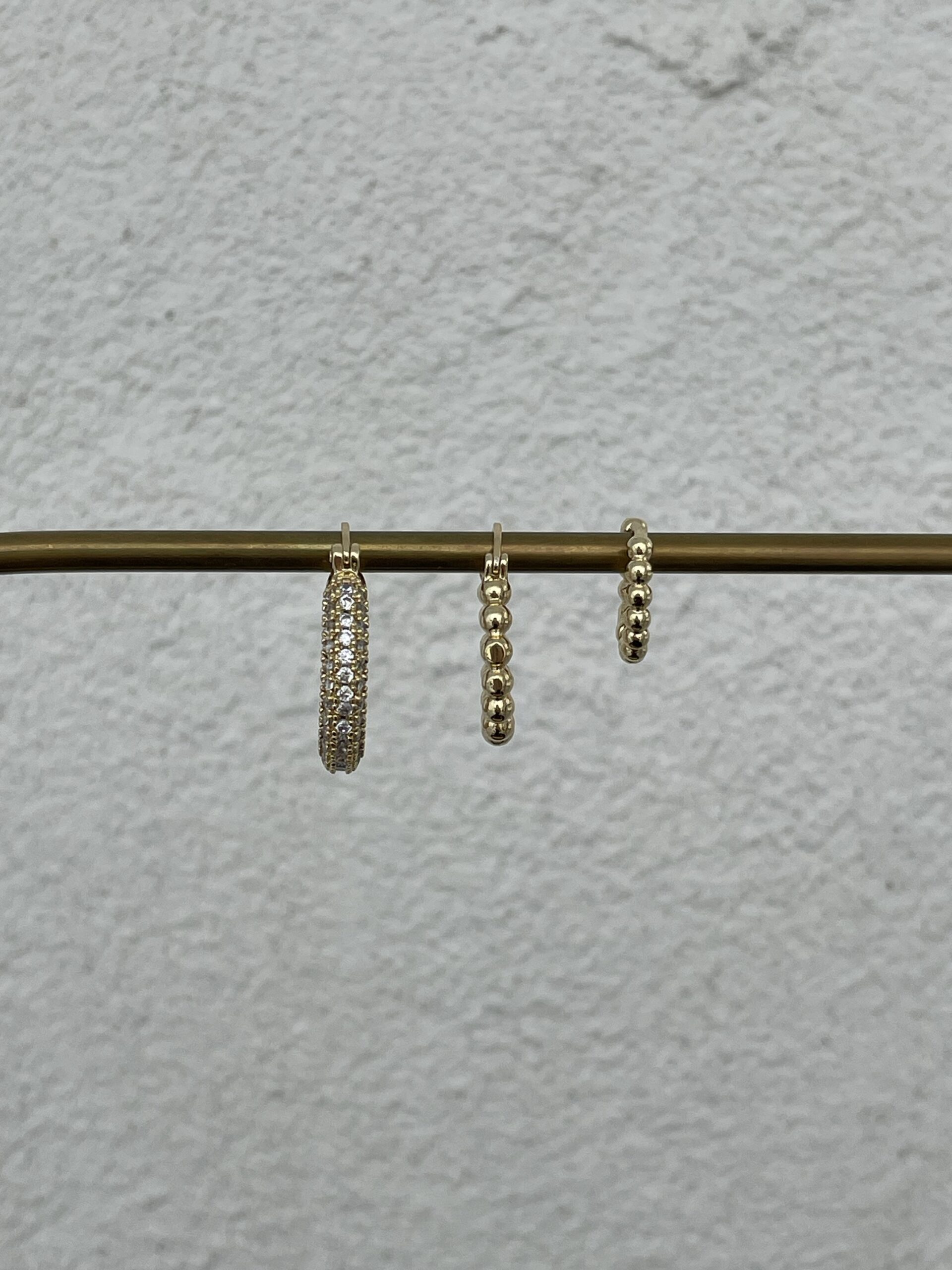 Özel Seri Zirkon Taşlı Üçlü Halka Gold Küpe Seti