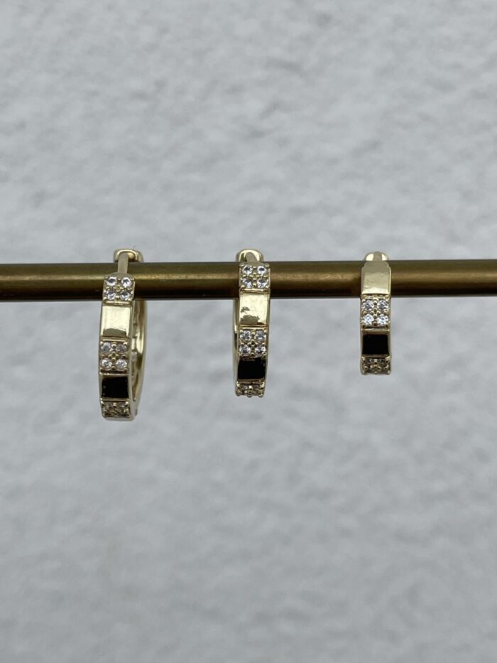 Özel Seri Zirkon Taşlı Üçlü Halka Gold Küpe Seti