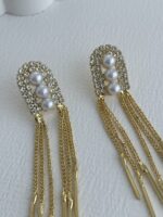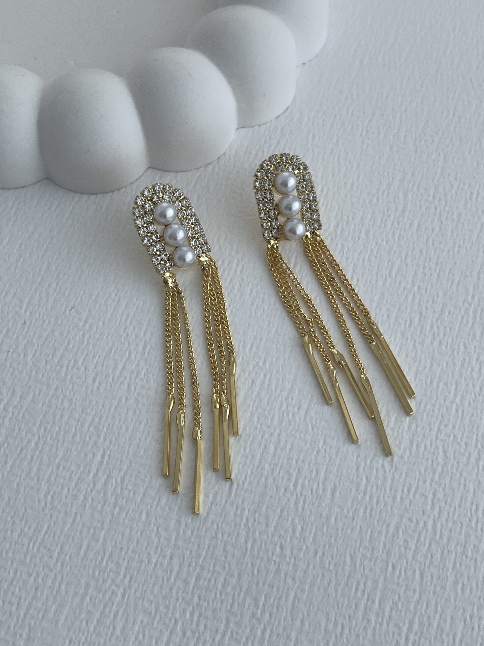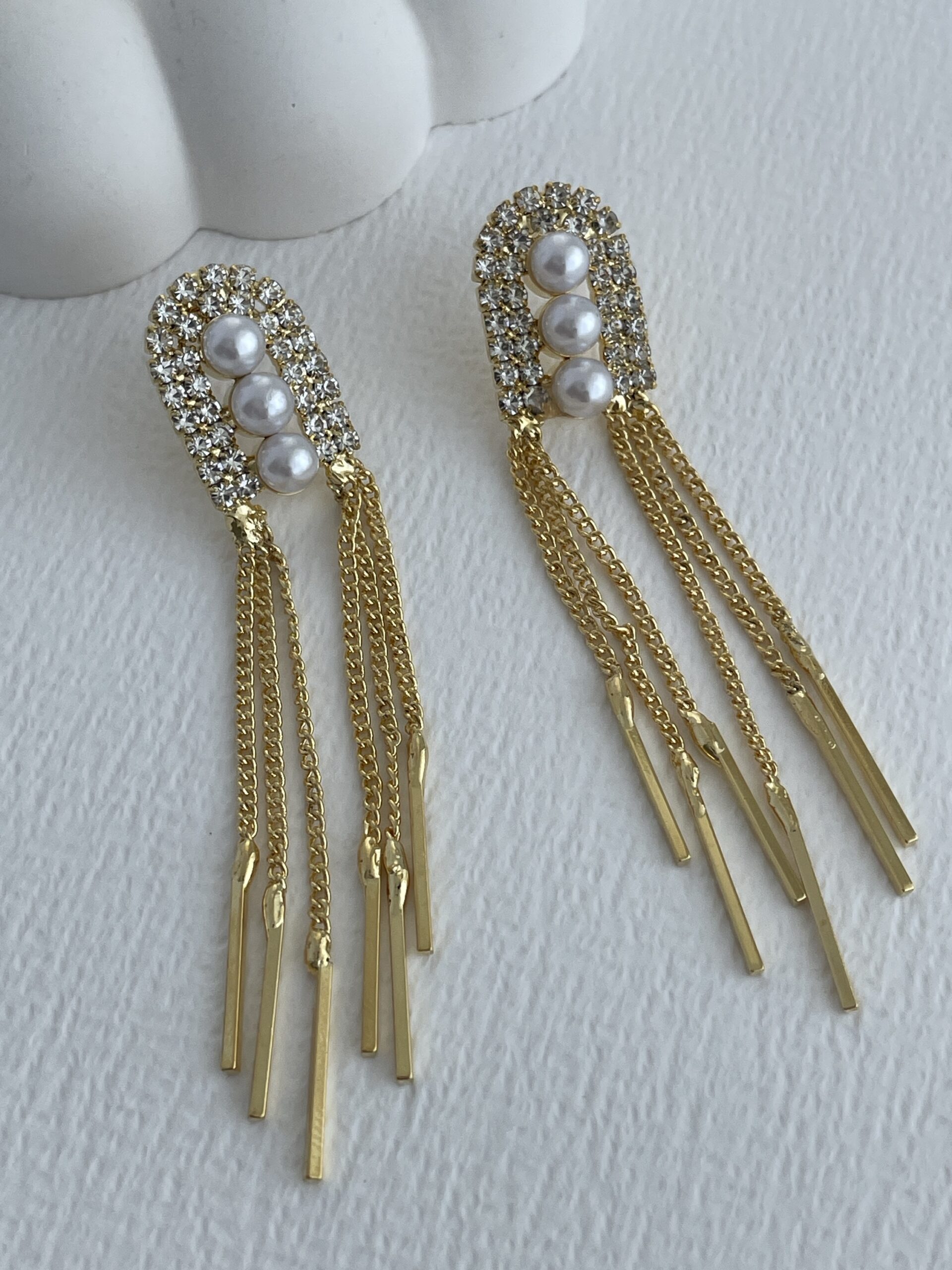 Özel Seri Zirkon Taşlı Üçlü İnci Gold Sallantılı Küpe