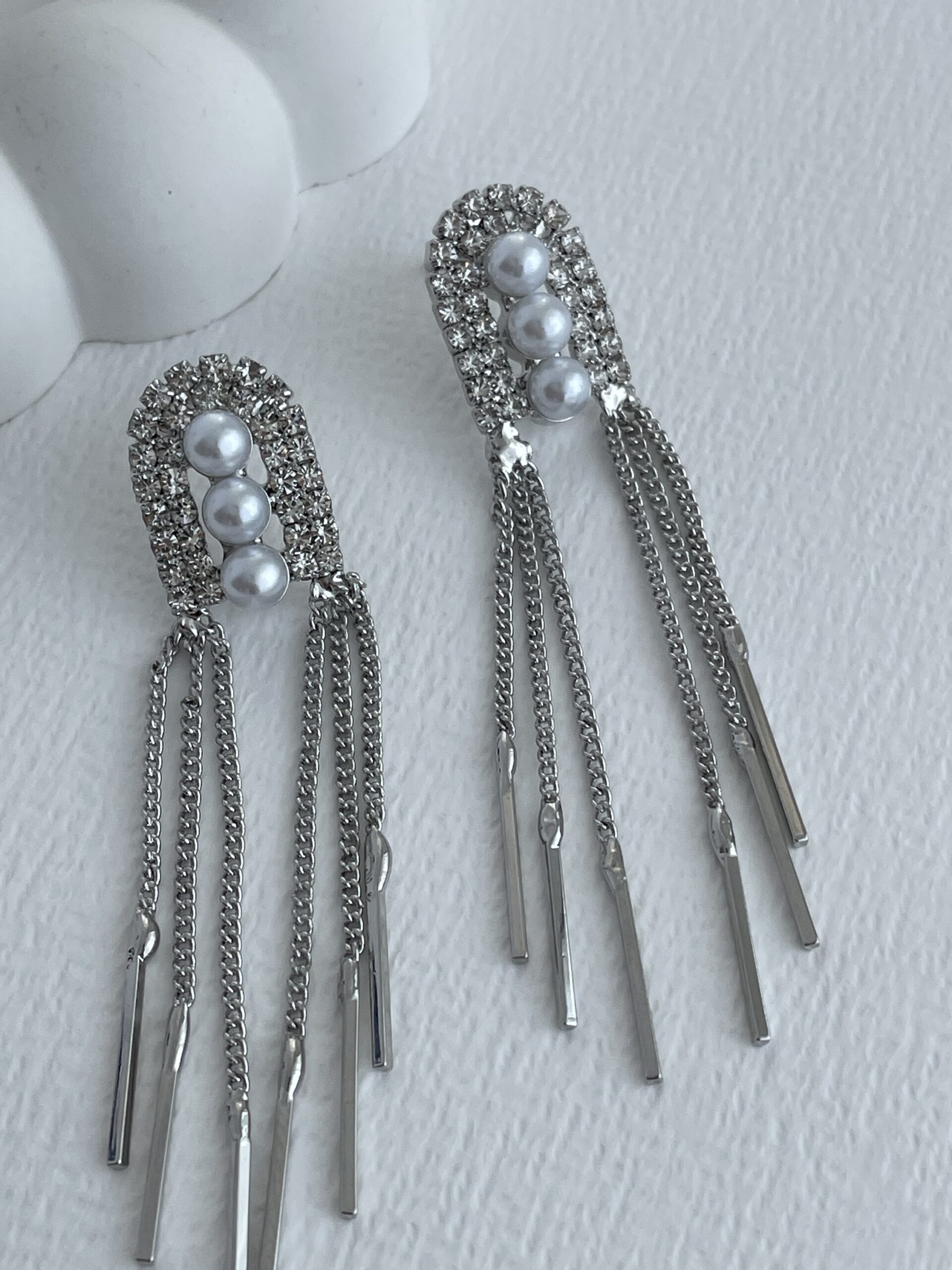 Özel Seri Zirkon Taşlı Üçlü İnci Gümüş Sallantılı Küpe