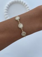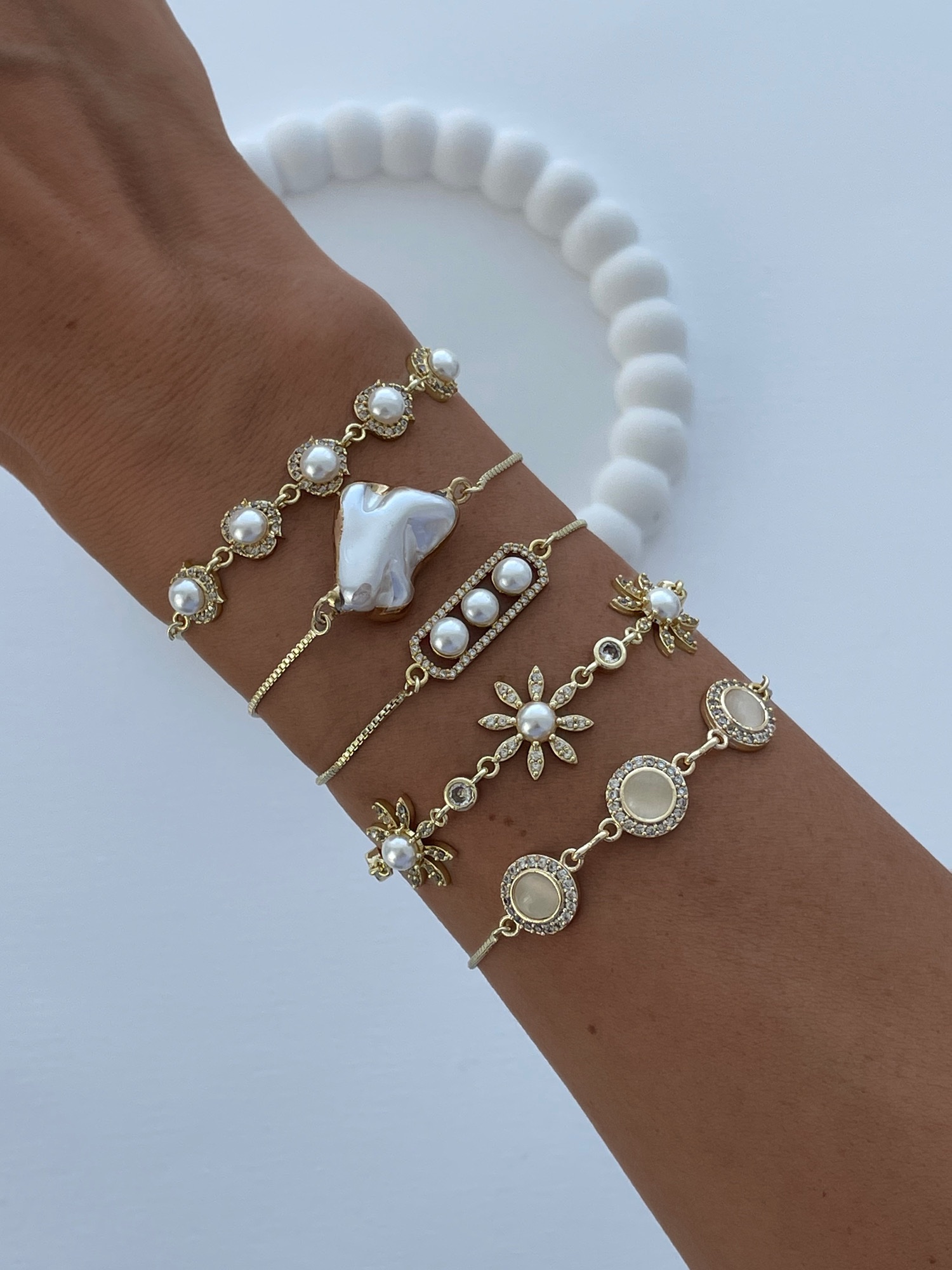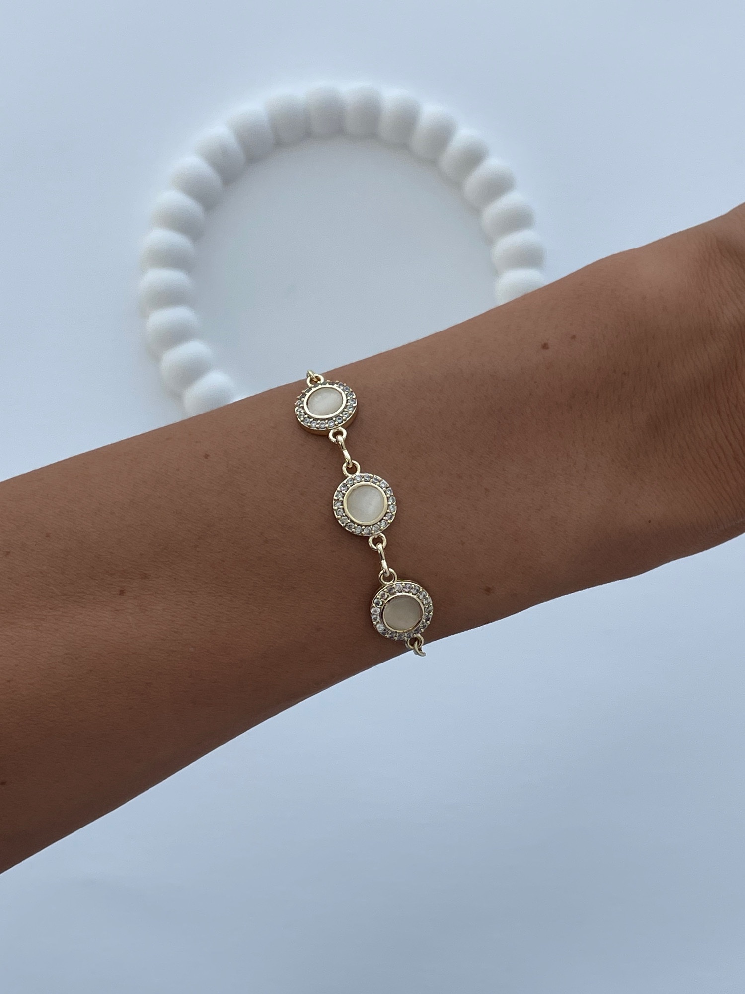 Özel Seri Zirkon Taşlı Üçlü Krem Sedef Gold Asansörlü Bileklik