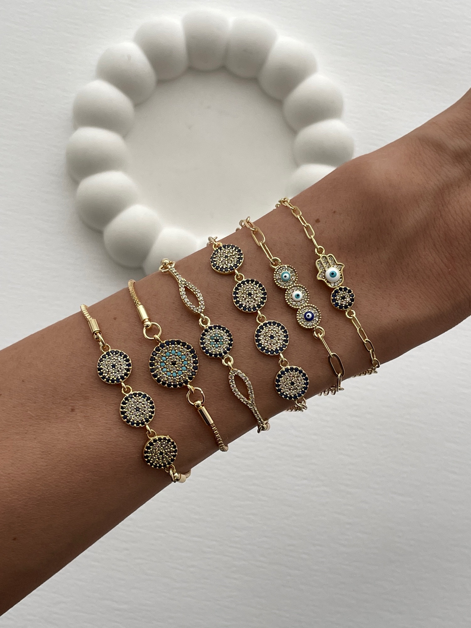 “Özel Seri Zirkon Taşlı Üçlü Nazar Boncuk Gold Asansörlü Bileklik” için yorum yapan ilk kişi siz olun